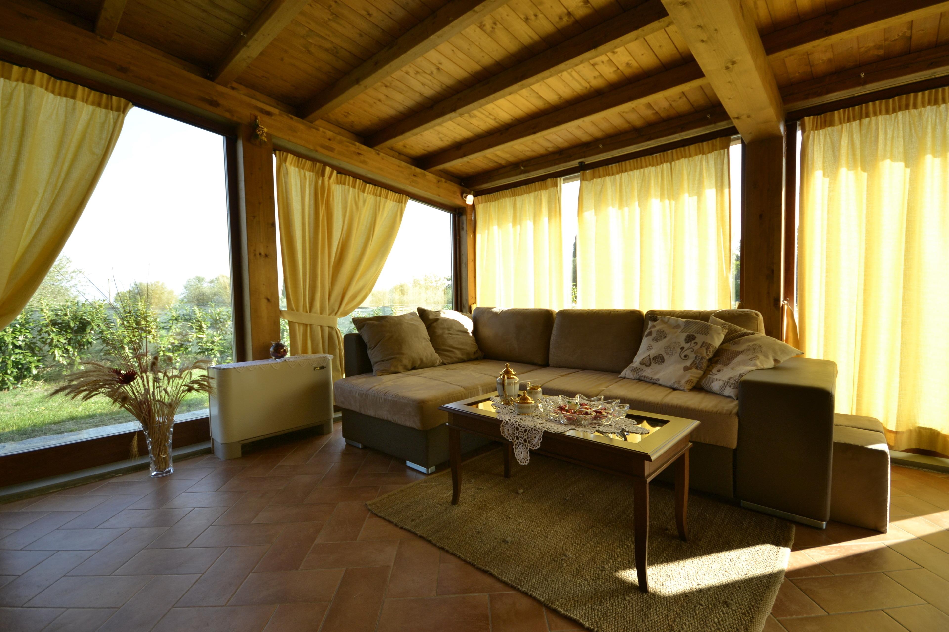 Vom Haupteingang aus betreten Sie den schönen und geräumigen Wohnbereich, der sich durch Glasfenster auszeichnet, von denen aus Sie einen herrlichen Blick auf die umliegende Landschaft genießen können.