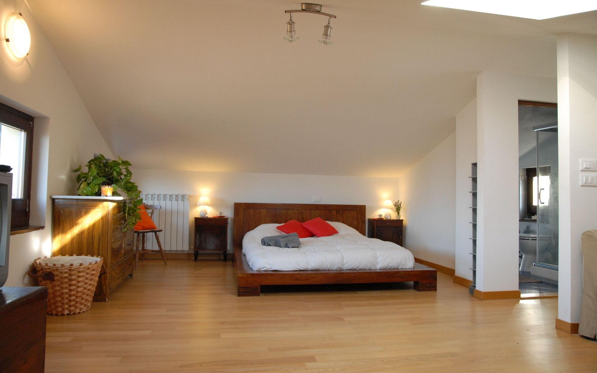 Über eine Innentreppe erreicht man den letzten Raum, einen großen Dachboden mit einem Doppelbett und einem Doppelschlafsofa (auf Anfrage und gegen Aufpreis). Das Badezimmer ist en-suite und hat eine Dusche.