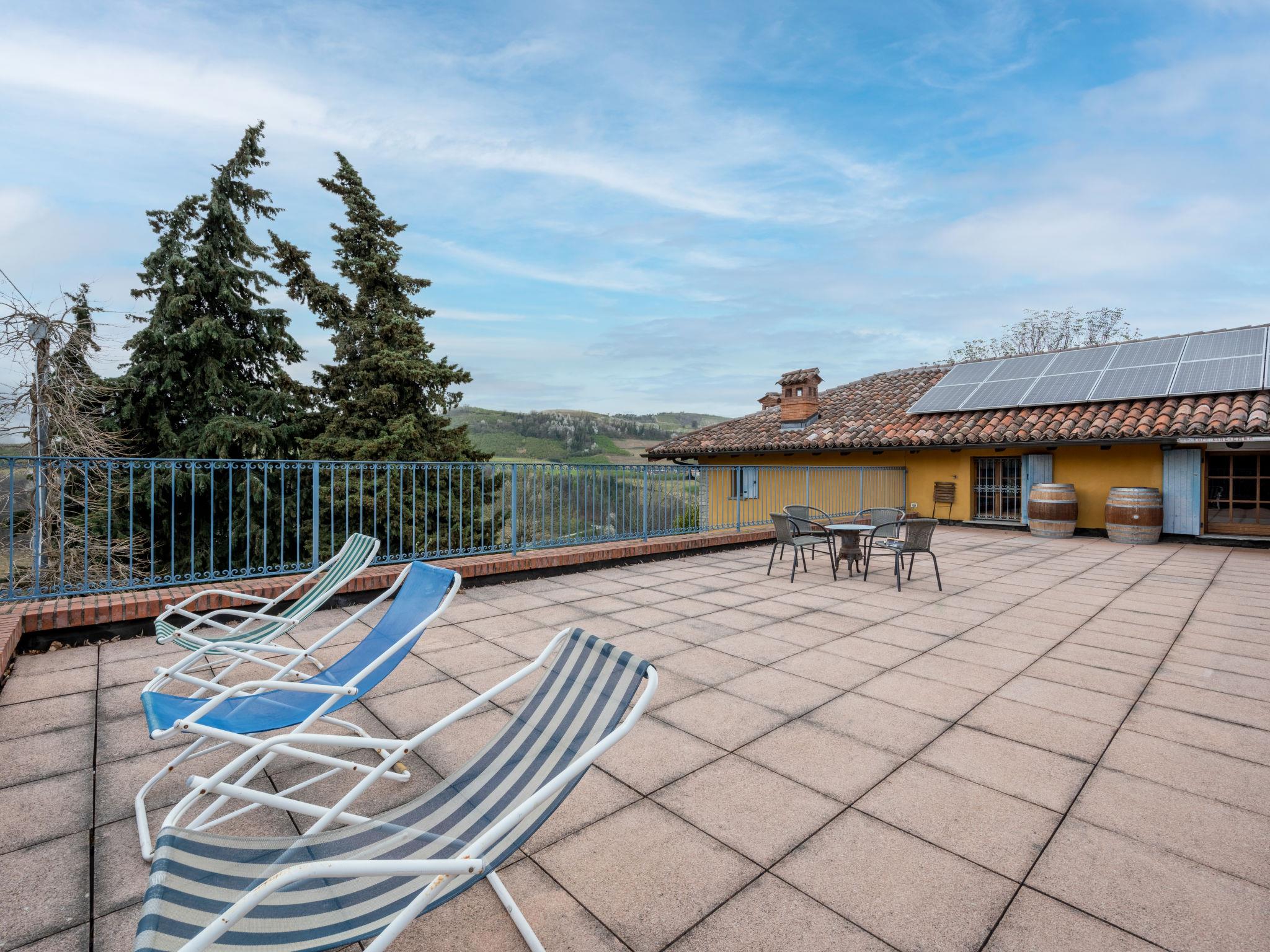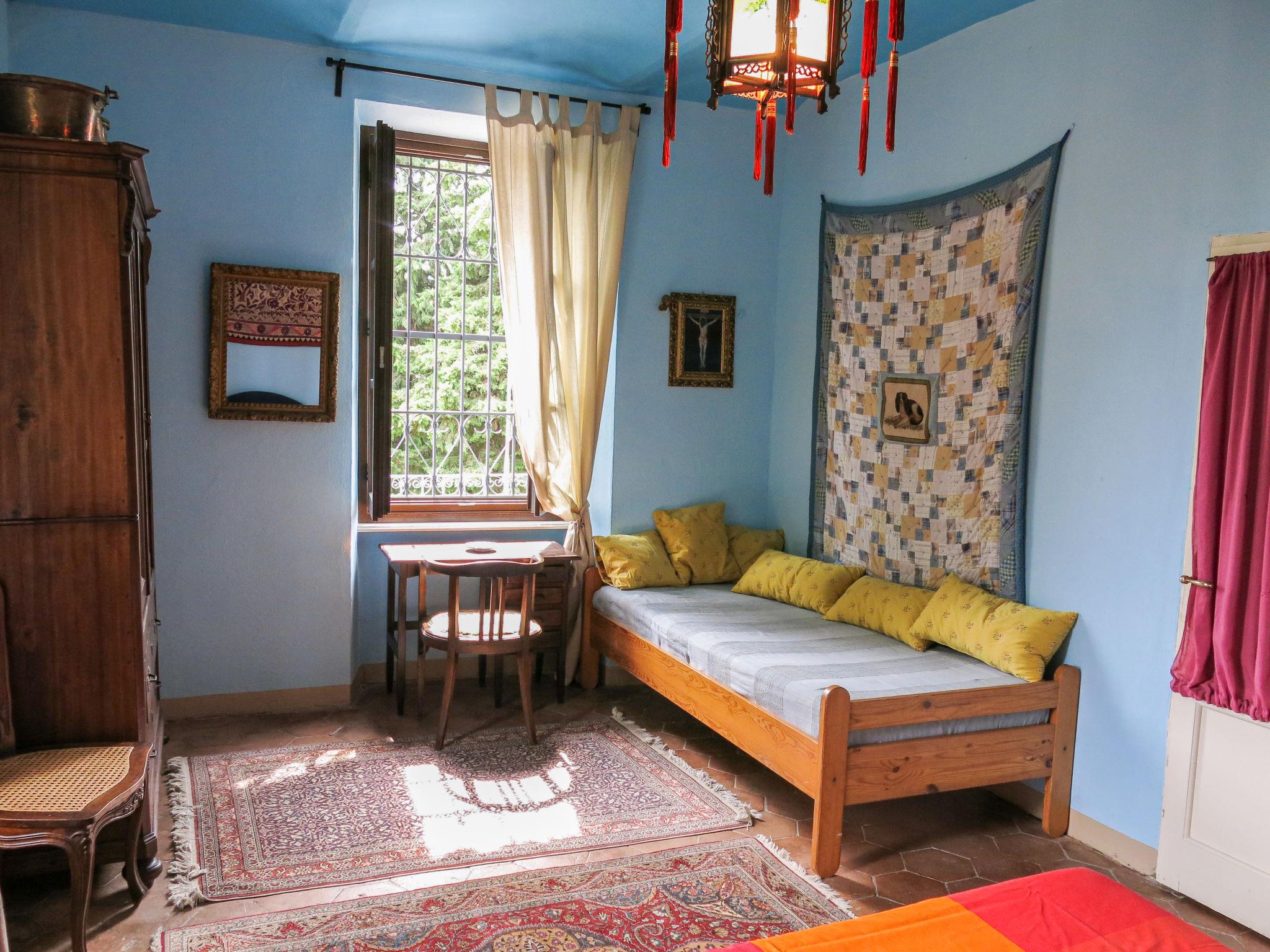 On a vinyard cottage "La Rovere", 450 m a.s.l., surrounded by trees, meadows and vineyards. 2 km from the centre of Cossano Belbo, 4 km from the centre of Stefano Belbo, 20 km from the centre of Alba, in an elevated position on a slope, 80 km from the sea. For shared use: property 5'000 m2 (fenced), terraced garden with trees, meadow. Private: swimming pool (8 x 4 m, depth 70 - 120 cm, seasonal availability: 01.May. - 15.Oct.). In the house: washing machine (for shared use). Narrow motor access (mountain road). Parking at the house at 50 m on the premises. Shop 2 km, supermarket 4 km, bus stop 5 km, railway station "Alba" 20 km. The owner does not accept any youth groups. Please note: Owner lives in separate semi-detached house. The owner has a dog.
