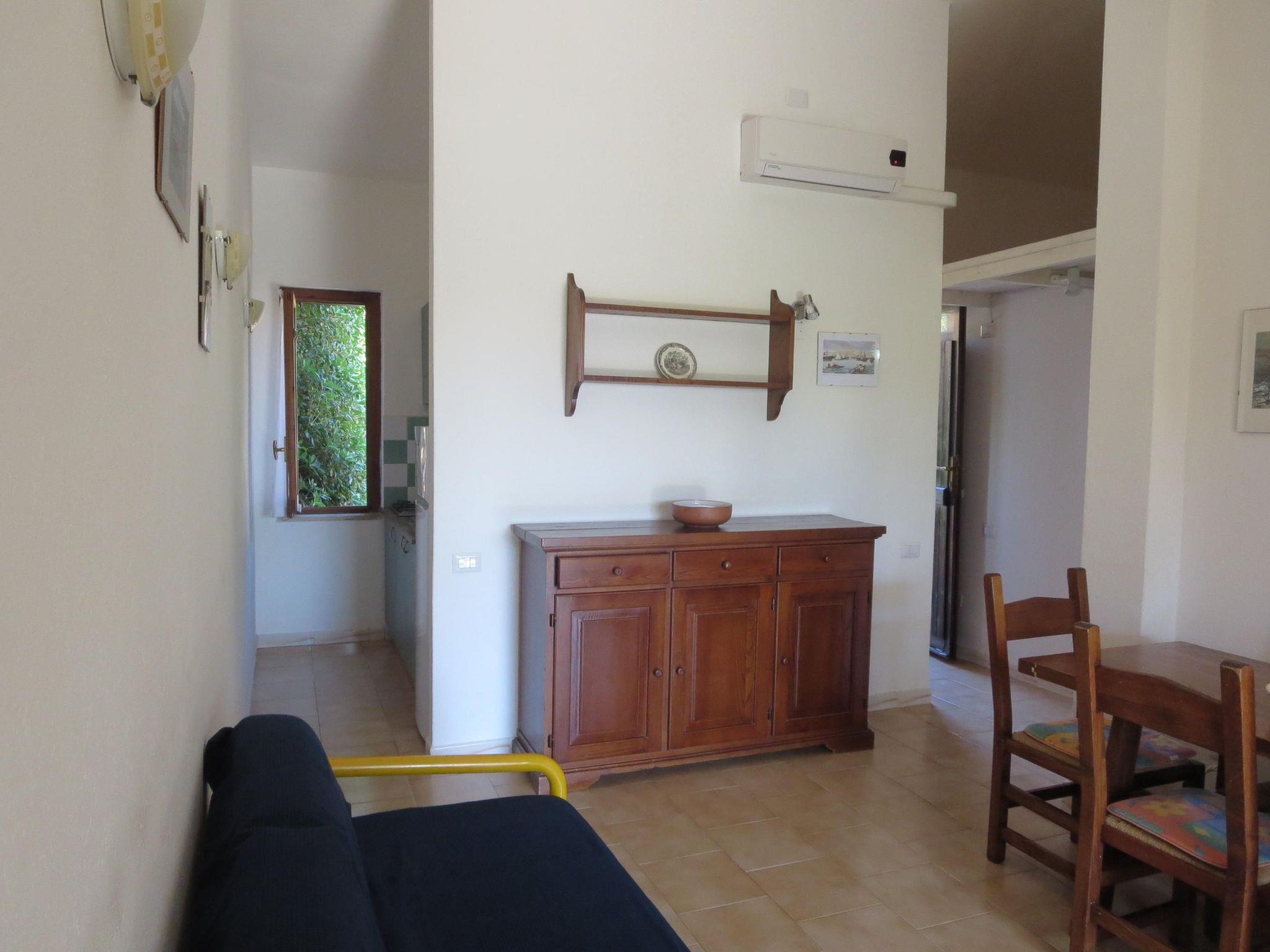 Inside, the villa is equipped to make your stay as comfortable as possible. You will find one bedroom with a double bed and one bedroom with two single beds, which can be joined to form another double bed, ideal for providing the rest you need after a day in the sun. The living room has a comfortable sofa bed that can accommodate two more guests, thus completing the villa's capacity to 6 guests. The equipment includes partial air conditioning, a practical gas cooker, as well as two bathrooms with showers to ensure maximum comfort. In addition, there is a washing machine for your exclusive use, useful for longer stays or simply to refresh your beach clothes.
