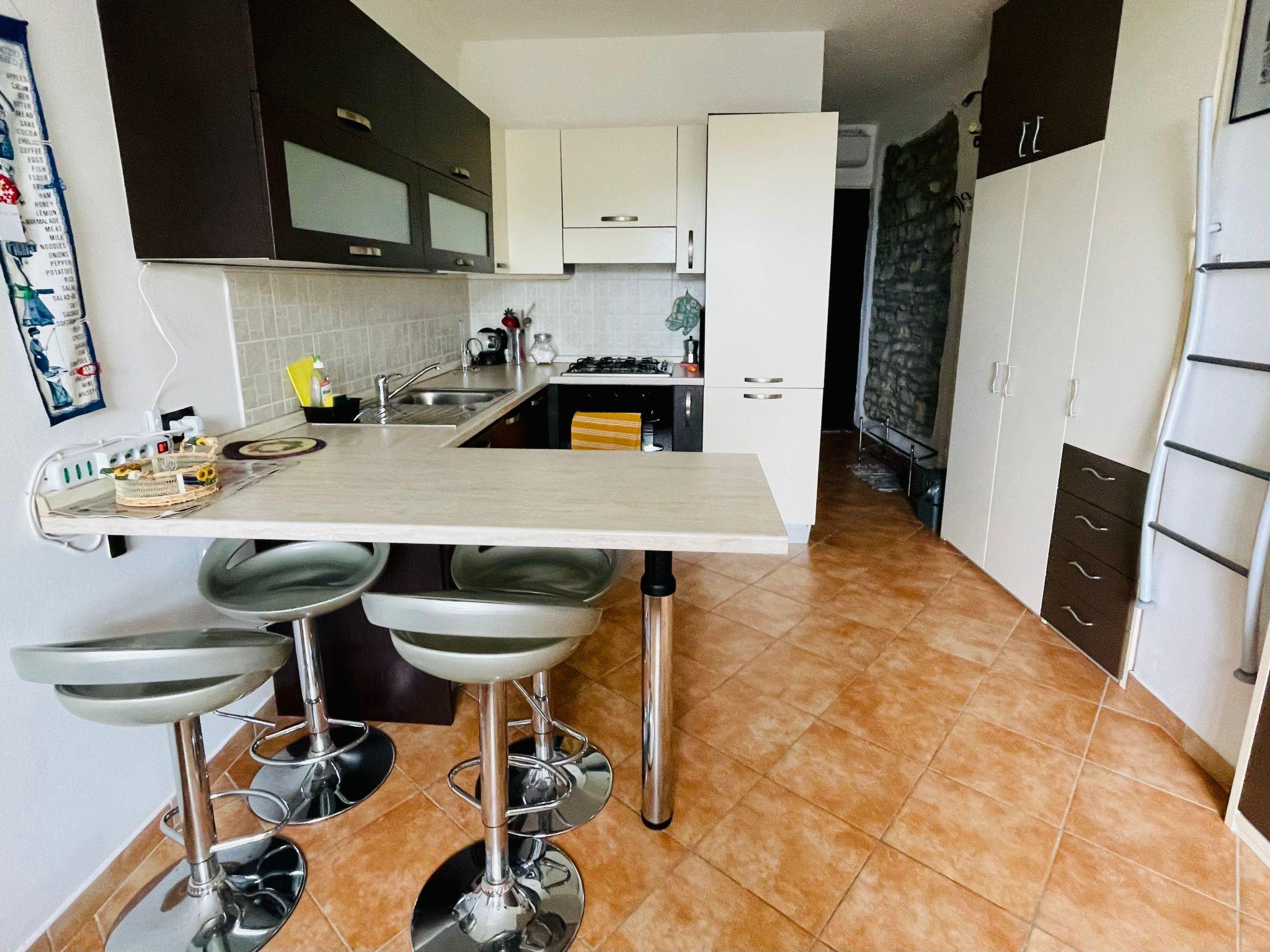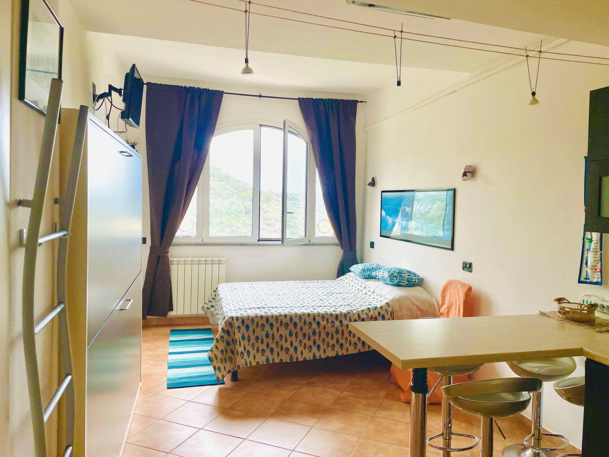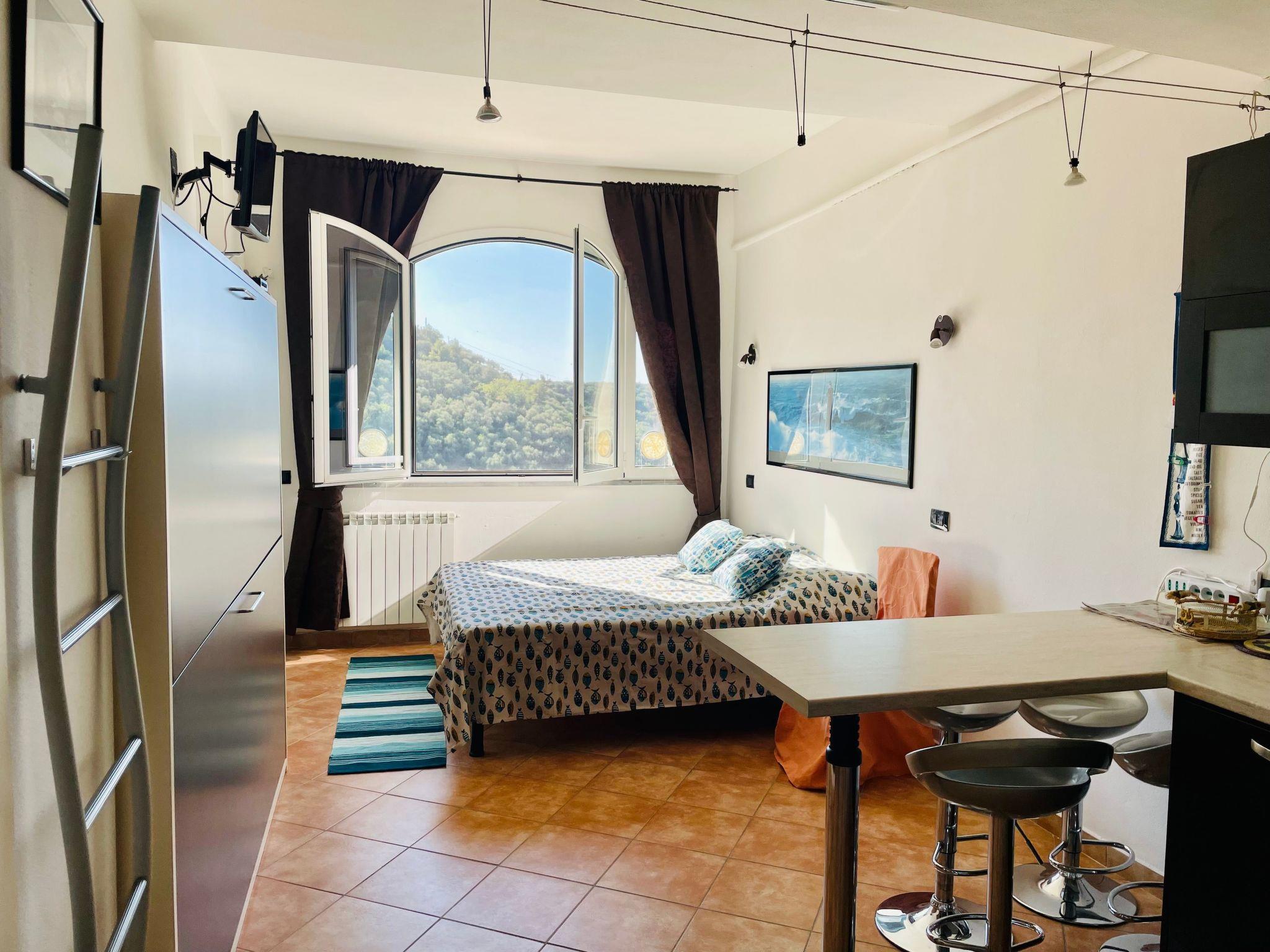 The enchanting studio is fully furnished. From the living room you have a marvellous view of the valley, Diano Marina and the Mediterranean Sea.
