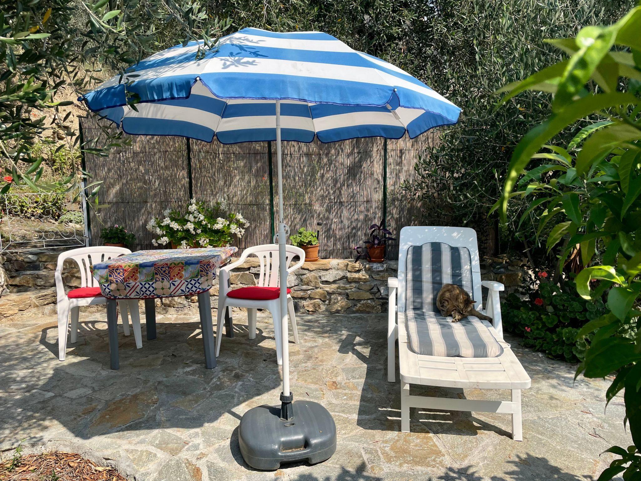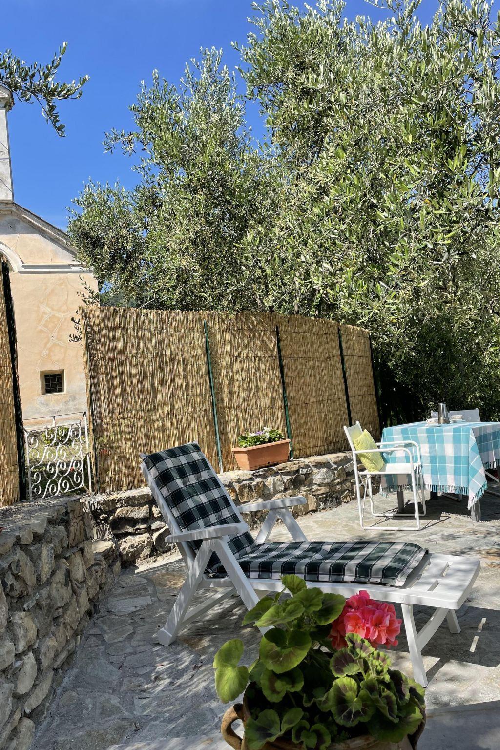 The garden invites you to relax in a quiet atmosphere. You can end the day with a glass of wine. You can also enjoy the sun in the enchanting garden with shady olive trees and let your gaze wander to the sea or the enchanting little village church.