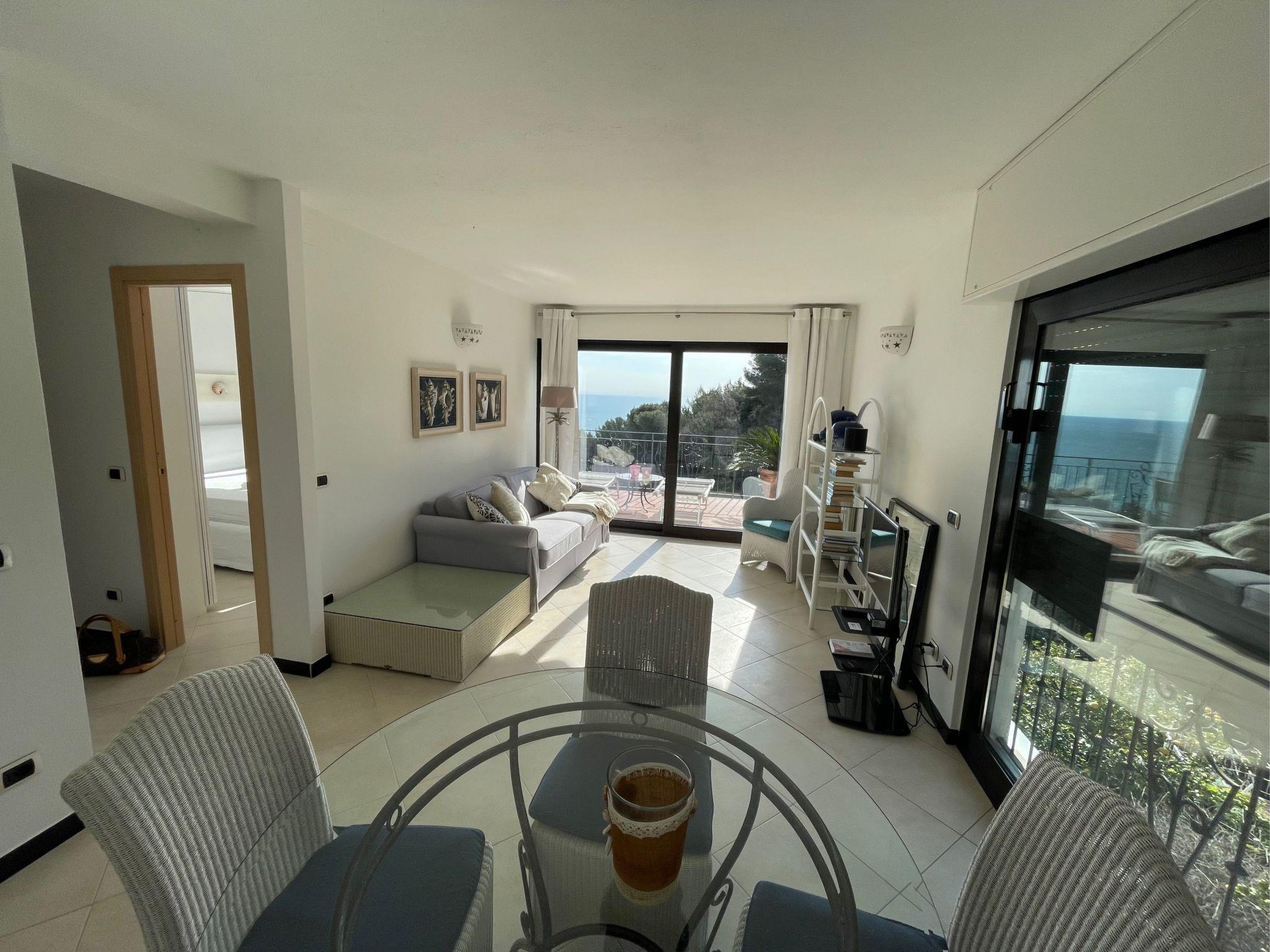 The charming holiday flat is located on the second and top floor of a private villa, situated on the Capo Berta hill.