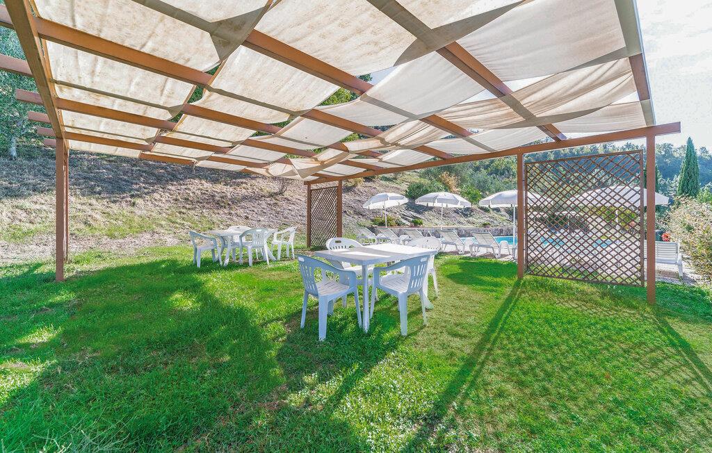 Uteområdet er et sant paradis. Slapp av ved det store fellesbassenget med solsenger og parasoller, eller nyt en piknik på den grønne plenen. For de yngste er det en huske og en sklie samt god plass til å leke. Benytt terrassen til uteservering og beundre den fantastiske utsikten over landskapet.