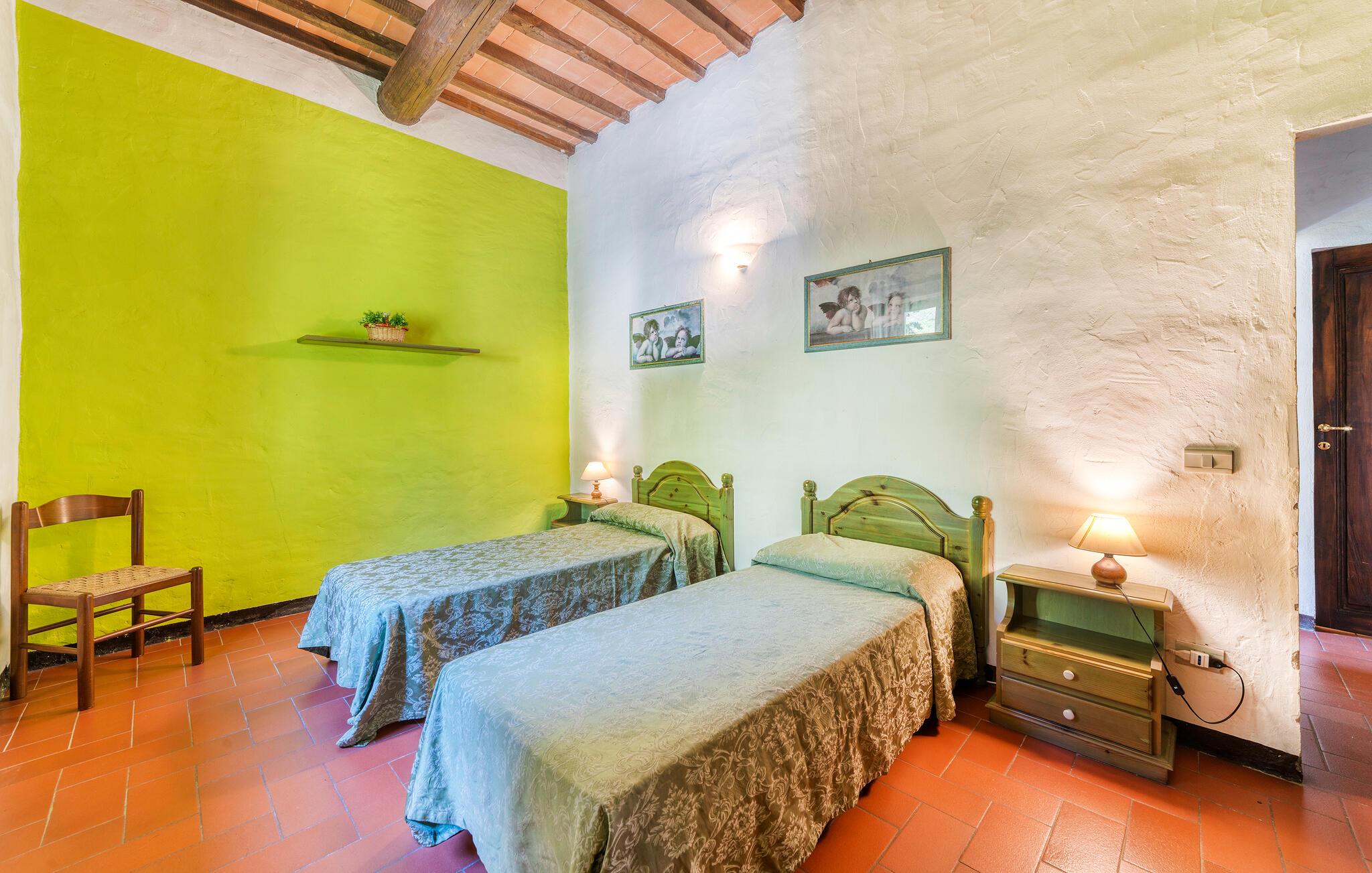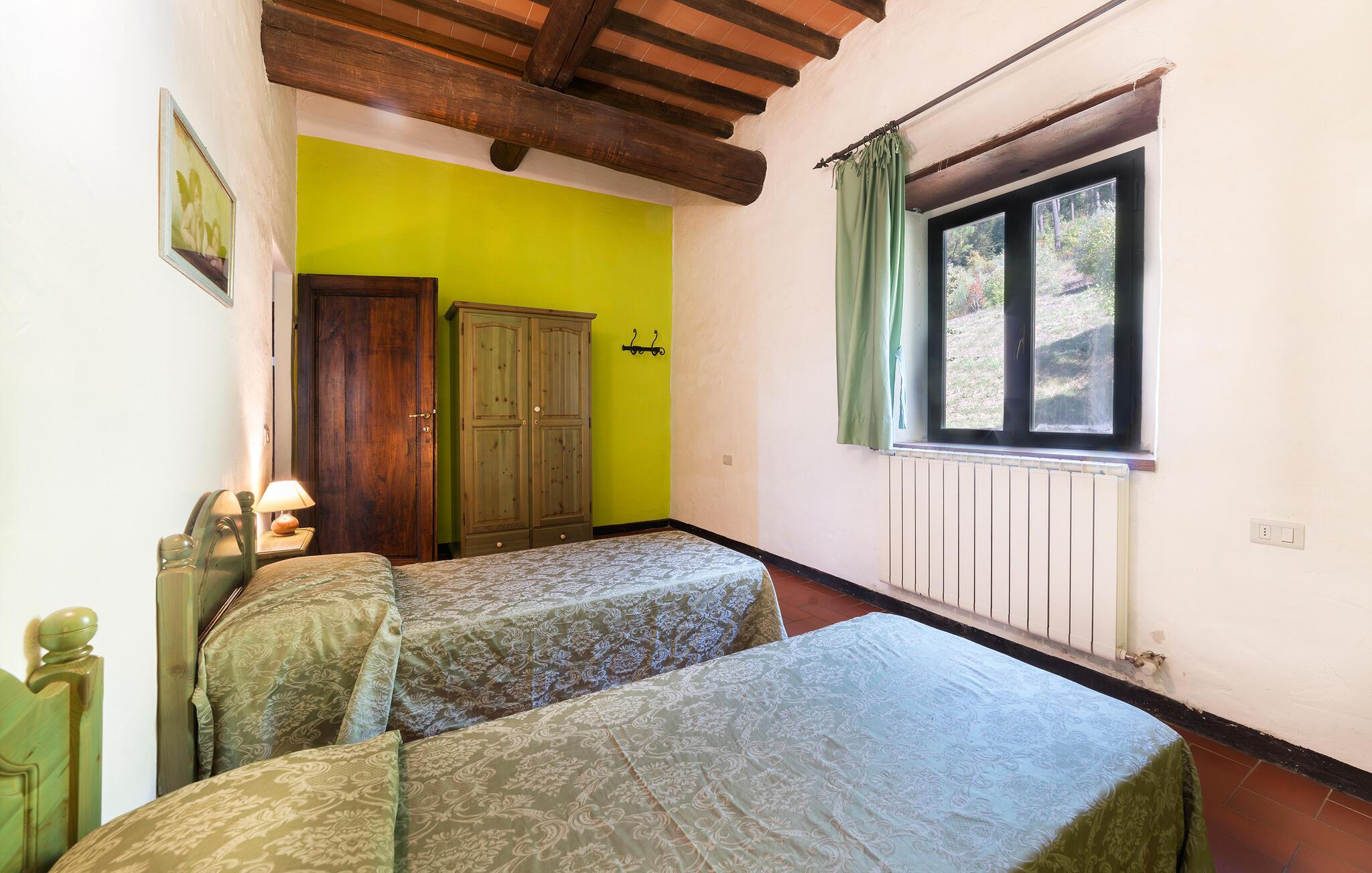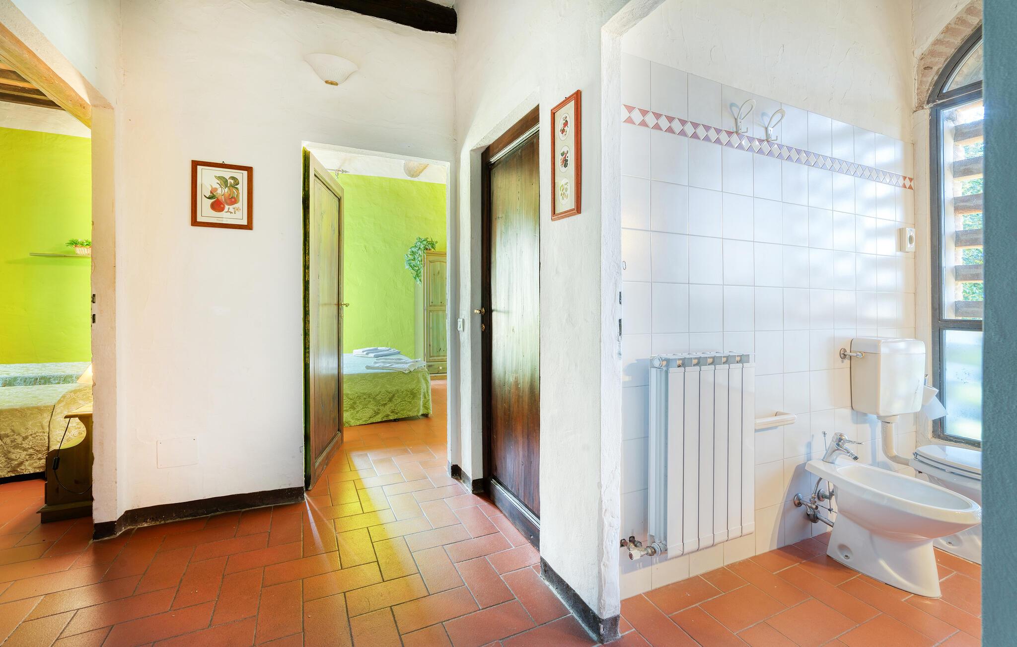 Dette sjarmerende og fargerike feriehuset i Dicomano, omgitt av bølgende åser og frodige grøntområder, gir deg muligheten til å komme deg bort fra alt. Nyt komforten og roen i dette autentiske landstedet, samtidig som du kan dra nytte av moderne bekvemmeligheter. Feriehuset er kjærlig innredet og innbyr til å bli værende. Den romslige stuen med tradisjonelle trebjelker og terrakottagulv skaper en varm atmosfære. Bruk den åpne peisen til å tilbringe koselige kvelder, eller lag deilige retter med regionale ingredienser på det åpne kjøkkenet. Spisekjøkkenet har god plass til felles måltider, der du kan skape uforglemmelige øyeblikk med familie eller venner.