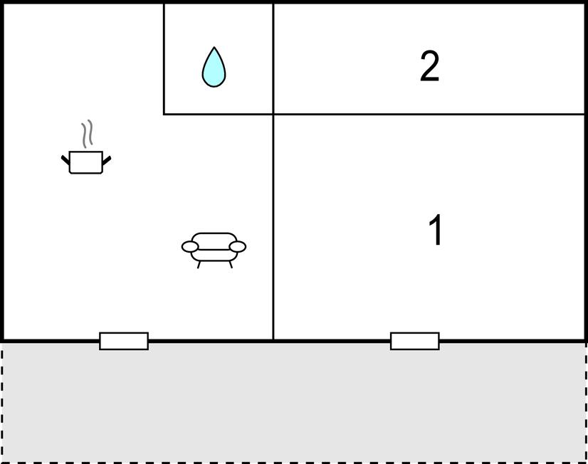 Baderom (nr. 1) - WC: Varmt og kaldt vann. Dusj