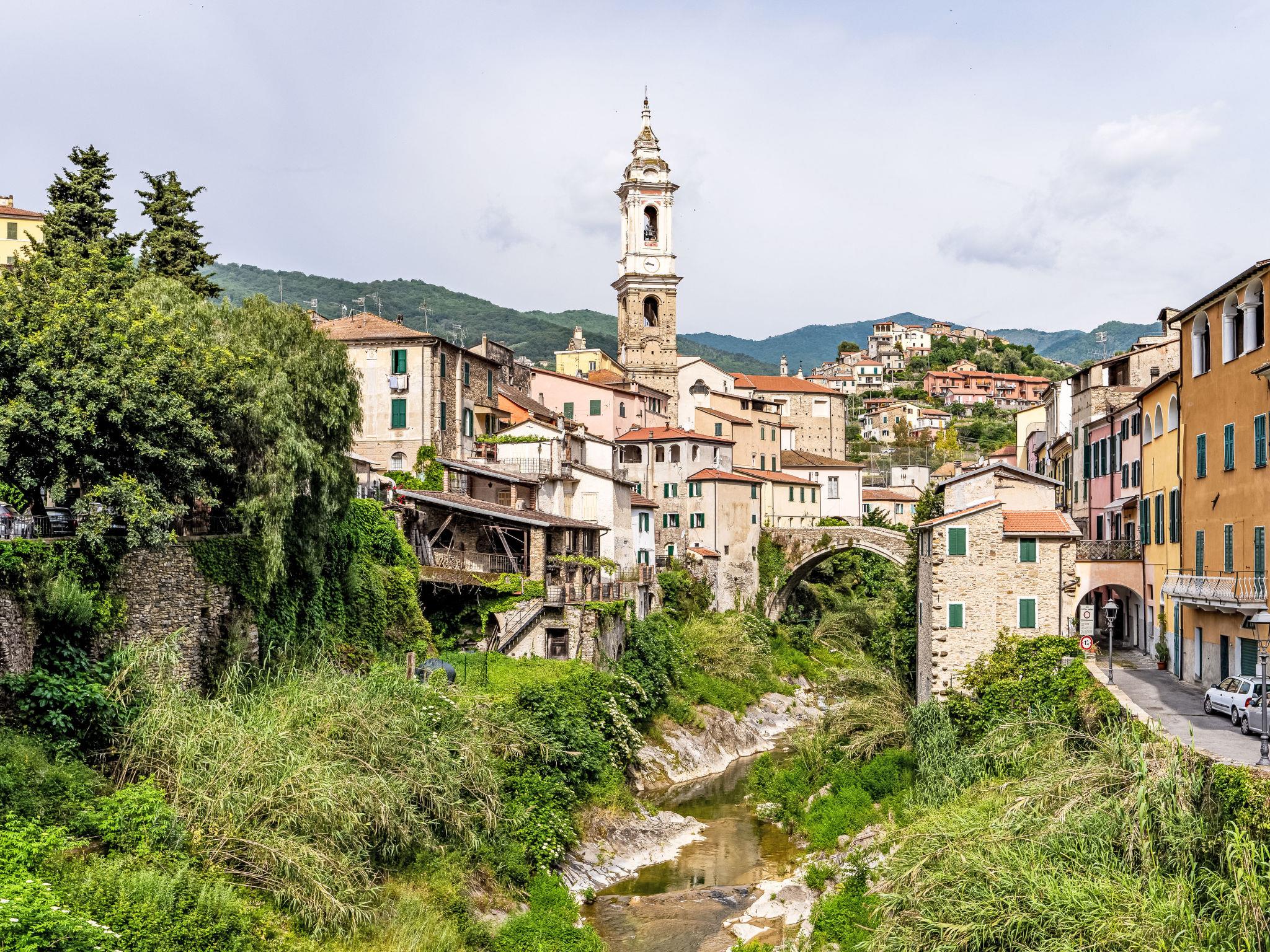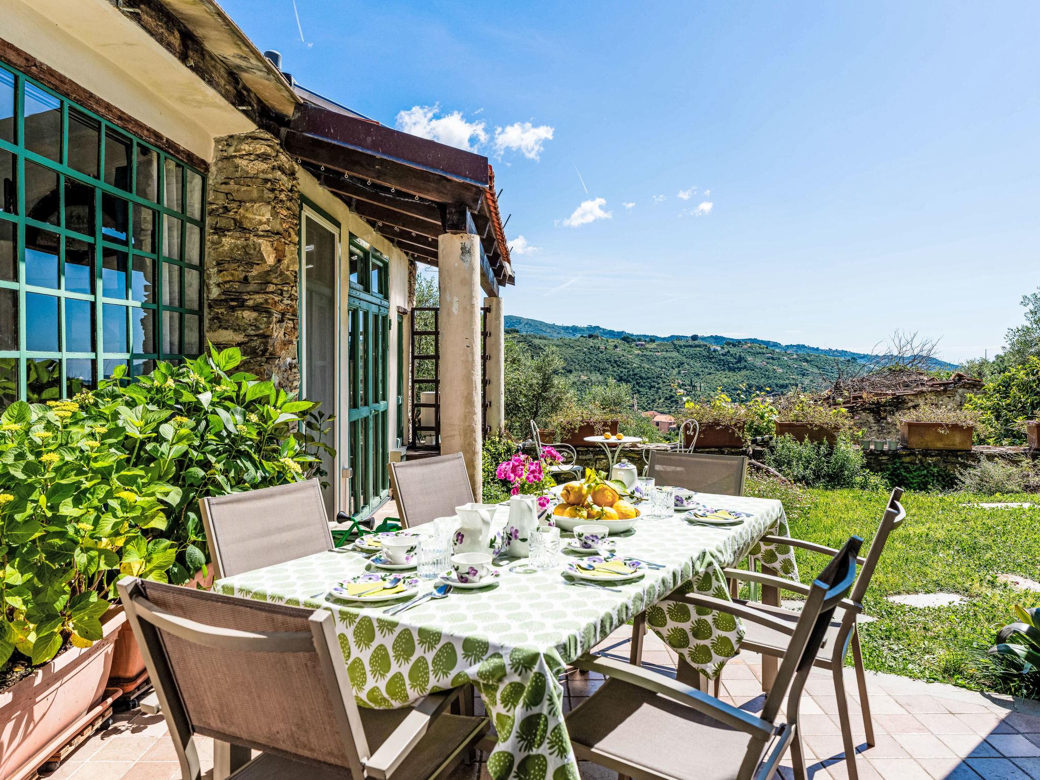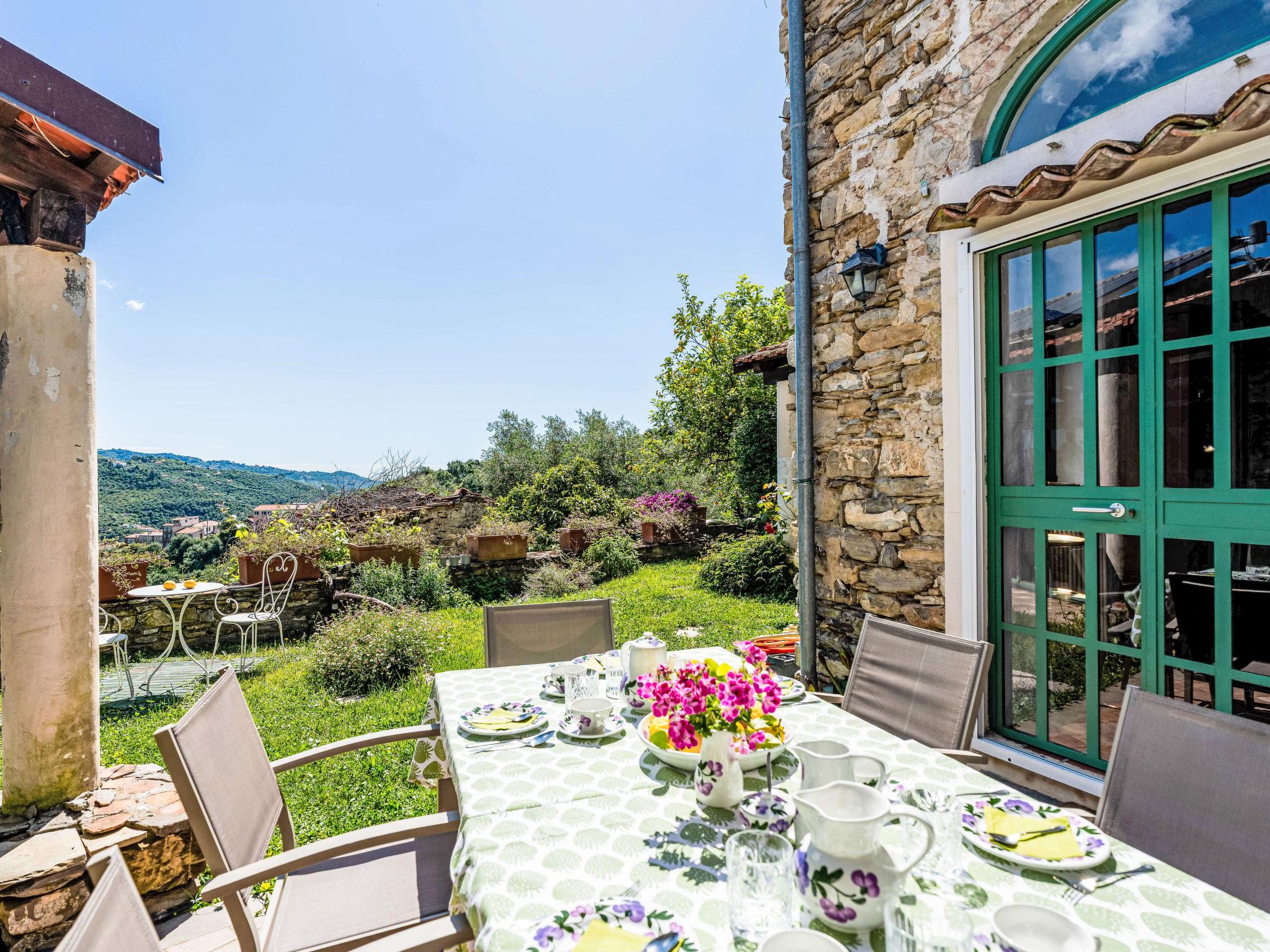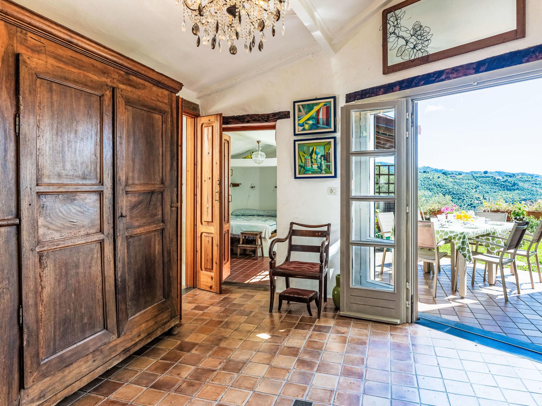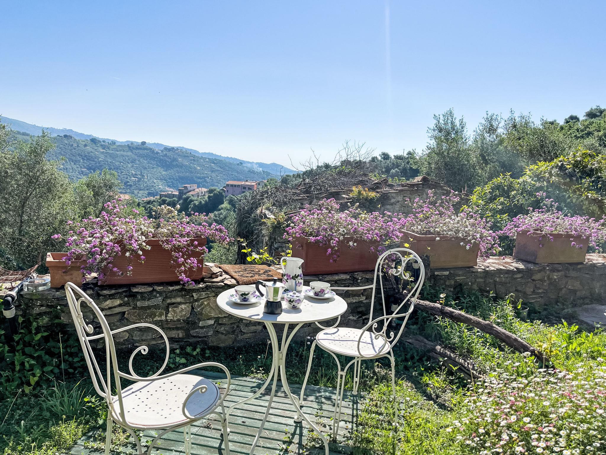 Manor house "Sul Cammino", 227 m a.s.l., 2 storeys, renovated, surrounded by trees and meadows. In the hamlet Ramelli with 2 houses 3 km from the centre of Dolcedo, in a quiet, sunny position on top of a hill, 15 km from the sea. Private: natural state property 1'000 m2, small, well-kept garden (fenced) with flowers and trees, parking (for 2 cars). Supermarket 15 km, restaurant 5 km, bakery 5 km, bus stop 20 m, railway station 20 km. Please note: car recommended.