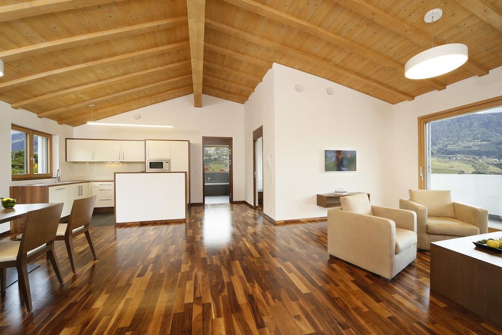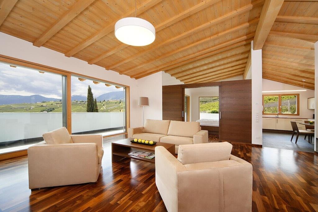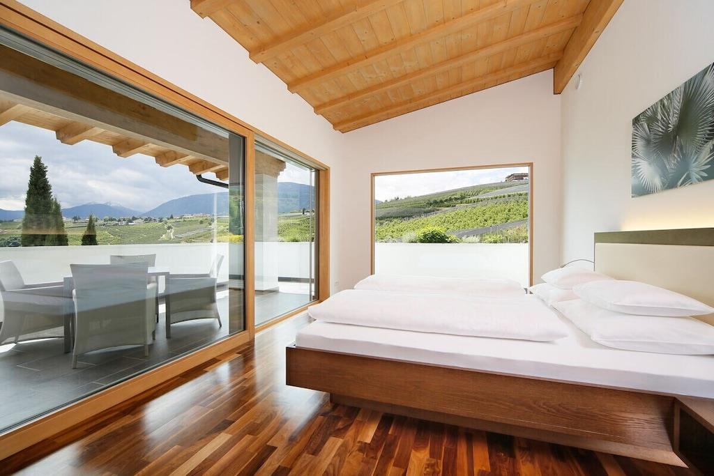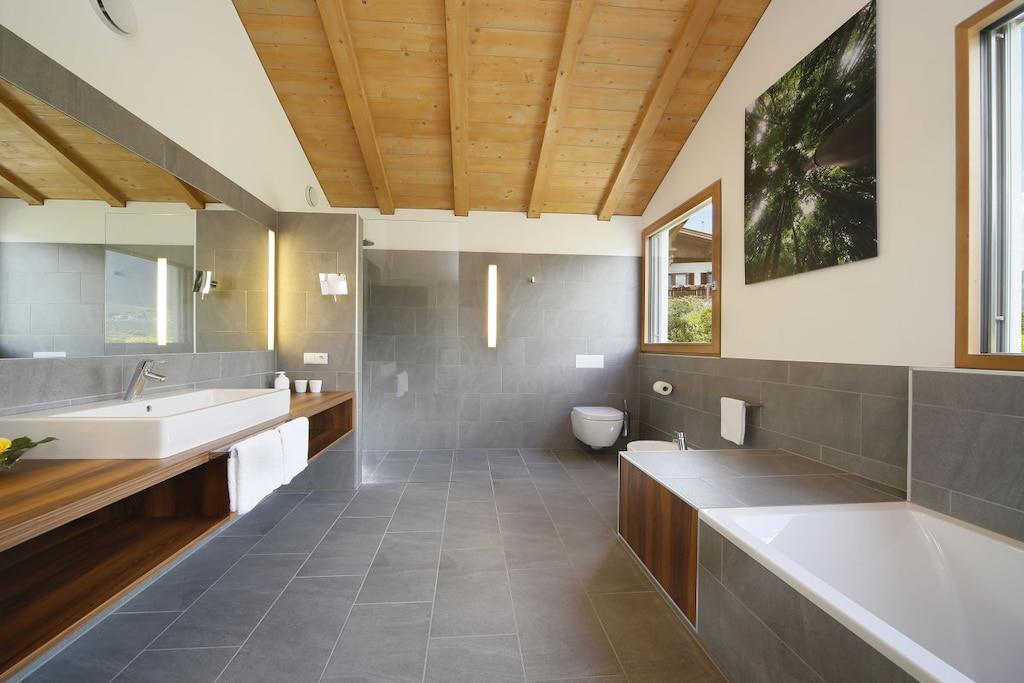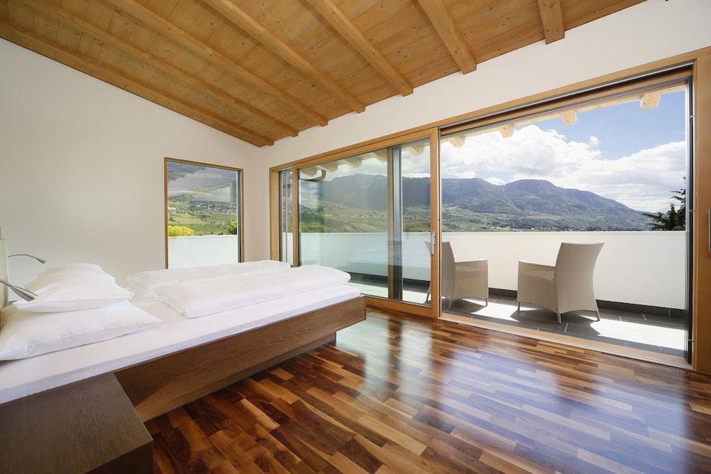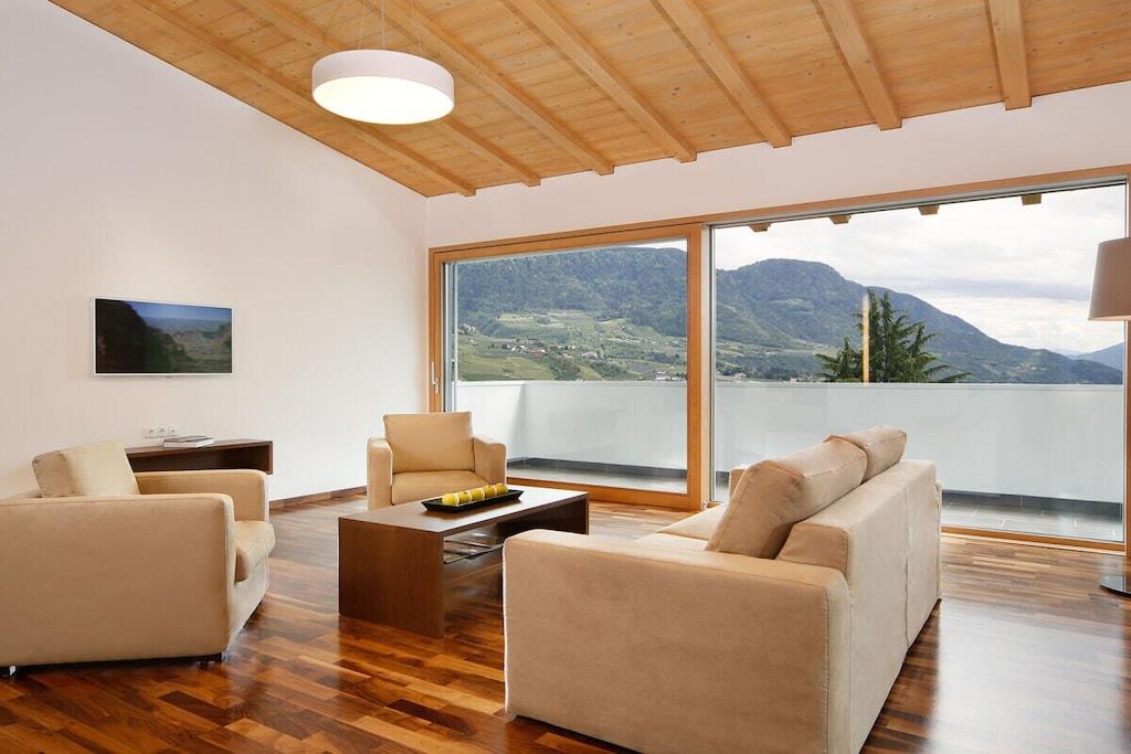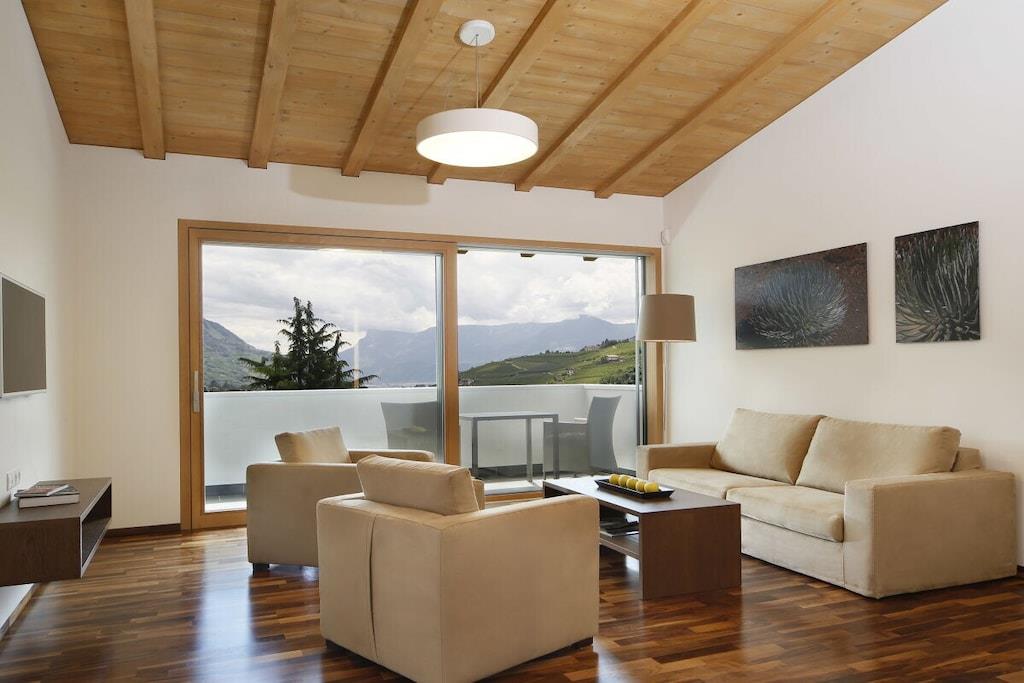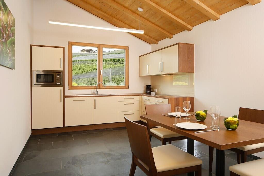 Ferieleiligheten har et stort soverom med panoramautsikt, en stue med satellitt-TV, et fullt utstyrt kjøkken og en sørvendt balkong. Badet har dusj, toalett, bidet, hårføner og sminkespeil. Et ventilasjonssystem regulerer oppvarming og kjøling, noe som sikrer et spesielt behagelig inneklima. Et oppvarmet svømmebassengkompleks med panoramautsikt og en toetasjes solplen, samt en grusbane, forbedrer ditt velvære på feriestedet vårt. Et treningsrom og badstueområde ligger i hovedbygningen.