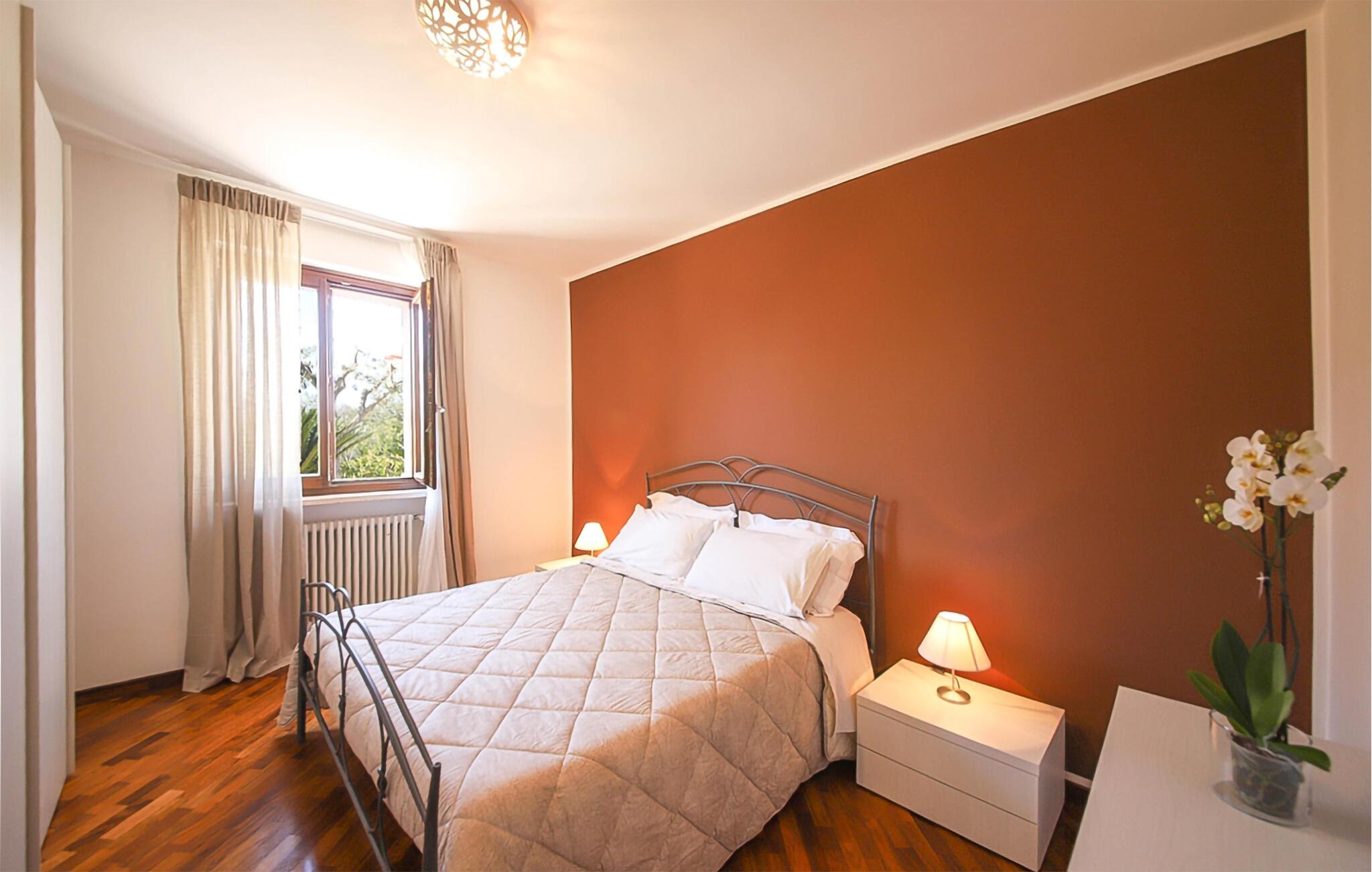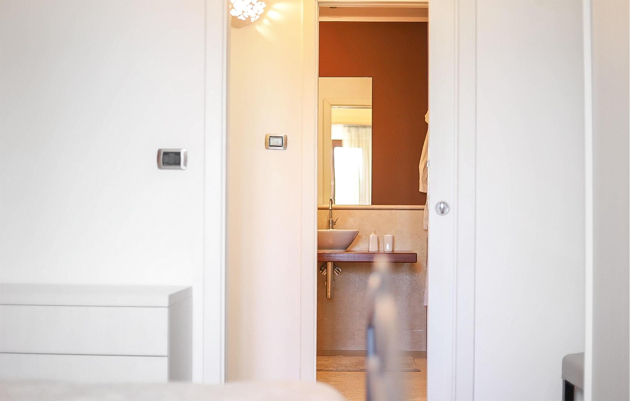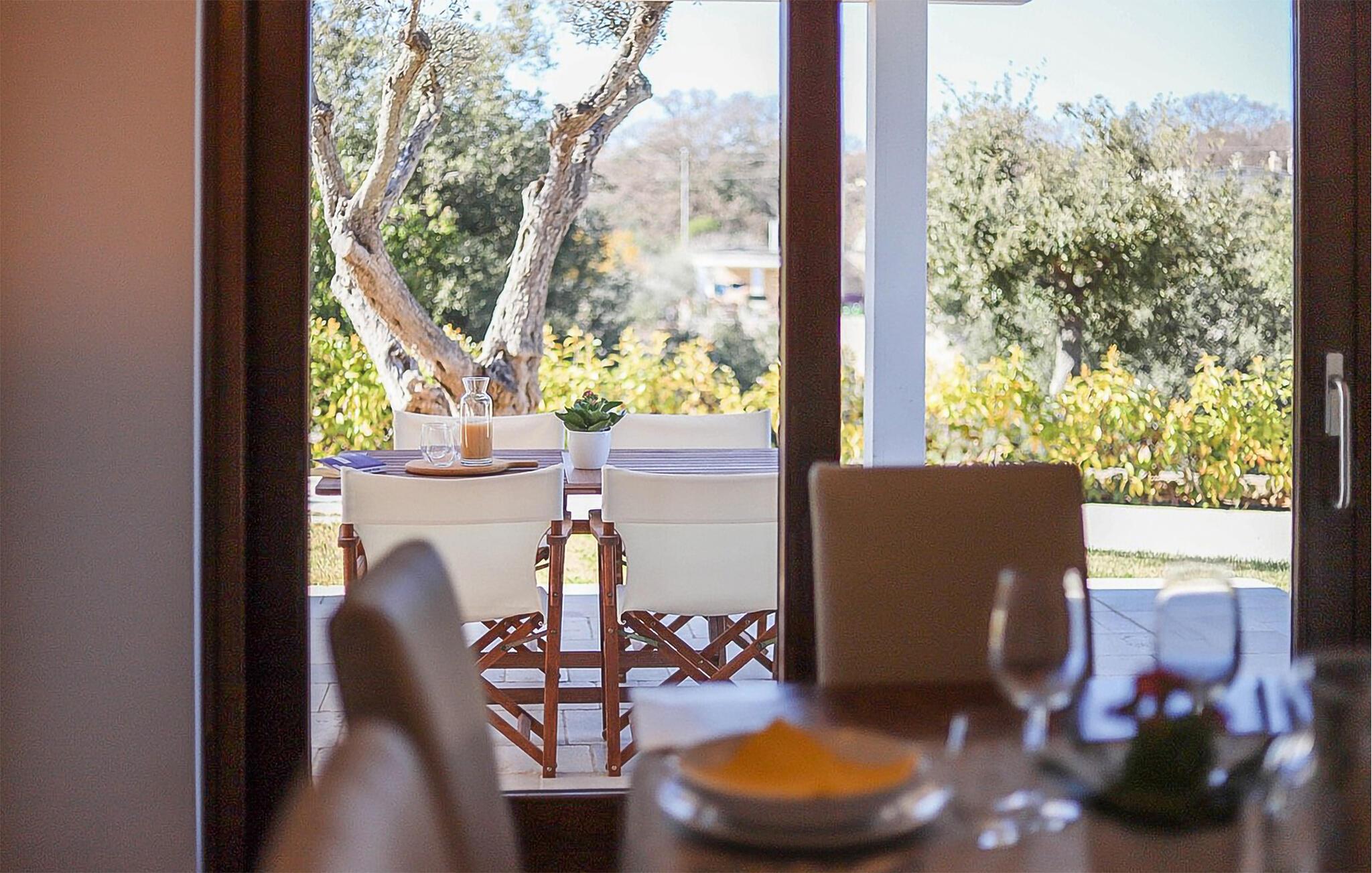 Denne romslige og smakfullt innredede ferieleiligheten ønsker deg velkommen med en koselig atmosfære, der gulv-til-tak-vinduer slipper inn rikelig med naturlig dagslys og åpner opp for en vakker utsikt over middelhavsvegetasjonen. Tilbered kulinariske høydepunkter med ferske ingredienser fra markedet, og planlegg eventyrene dine over avslappede måltider. Om kvelden kan du kose deg med en god bok eller et brettspill i den innbydende stuen.