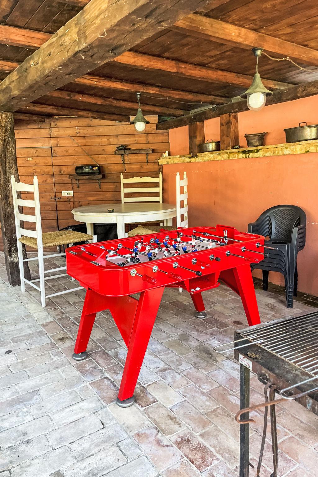 Large, beautiful farmhouse "Martin", built in 2008, renovated, surrounded by meadows and fields. Outside the resort Montegranaro, 15 km from the sea. Private: property 600 m2 (fenced), well-kept garden 400 m2, swimming pool (10 x 6 m, depth 140 - 240 cm, seasonal availability: 01.Apr. - 15.Oct.) with internal staircase. Unconventional pool shape. WC in the pool area, paddling pool, outdoor shower, pool house, terrace, garden furniture, barbecue, parking (for 5 cars) on the premises. Bus stop 700 m, sandy beach "Civitanova Marche" 8 km pebble beach "Civitanova Marche" 8 km. The owner does not accept any youth groups.