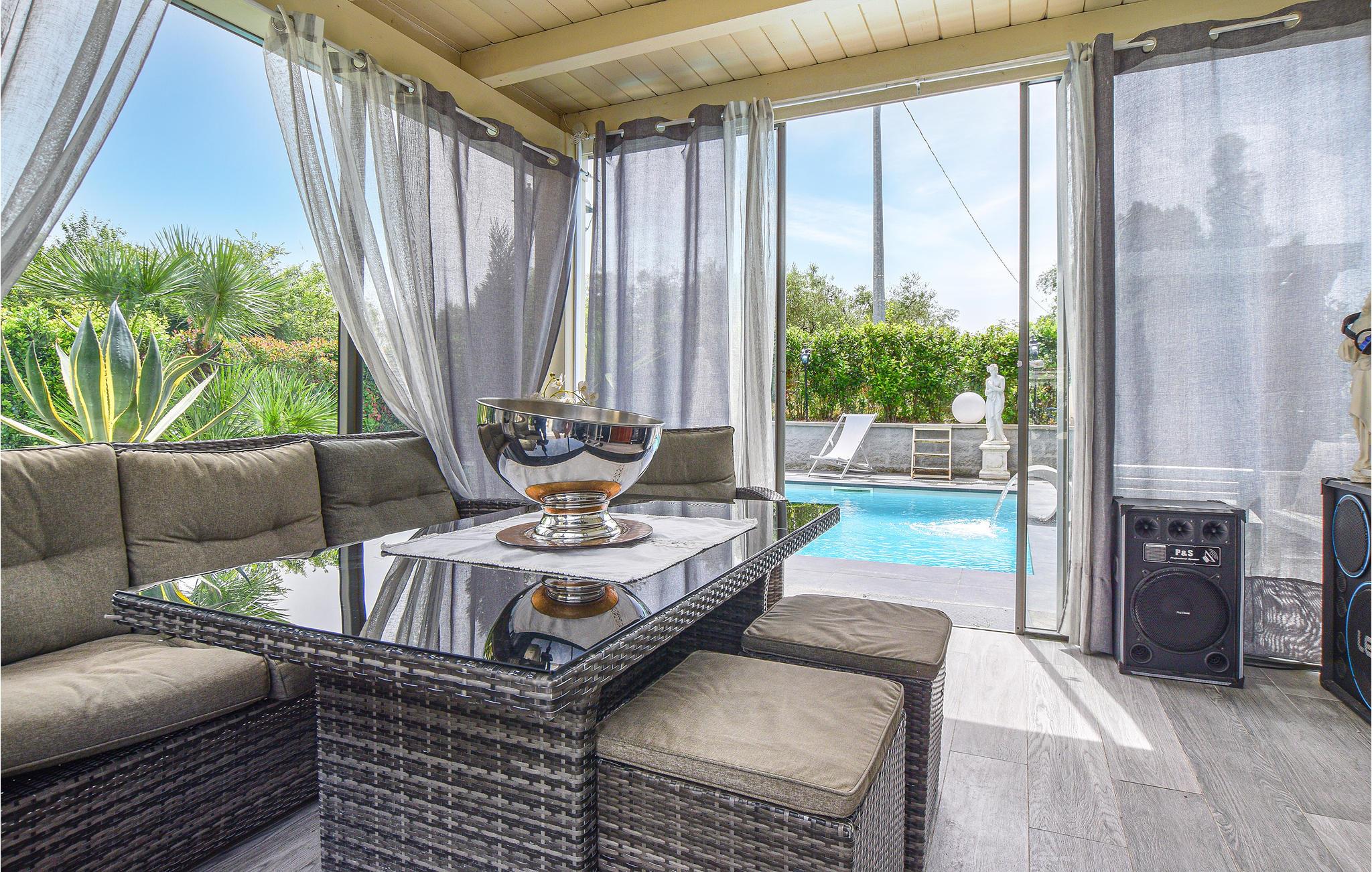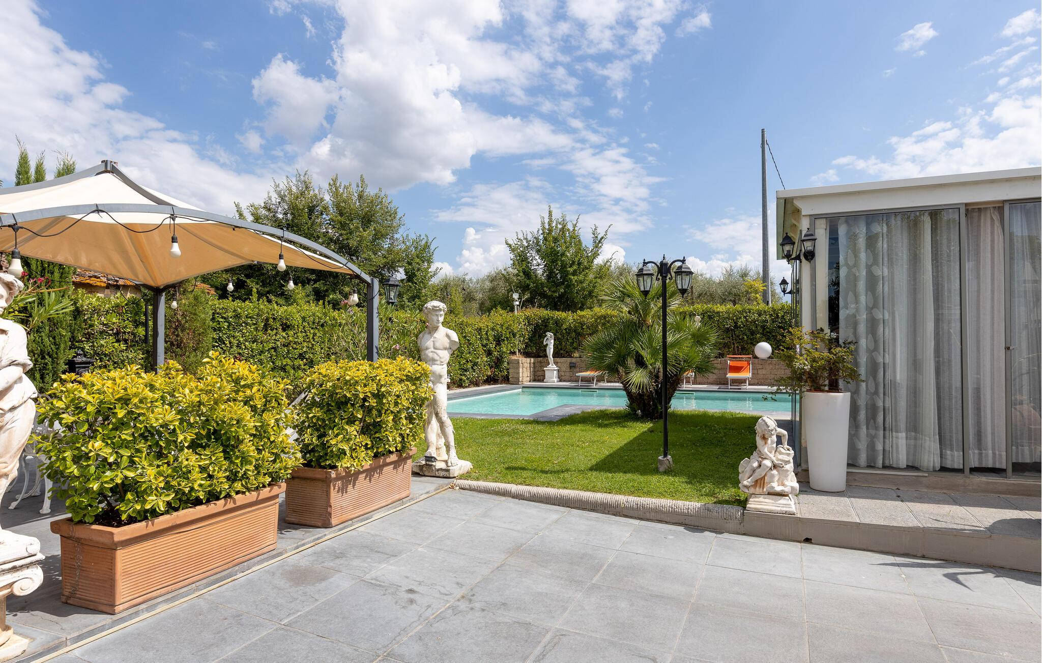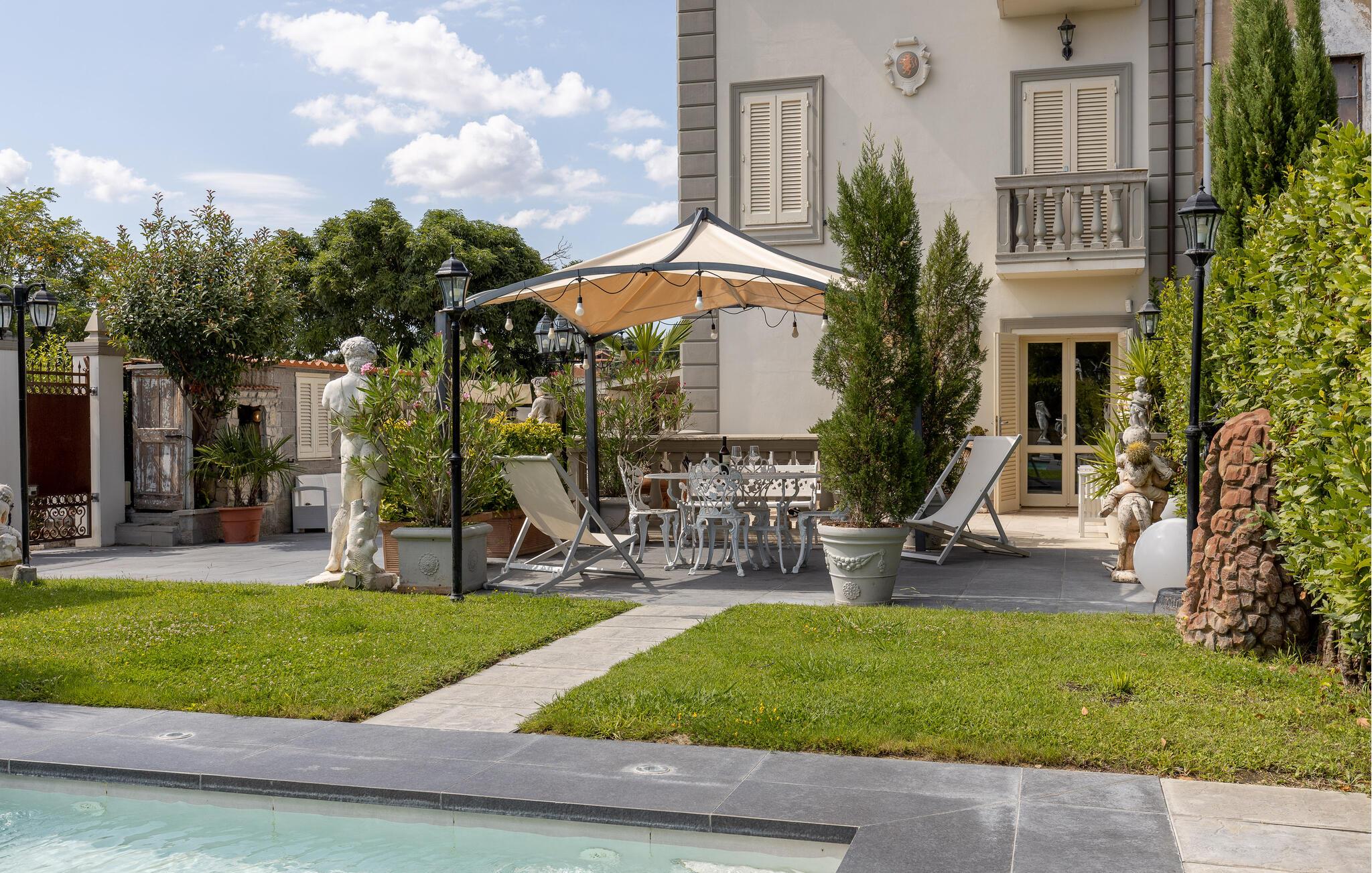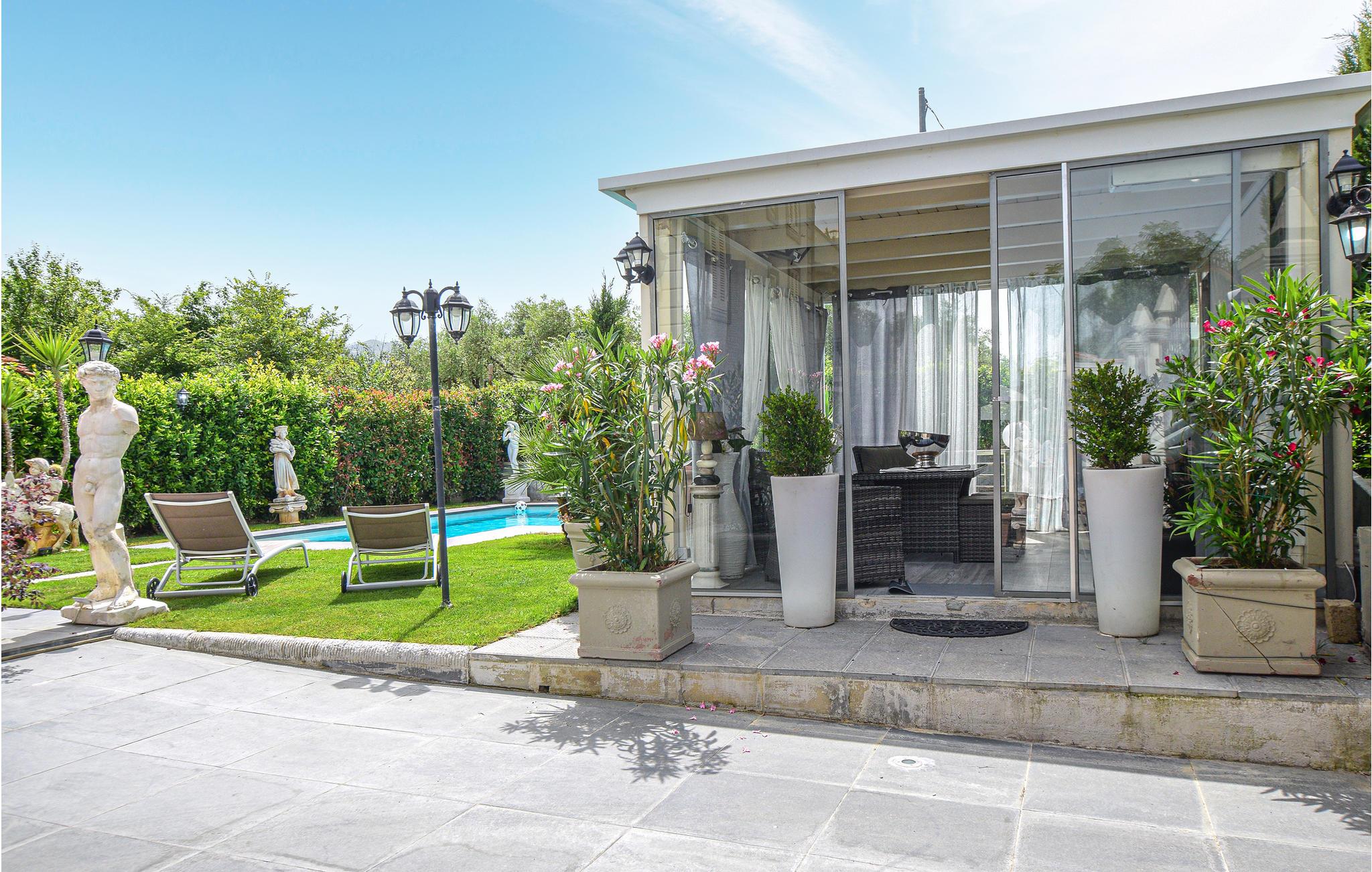 Nydelig feriehus med basseng og flotte uteområder.