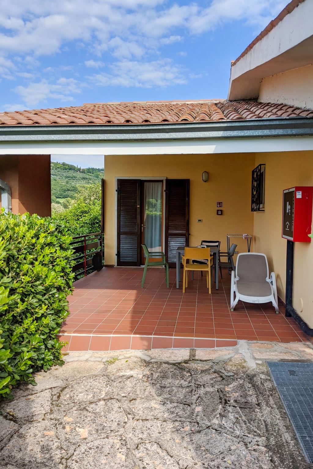 "Comfort", 2-room apartment 50 m2, on the ground floor. Renovated in 2025, very comfortable furnishings: living/sleeping room with 1 sofabed, 1 pull-out bed, dining table and satellite TV. Exit to the terrace. 1 double bedroom. Open kitchen (Gas stove, 4 gas rings, microwave, electric coffee machine). Shower/bidet/WC. Gas heating, air-conditioning. Heating available only from 01.10. to 30.04. Terrace roofed. Terrace furniture, deck chairs. View of the swimming pool, the garden and the countryside. Facilities: safe, children's high chair. Internet (WiFi, free). Parking (1 car). Please note: non-smokers only. Private entrance. IT023036B48K58OFWZ