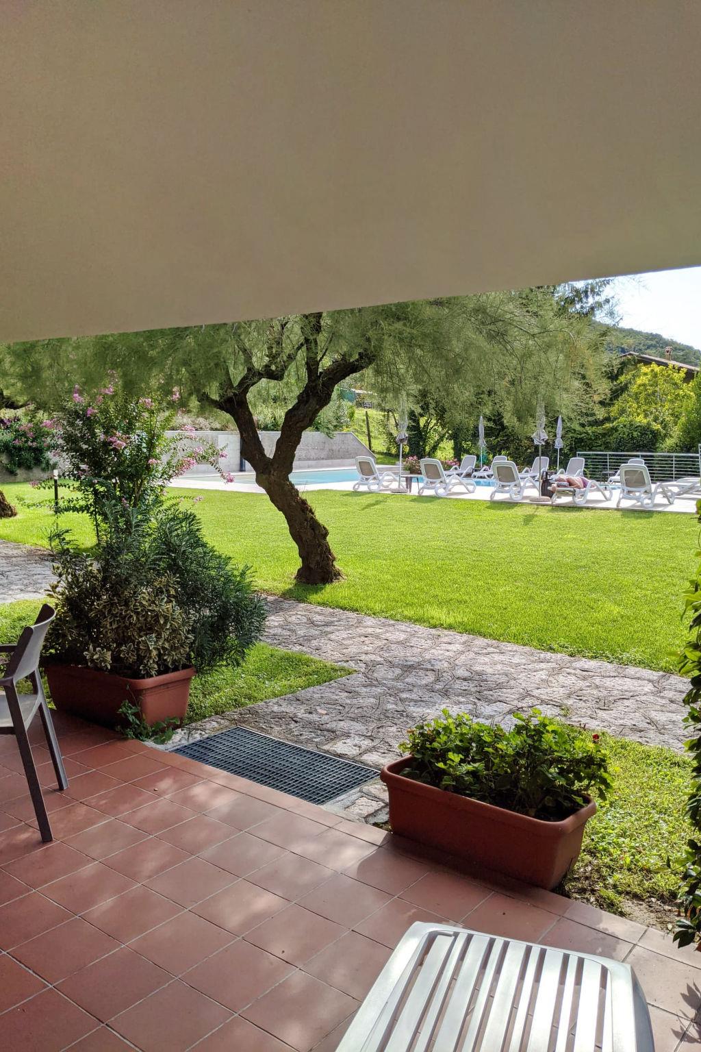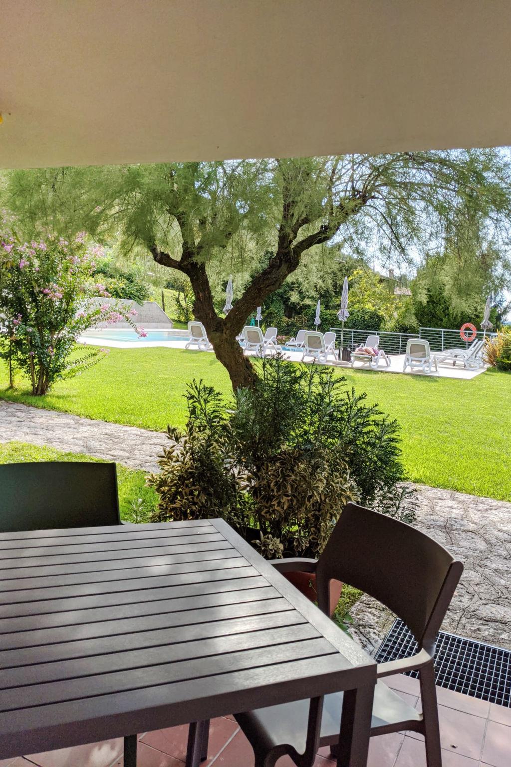 Residence "Le Rasole", 2 storeys. 10 apartments in the residence. On the outskirts, 2 km from the centre of Garda, on a slope, residential area (villas), 2 km from the lake, in the countryside. For shared use: well-kept terraced garden with lawn and trees, swimming pool (12 x 4 m, depth 140 cm, seasonal availability: 15.May. - 30.Sep.). Outdoor shower, barbecue, children's playground. In the house: washing machine (for shared use). Stepped path to the house. Parking on the premises. Supermarket 1 km, restaurant 50 m, pedestrian zone 2 km, bus stop 1.3 km, ferry "Ferry Terminal Garda" 2.2 km, pebble beach 2 km, thermal baths "Gardacqua" 2 km. Golf course (18 hole) 4 km. Nearby attractions: Verona 37 km, Sirmione 30 km, Malcesine 30 km, Gardaland 16 km. The owner does not accept any youth groups.