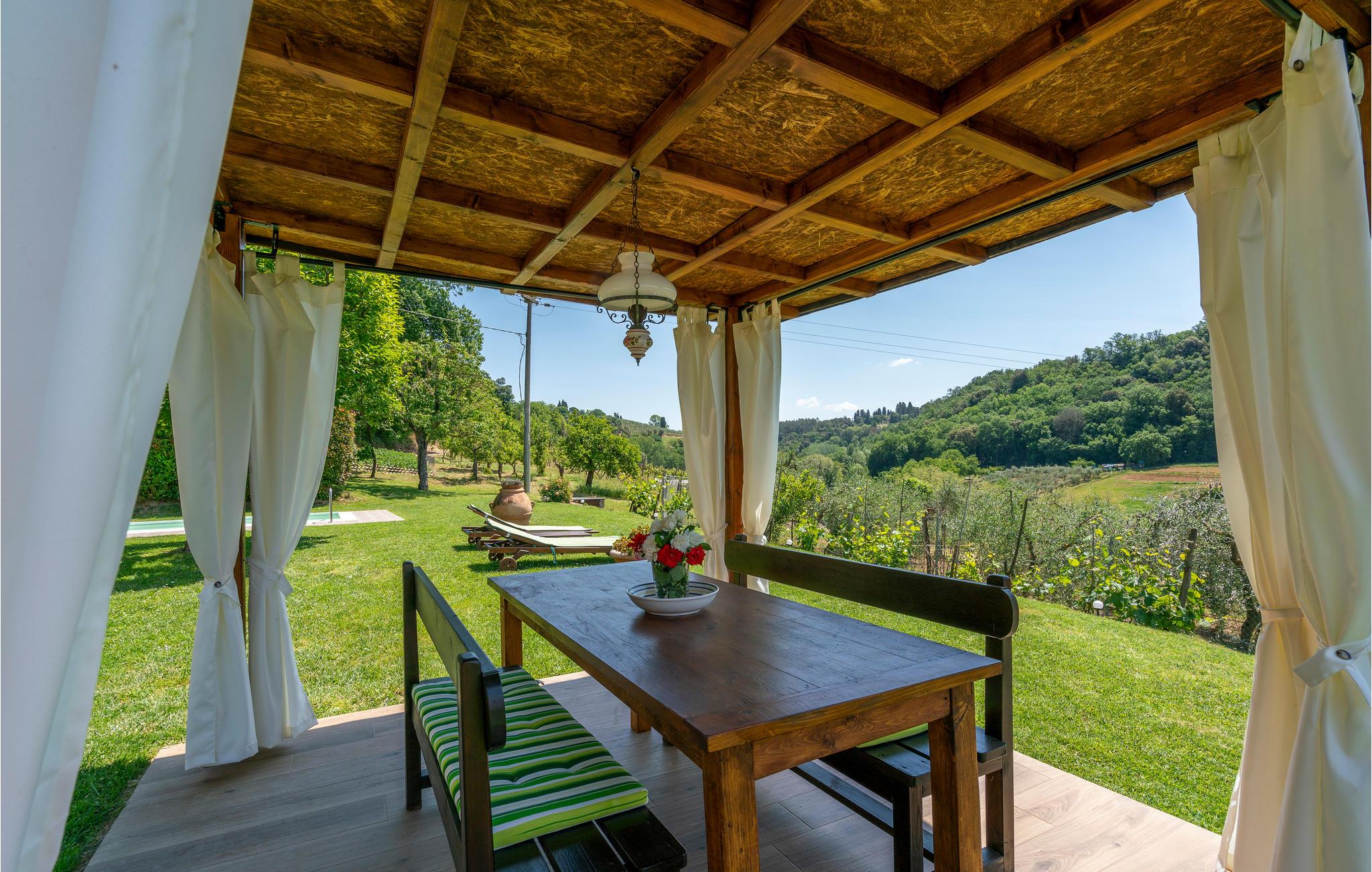Dette lille frittliggende feriehuset med privat basseng, med uteområde med møbler og grill, ligger på landsbygda, omgitt av vingårder og olivenlunder. Designet av eierne som deres egen bolig, er den utstyrt med alle bekvemmeligheter. Dette overnattingsstedet ligger i nærheten av San Gimignano og Chianti-området, og er et utmerket utgangspunkt for å besøke Firenze, Siena, Monteriggioni og Volterra. Huset er tilgjengelig via en 300 m grusvei. Avstander: 3 km Poggibonsi (viktig by i Val d'Elsa med butikker av alle slag); 14 km middelalderbyen San Gimignano; 30 km den fascinerende byen Siena med sin spektakulære "Piazza del Campo"; 45 km unna ligger de sjarmerende byene Firenze og Volterra med sin kulturelle og arkitektoniske rikdom.