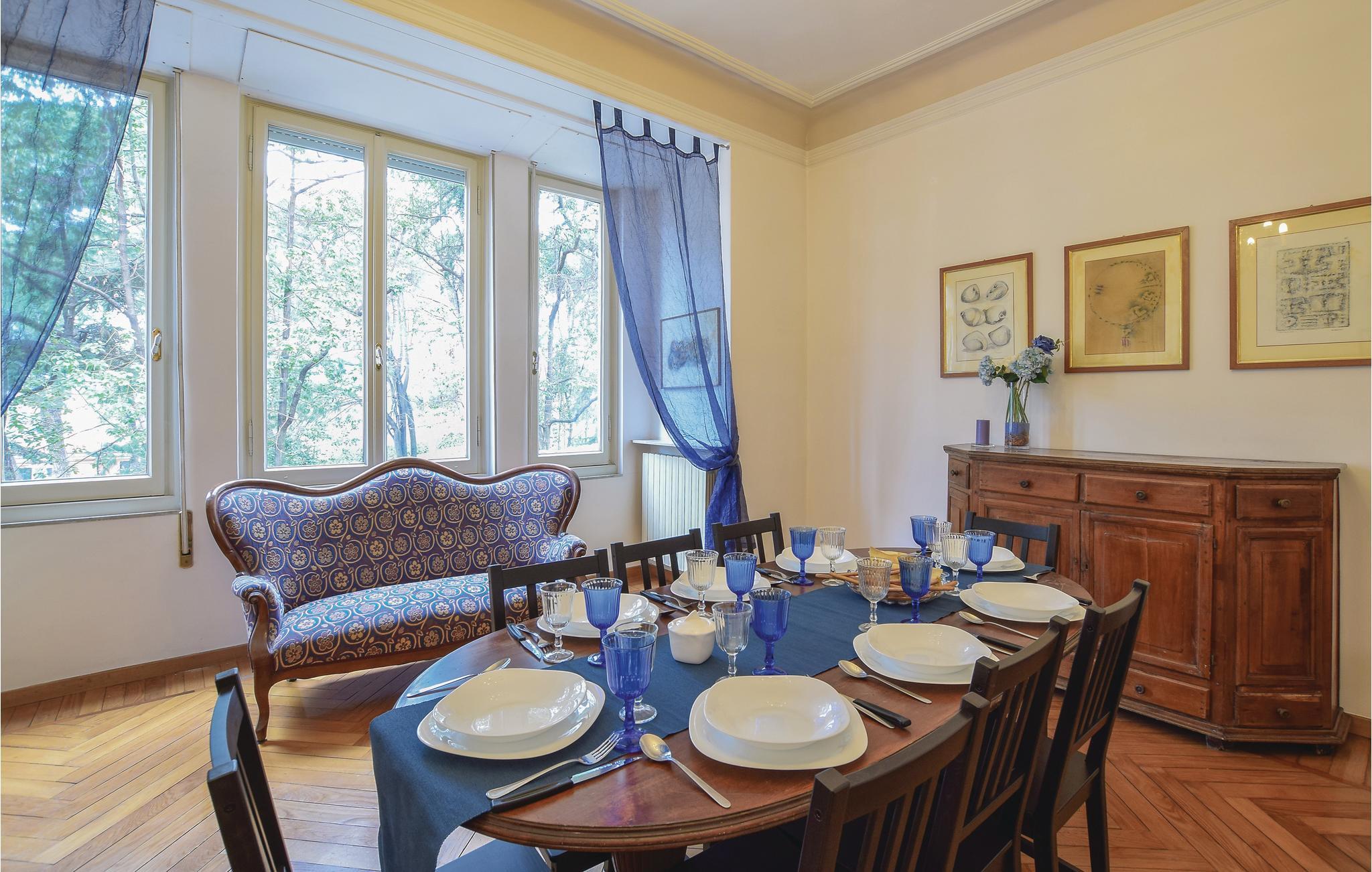 Elegant ferieleilighet i la Superba, den mest eksklusive bydelen i havnebyen Genova, mellom historiske patrisierhus og store grøntområder, bare noen få skritt fra strandpromenaden Corso Italia og det karakteristiske sjømannsdistriktet Boccadasse med sine pastellfargede hus og trange smug. Leiligheten er klassisk innredet med noen antikke møbler fra gamle transatlantiske skip. Leiligheten består av en stor entré, dobbel stue, spisestue, kjøkken, 4 soverom, et spillerom med sovesofa, 2 marmorbad og et lite treningsrom. De 3 dobbeltrommene kan gjøres om til tomannsrom på forespørsel ved bestilling. En lang balkong strekker seg rundt hele leiligheten. I nærheten ligger et sportskompleks med innendørs- og utendørsbasseng, rulleskøytebane og tennisbaner. Sentrum av Genova er lett tilgjengelig med offentlig transport. Genova har et av de største og best bevarte historiske sentrene i Europa: 18 km med bymurer fra middelalderen, en intrikat labyrint av trange gater, flere små og karakteristiske torg, mange kirker, gamle bygninger med praktfulle malerier og historiske palasser. I den gamle havnen ligger Europas nest største akvarium, sjøfartsmuseet og panoramahissen Bigo, som er tegnet av Renzo Piano. De velutstyrte strendene, restaurantene, barene og nattklubbene ligger ikke langt unna. Genova arrangerer mange kulturelle arrangementer og forestillinger i løpet av året. Innlandet byr på flere turstier, terrengsykkelruter og trekkingturer med hest. Båtturer som hvalsafari i Det liguriske hav eller for å utforske de pittoreske fiskerlandsbyene Camogli (berømt fiskefestival), fasjonable Santa Margherita Ligure og Portofino med det marine reservatet, San Fruttuoso med Kristusstatuen på havbunnen eller Cinque Terre-området, som står på UNESCOs verdensarvliste. 13 km fra flyplassen. 22 km til Recco, hvor et stort og spektakulært fyrverkeri finner sted den første uken i september, 25 km til middelalderslottet Dragonara, 32 km til den sjarmerende landsbyen Arenzano. Følgende tilleggstjenester er tilgjengelige på forespørsel og mot betaling: familieutflukter med smaksprøver i Genova, utflukter til Cinque Terre, Riviera di Levante, Portofino og San Fruttuoso, urban trekking i Genova eller naturalistiske utflukter til Cinque Terre og Portofino, utflukter til Noli og Finalborgo, rideutflukter, båtturer, mat personal shopper, privat transport, leie av motorbåt og gummibåt, leiebil eller privatsjåfør. Tilleggstjenester på ferieboligen: matlagingskurs, smaksprøver av typiske produkter (vin, olivenolje, focaccia, pesto osv.), barnevakt, underholdning for barn, hundepass, organisering av arrangementer og bursdager, språkkurs i italiensk, smaksprøver. Vi anbefaler tidlig bestilling.