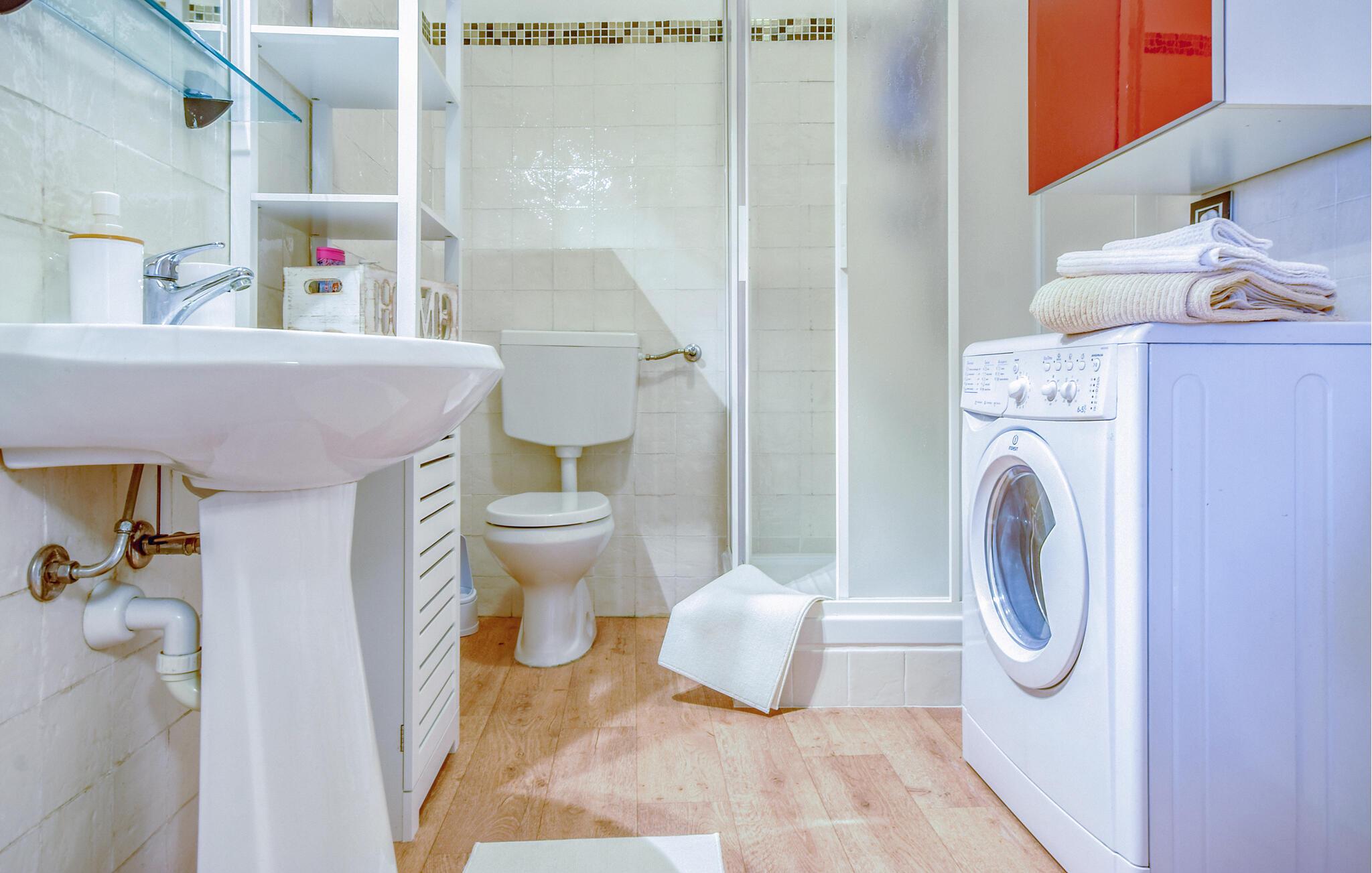 - WC med varmt og kaldt vann, Dusj