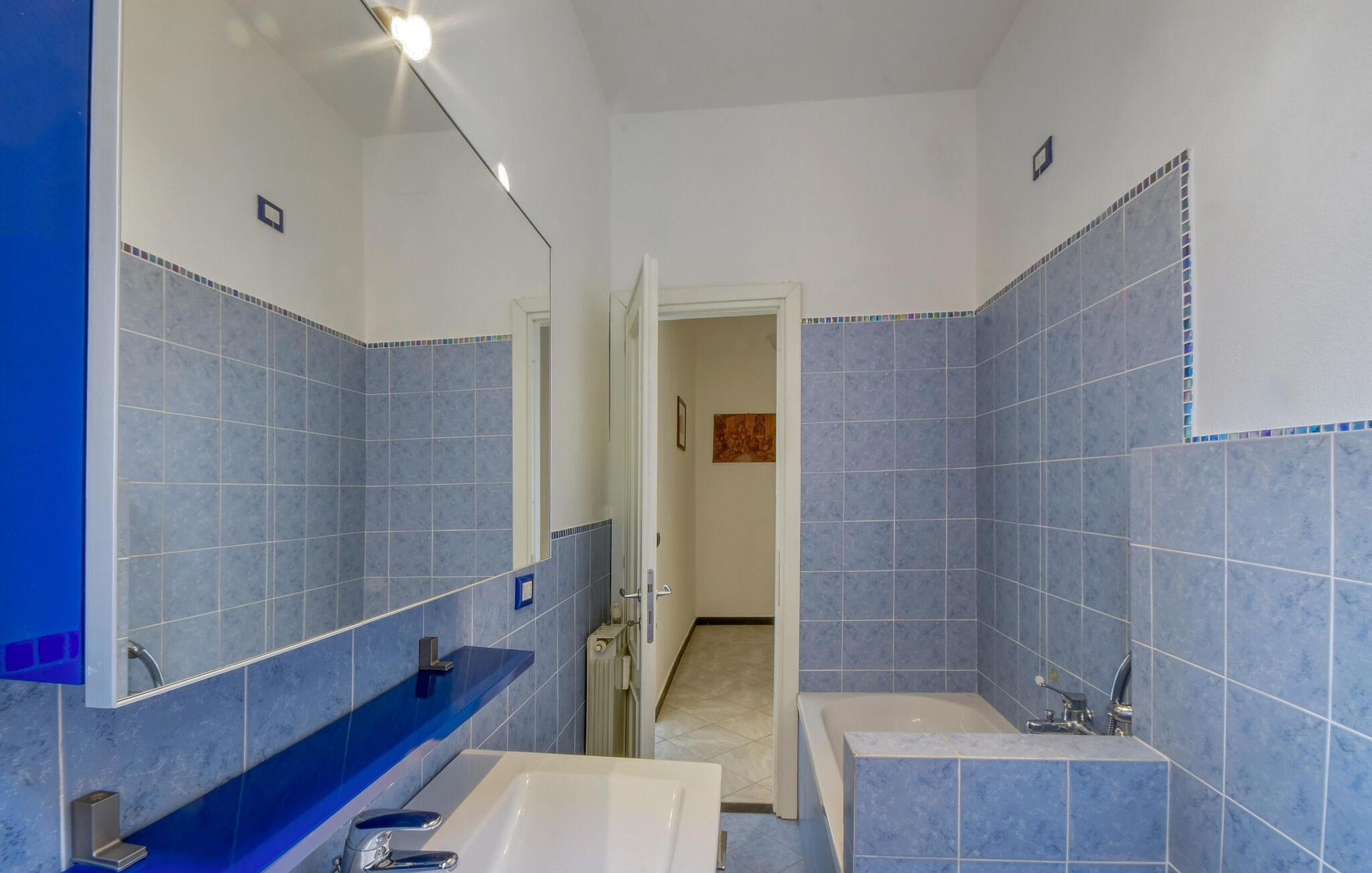 Denne praktiske og lyse ferieleiligheten er ideell for en avslappende storbyferie i Genova. Leiligheten er stilfullt og komfortabelt innredet og har alt du trenger for et behagelig opphold. Den åpne planløsningen skaper en hyggelig atmosfære, og den sentrale beliggenheten gjør den til et perfekt utgangspunkt for utflukter. Nyt morgenen med en kaffe og planlegg dagen, som vil ta deg til de nærliggende smugene, havnen eller strendene.