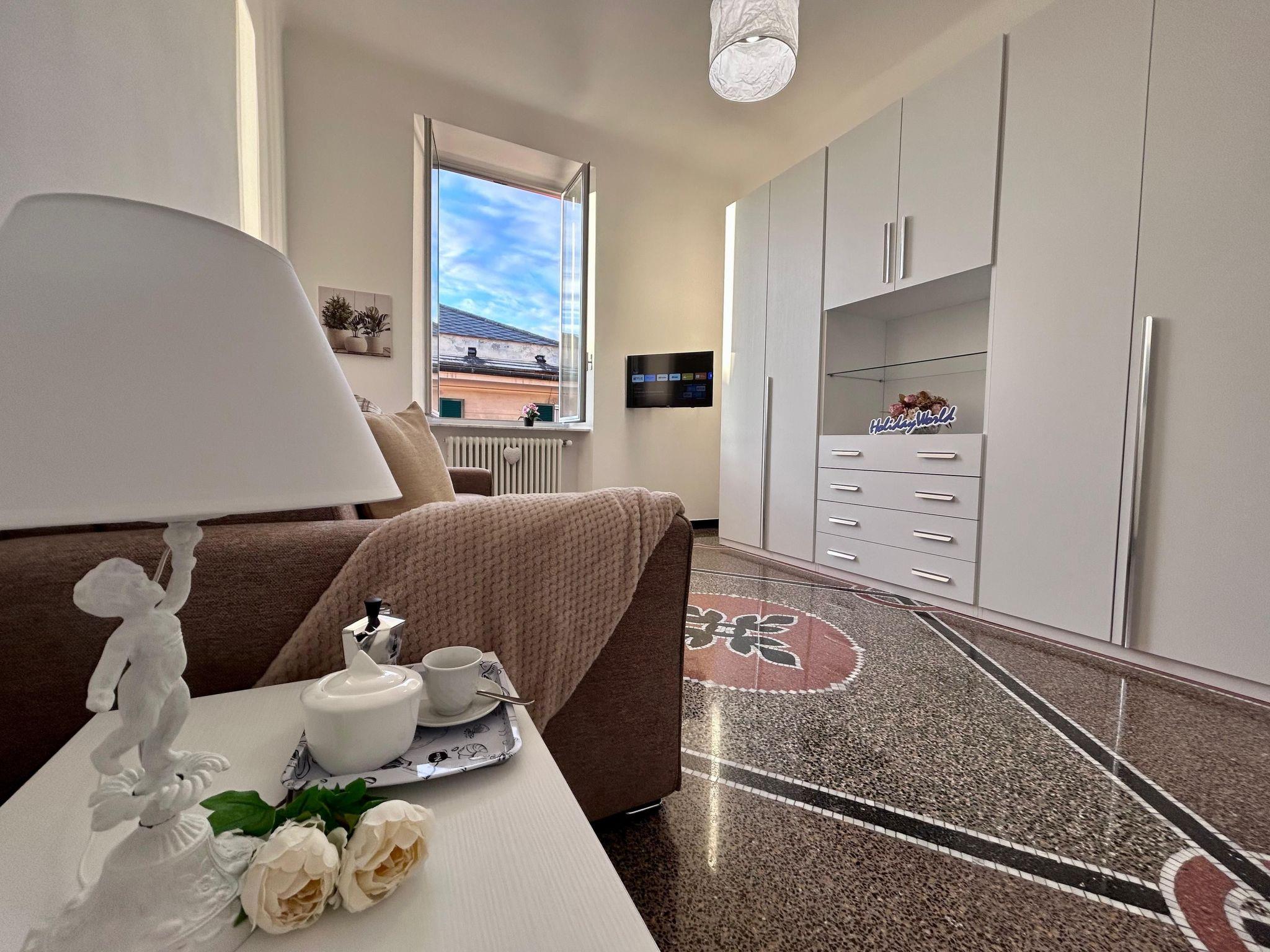 Casa Brighella is a comfortable and cosy accommodation located on the fourth floor of a building in the Sestri Ponente district of Genoa. The flat has a double bedroom, a large, well-lit living room with sofa bed and a bathroom with shower and bidet. The accommodation has every comfort such as Wi-Fi, smart TV, air conditioning and kitchen utensils. The accommodation is well located and easily accessible: it is 4 km from Genoa airport, 300 metres from the train station and 100 metres from shops and restaurants. The proximity to the station also allows those who prefer to travel by train to explore not only Genoa, but also all the wonders of Liguria.