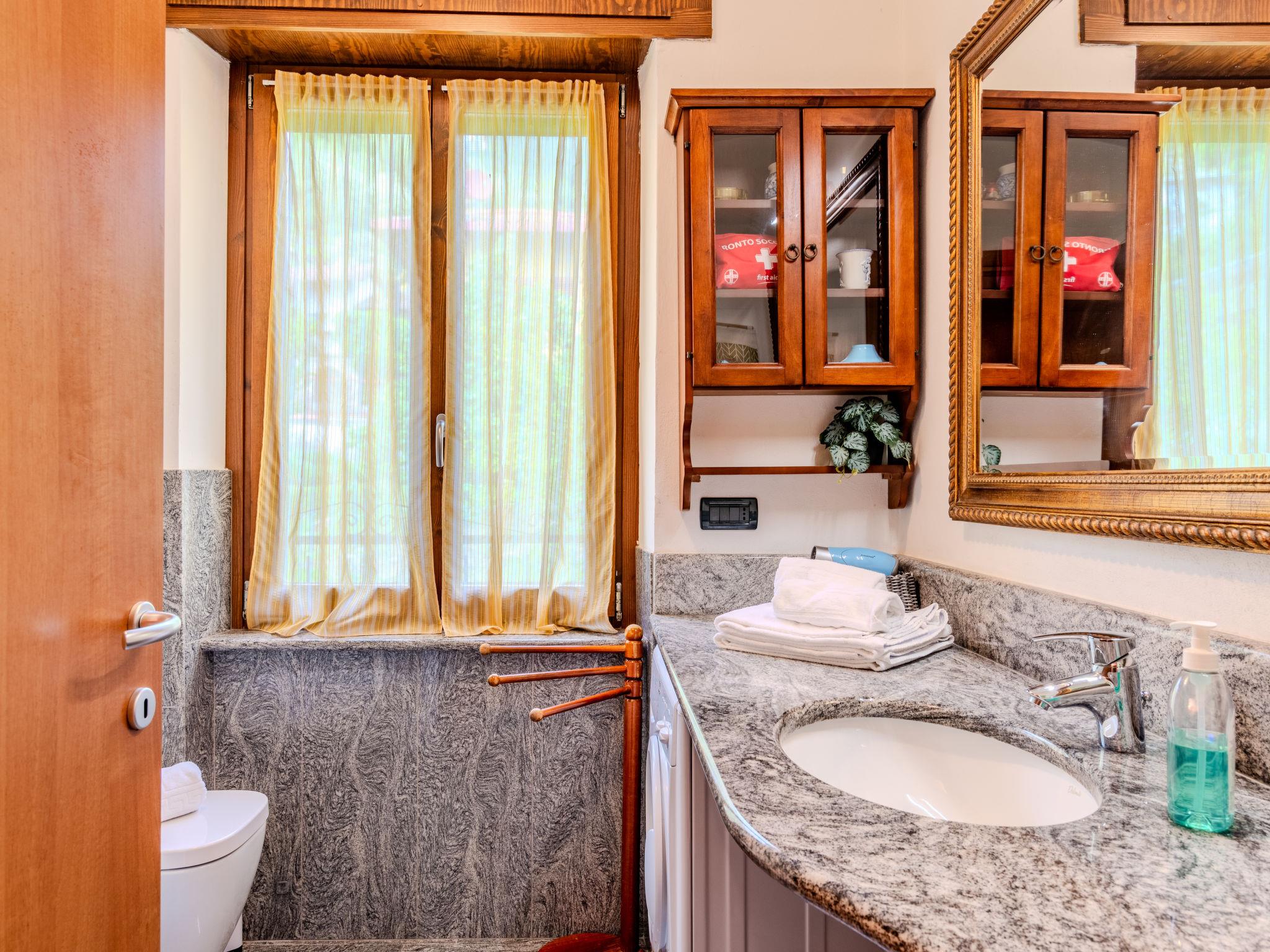 "Bruna", 3-room apartment 85 m2 on 1st floor. Living/dining room with sliding door with open-hearth fireplace (only for decoration), TV. Exit to the balcony. 1 room with 2 beds. 1 double bedroom. Open kitchen (5 hot plates, oven, dishwasher, toaster, microwave, electric coffee machine). Exit to the balcony. Shower/WC. Gas heating. Small balcony, patio. Balcony furniture, deck chairs (2). Very beautiful view of the lake and the mountains. Facilities: washing machine, baby cot for up to 2 year olds. Internet (WiFi, free). Garage (extra) (1 car) at 150 m. Please note: maximum 1 pet/ dog allowed. Private entrance. IT013107C2FWFRX5IV
