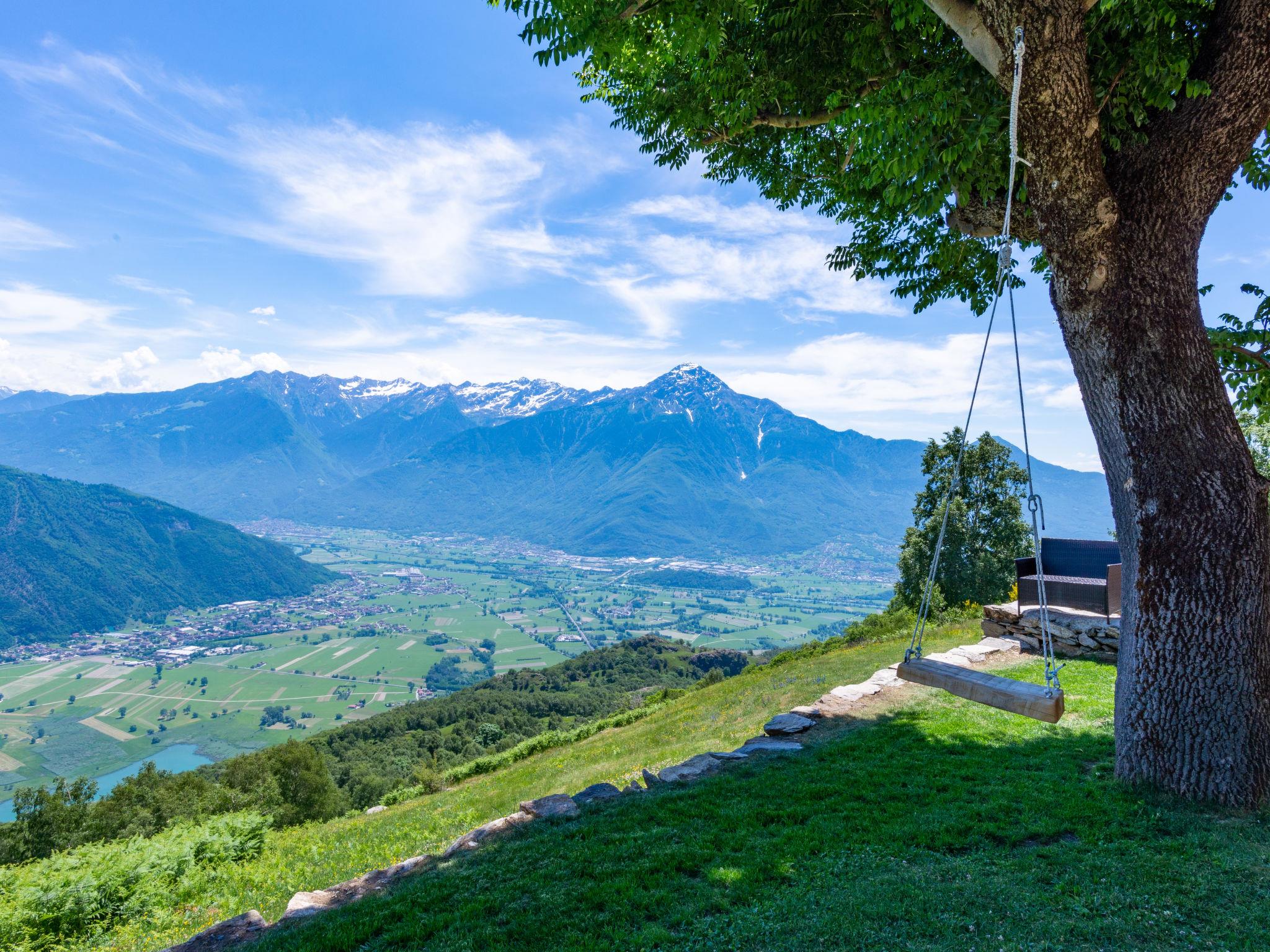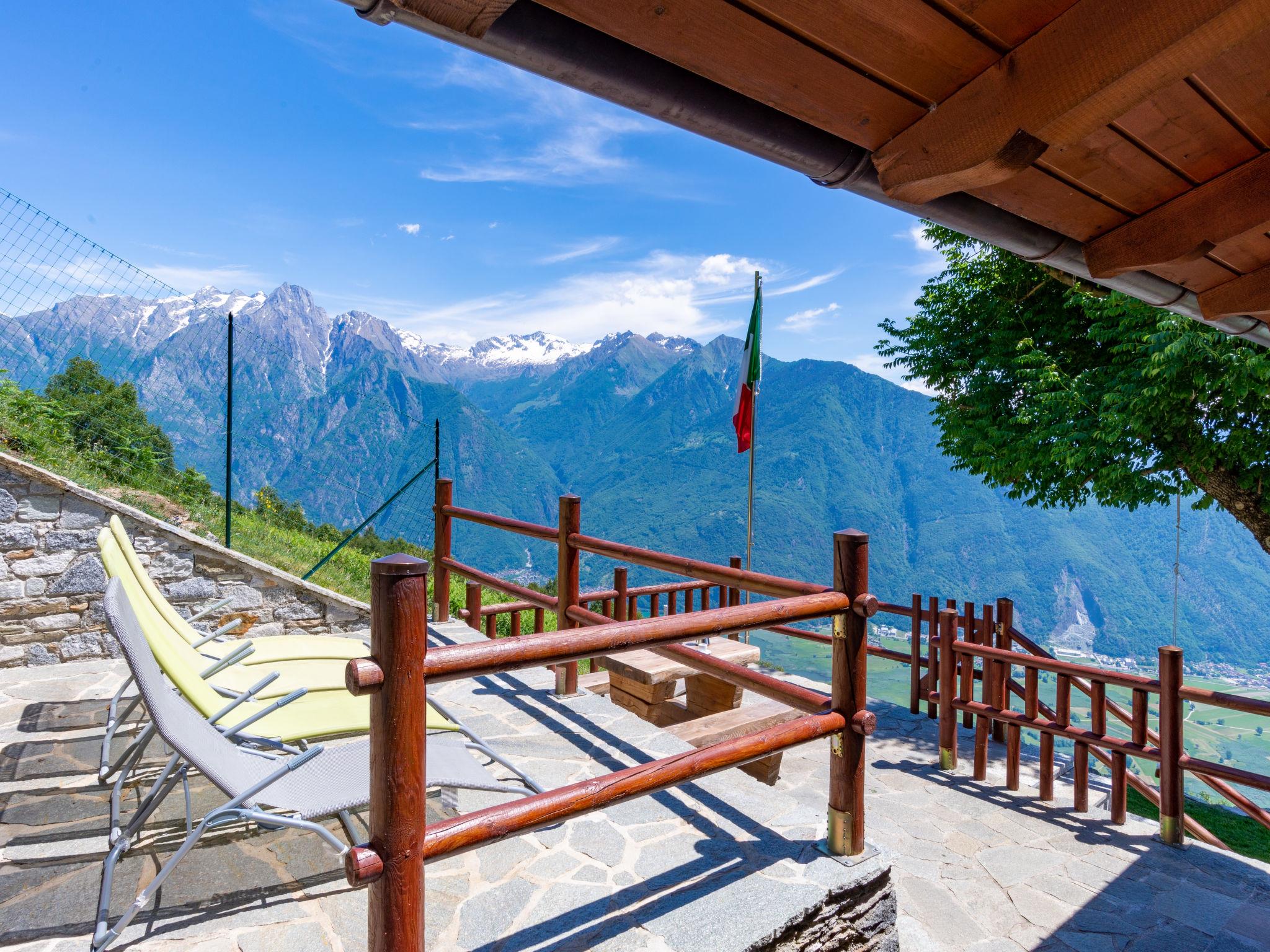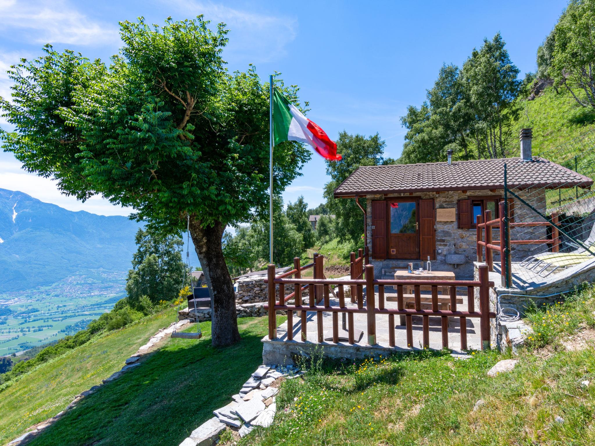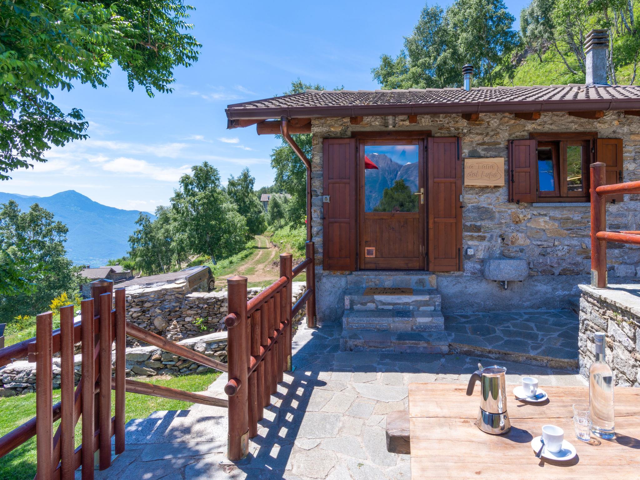 2-room house 35 m2 on 2 levels. Rustic furnishings: living/dining room with sloping ceilings with dining table, satellite TV and heating stove. Exit to the terrace. Open, with sloping ceilings, 1 room with 1 x 2 bunk beds, 1 french bed (140 cm). Open kitchen (dishwasher, 4 induction hot plates, toaster, kettle, microwave, electric coffee machine). On the lower ground floor: shower/WC. Large terrace, patio. Barbecue, deck chairs (4). Marvellous panoramic view of the mountains and Lago di Mezzola. Facilities: hair dryer. Parking (2 cars). Please note: non-smokers only. Maximum 1 small pet/ dog allowed. No internal connecting door between the floors. Note: The wall between the bedroom and living room is open a gap to the ceiling. IT013216C2IQKC6J38