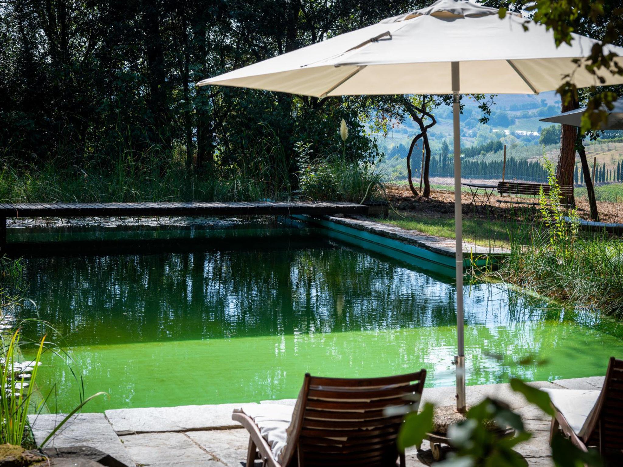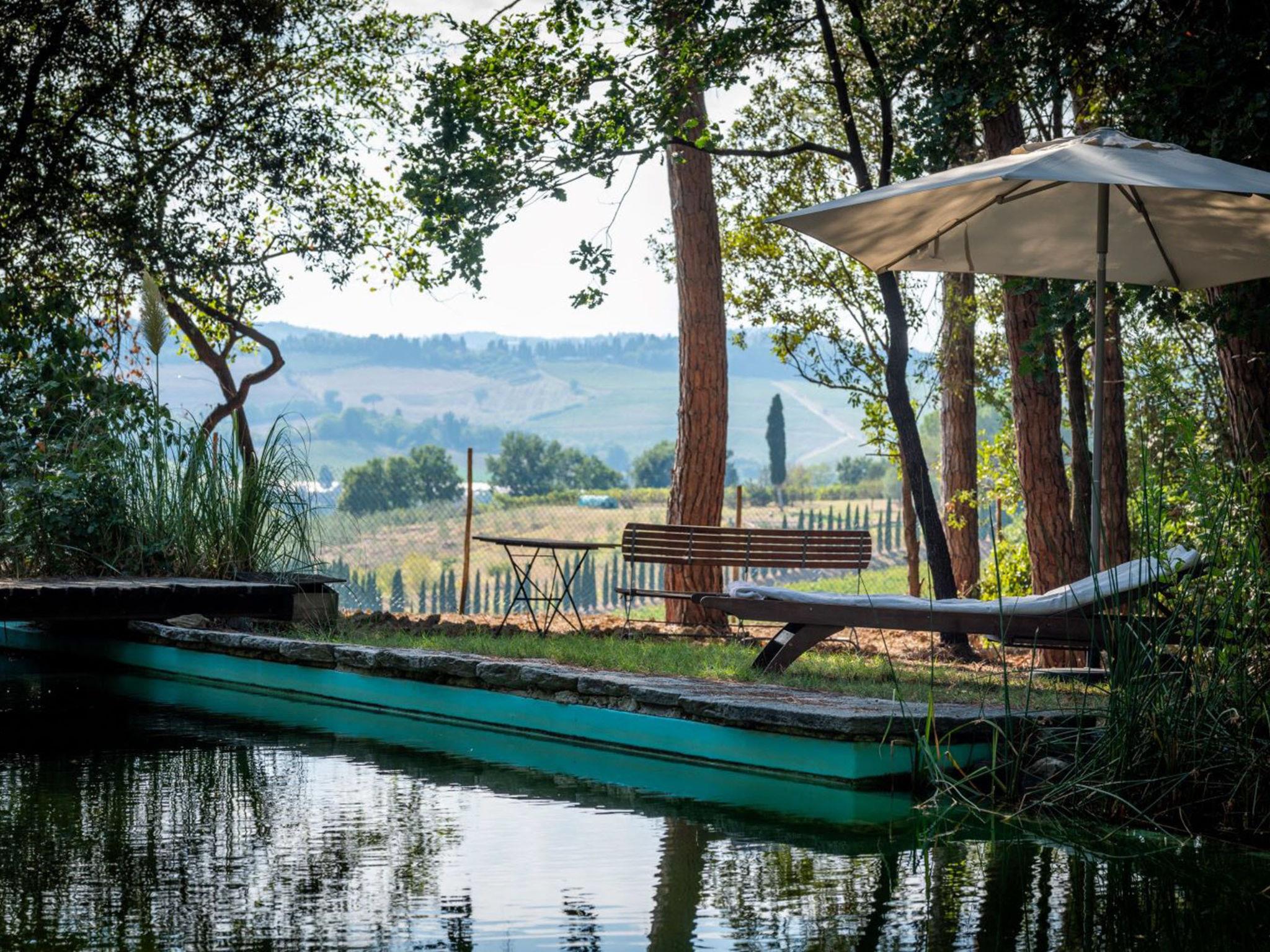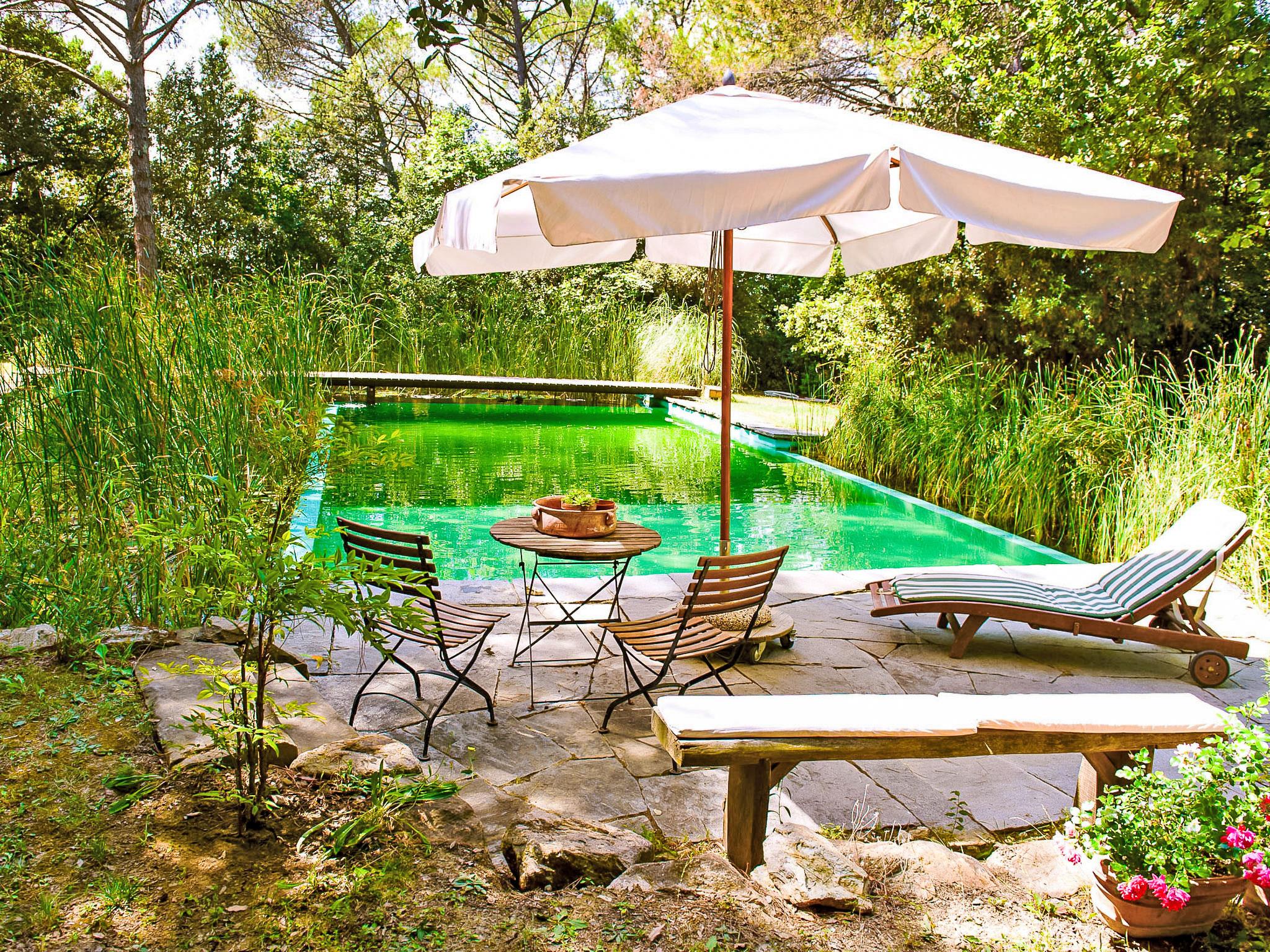 San Vincenzo a Torri 2 km from Ginestra Fiorentina: Near Florence, ideally situated for excursions to the most important art towns in the region. The sea is an hour away by car. Eco-pool in the shade of pine trees, with water plants and ecological water reulation without chemical products. Ceramic courses on request in the workroom of the house. Very old country house "Il Poggio", from the 15th century, surrounded by trees and fields. 3 km from the centre of Ginestra Fiorentina, 40 km from the centre of Siena, 50 km from the centre of Pisa, in a secluded, quiet, sunny position on top of a hill, in a cul-de-sac, in the countryside. For shared use: property, garden, swimming pool with privacy (12 x 6 m, depth 90 - 160 cm, seasonal availability: 04.May. - 05.Oct.). In the house: central heating system, heating to be paid on the spot, heating available only from 01.Nov. - 07.Apr.. Room cleaning on request (extra). Motor access to the house (1 km via unmade road). Parking at the house. Grocery 2 km, restaurant 2 km, bus stop 500 m, railway station "Montelupo Fiorentino" 10 km, sandy beach "Marina di Pisa" 80 km. Golf course (18 hole) 28 km, tennis 3 km, riding stable 4 km. Nearby attractions: San Casciano in Val di Pesa 10 km, Montespertoli 12 km, Carmignano 18 km, Firenze 23 km, Vinci 27 km. Please note: the owner lives on the same property.