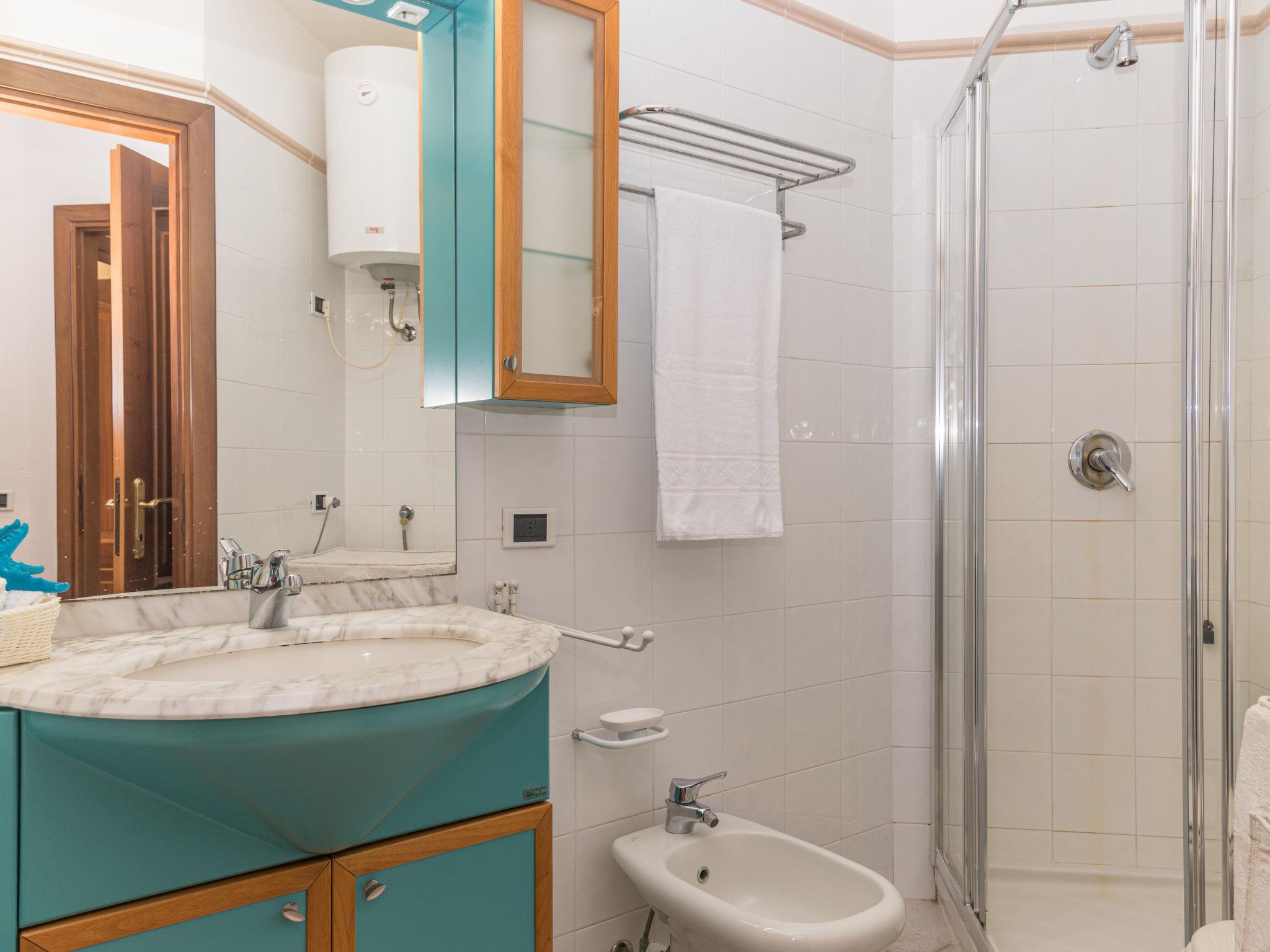"Agrifoglio", 3-room apartment 63 m2, on the ground floor. Bright, practical and beautiful furnishings: living/dining room with 1 double sofabed and satellite TV. Exit to the terrace. 1 double bedroom. 1 room with 1 x 2 bunk beds. Exit to the terrace. Kitchenette (oven, dishwasher, 4 induction hot plates, 4 gas rings, microwave). 2 showers/WC. Air-conditioning, forced-air heating (extra). Terrace, small garden. Terrace furniture. Partial view of the sea and the countryside. Facilities: washing machine, iron, children's high chair, baby cot (extra), hair dryer. Parking (roofed, 1 car). Maximum 1 pet/ dog allowed. IT090083B4000E2141