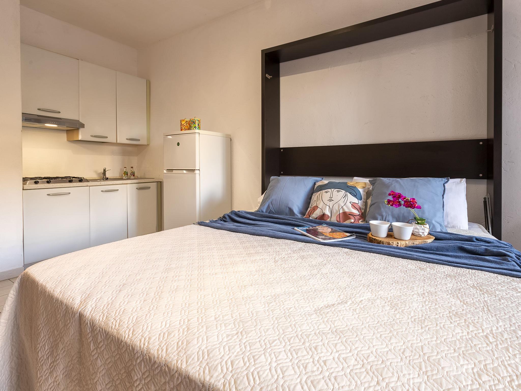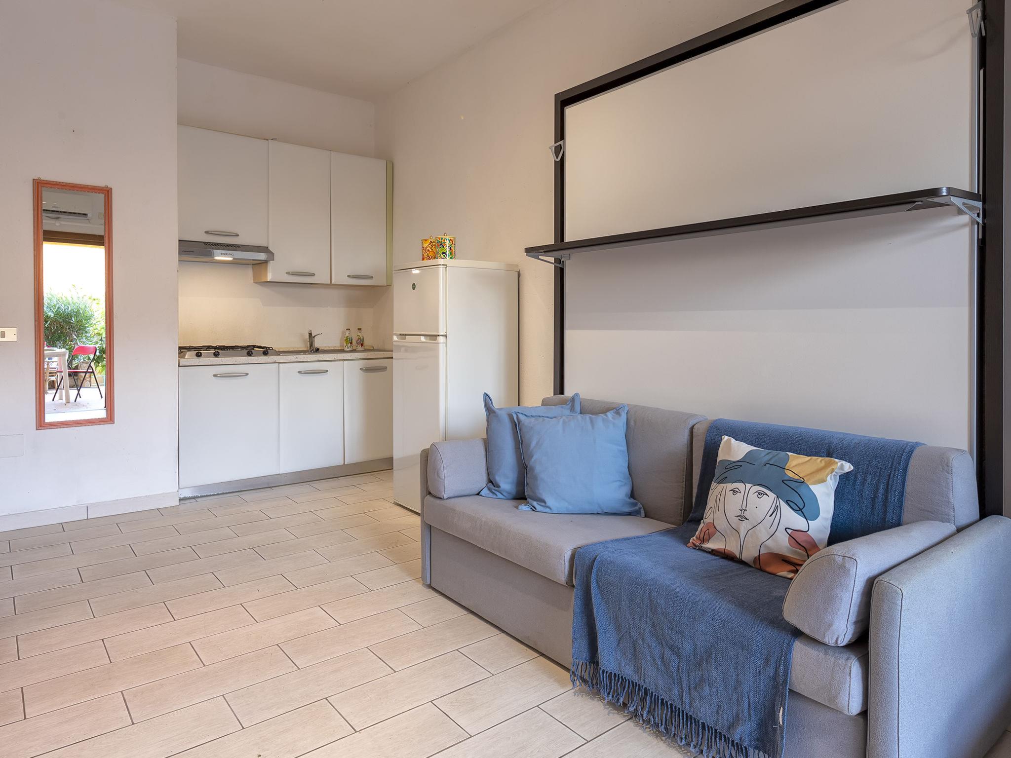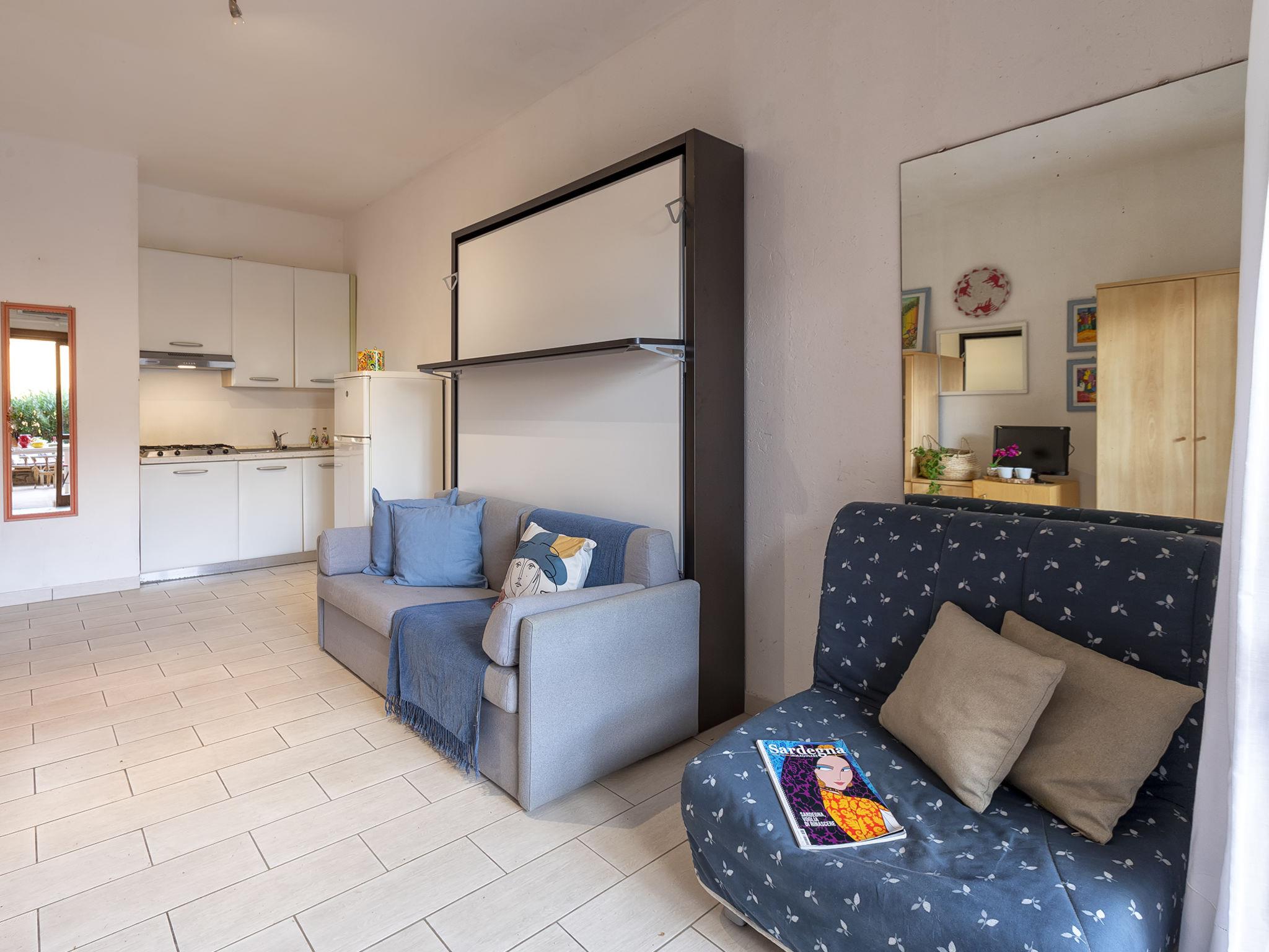 "D3 - 2 - Baia de Bahas", 1-room apartment 27 m2, on the ground floor. Simple and cosy furnishings: living/dining room with 1 double sofabed, dining table, TV, air conditioning and forced-air heating. Exit to the veranda. Small kitchenette (4 gas rings, toaster, kettle). Shower/bidet/WC. Air-conditioning, forced-air heating. Terrace 10 m2 partly roofed. Terrace furniture. Facilities: iron, hair dryer. Maximum 1 pet/ dog allowed. IT090083C2000R8285