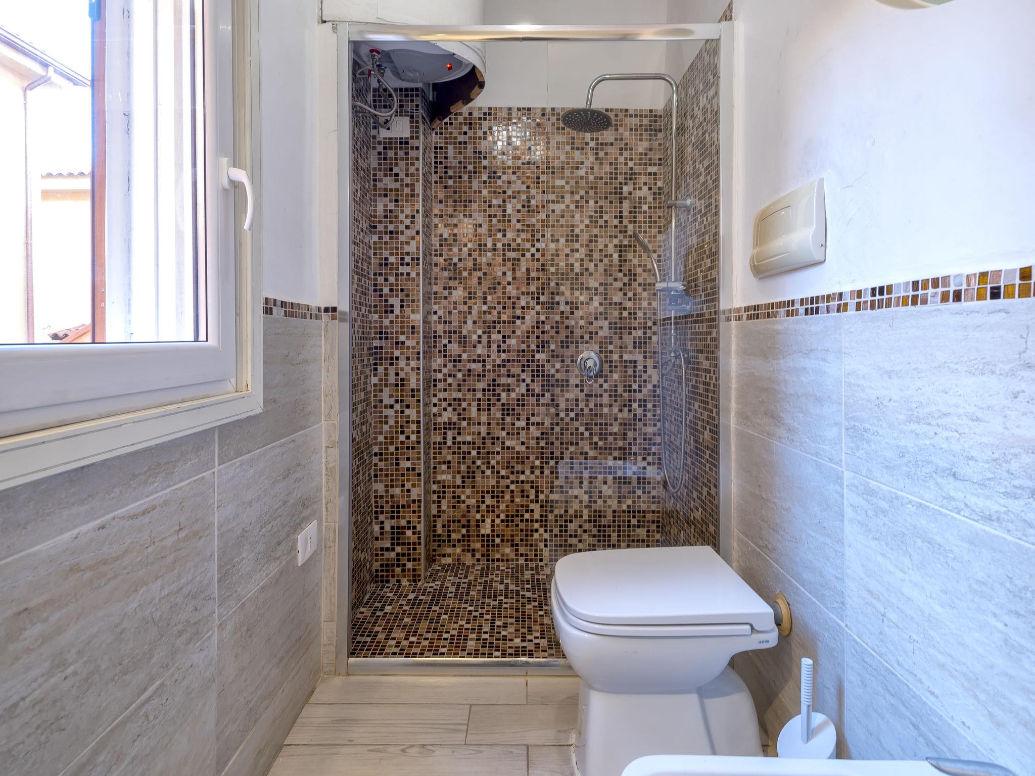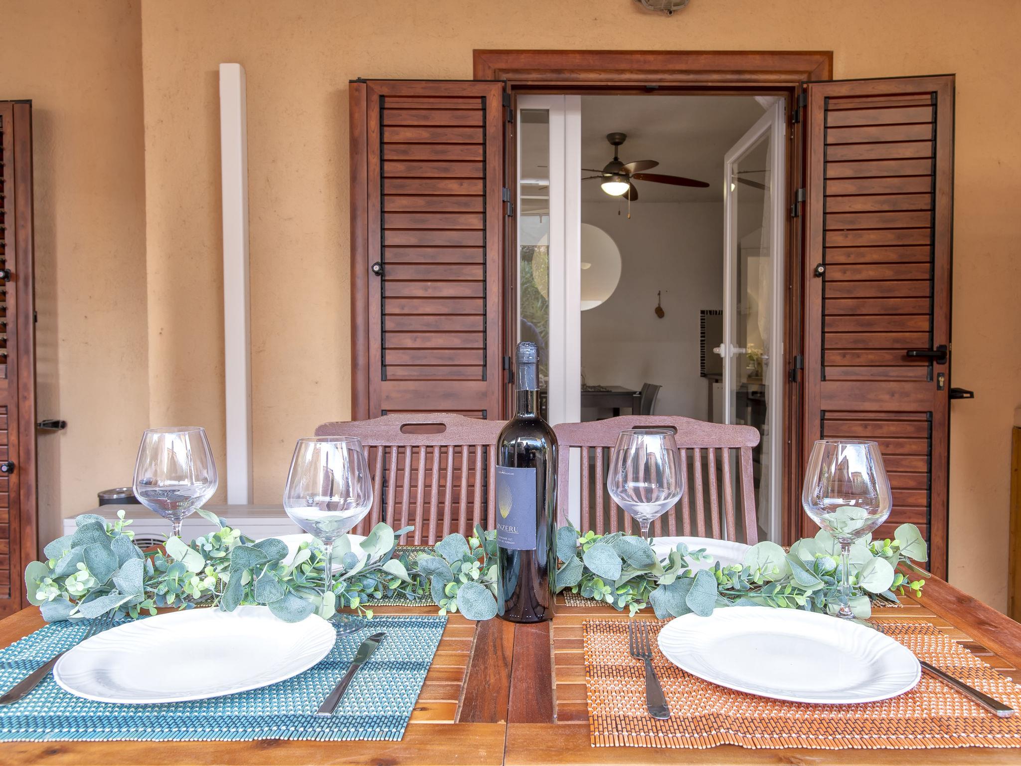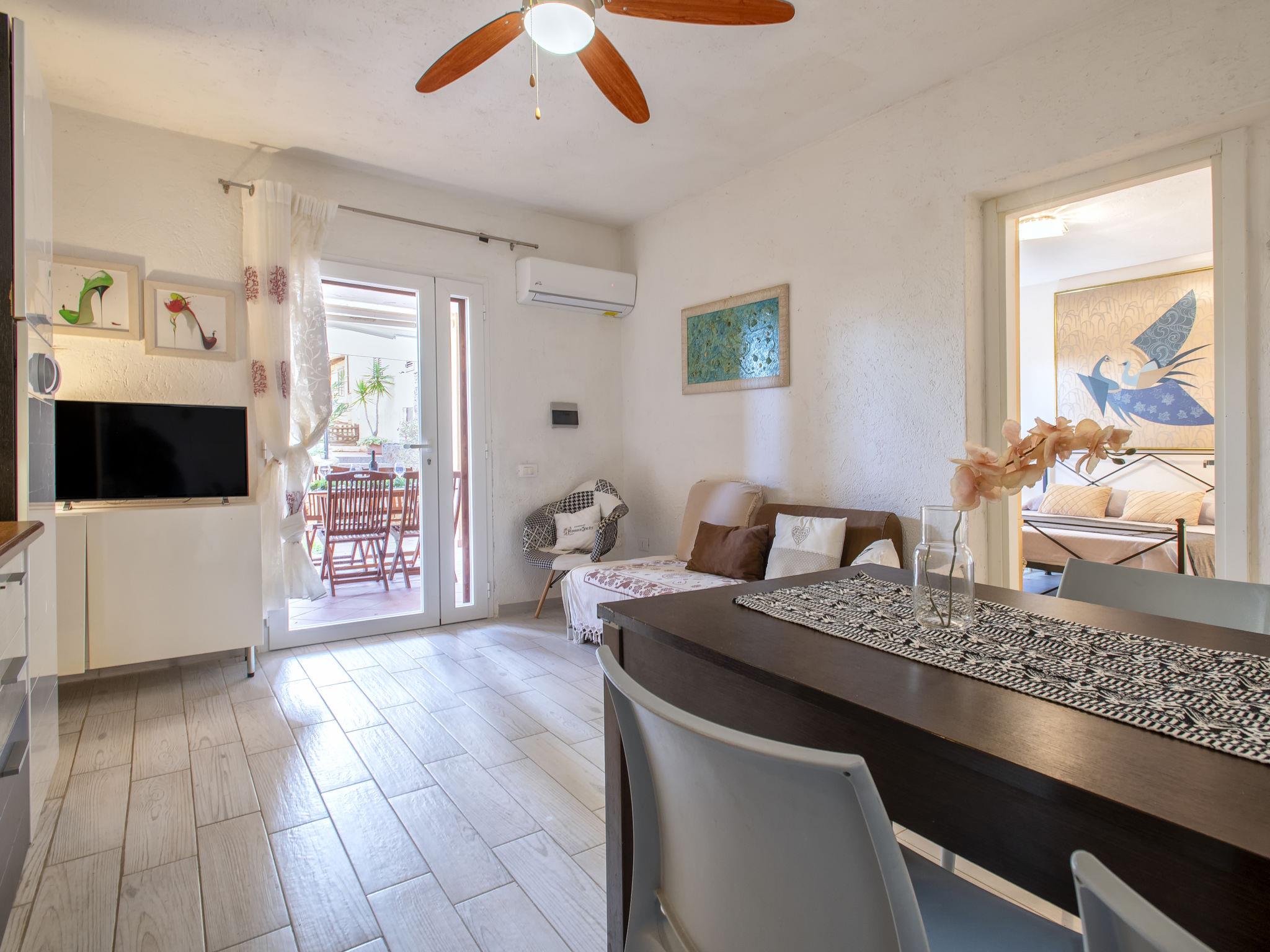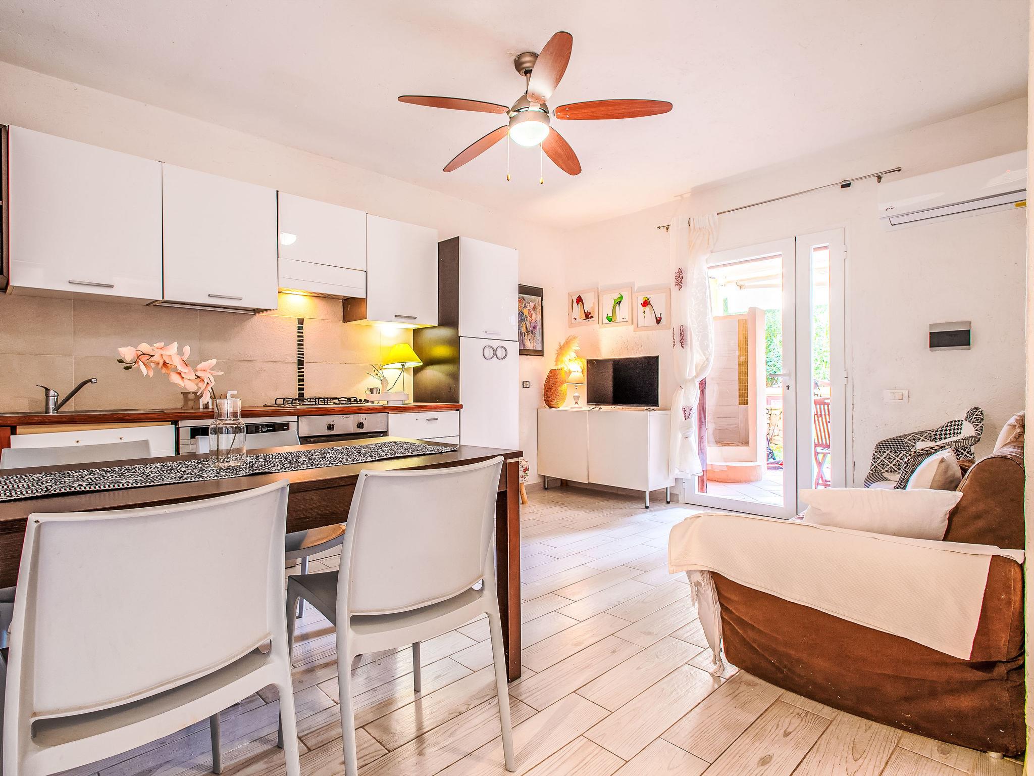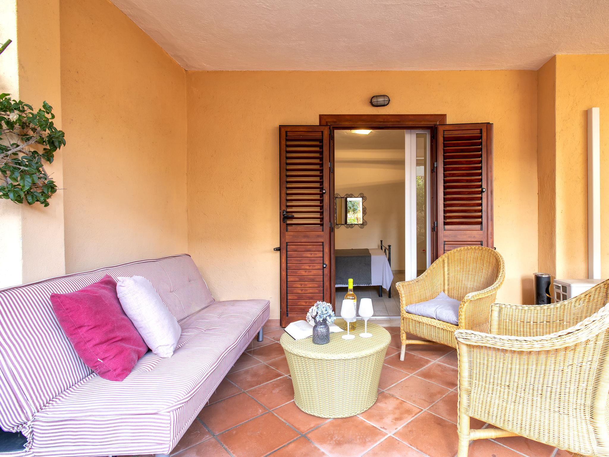 "D4 - I1, Baia de Bahas", 3-room apartment on the ground floor. Comfortable and cosy furnishings: living/dining room with 1 double sofabed (120 cm, length 180 cm), TV and fan. Exit to the terrace. 1 double bedroom. Exit to the terrace. 1 room with 2 beds. Kitchenette (oven, dishwasher, 4 gas rings, toaster, kettle). Shower/bidet/WC. Air-conditioning, forced-air heating. Heating not available in all rooms. Terrace roofed, garden. Terrace furniture. Facilities: washing machine, iron, hair dryer. Maximum 1 pet/ dog allowed. IT090063C2000R7898