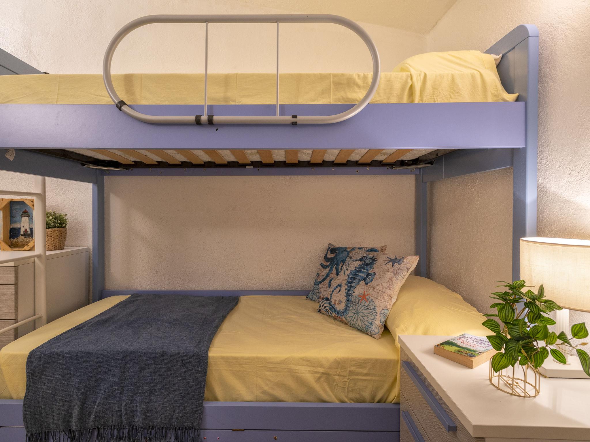 "0/1/M - Marineledda", 4-room apartment 85 m2, on the ground floor. Comfortable and cosy furnishings: living/dining room with dining table and TV. Exit to the terrace. 1 double bedroom with air conditioning and forced-air heating. 1 room with 1 x 2 bunk beds, air conditioning and forced-air heating. 1 small room with 1 bed. Kitchenette (oven, dishwasher, 4 gas rings, toaster, kettle). Exit to the veranda. 2 showers/bidet/WC. Air-conditioning, forced-air heating. Heating not available in all rooms. Terrace roofed. Terrace furniture. Marvellous view of the sea. Facilities: washing machine, iron, hair dryer. Parking. Maximum 1 pet/ dog allowed. Please note: the washing machine for shared use with the other apartments in the building is located in the basement. IT090083B49LW4AY3K