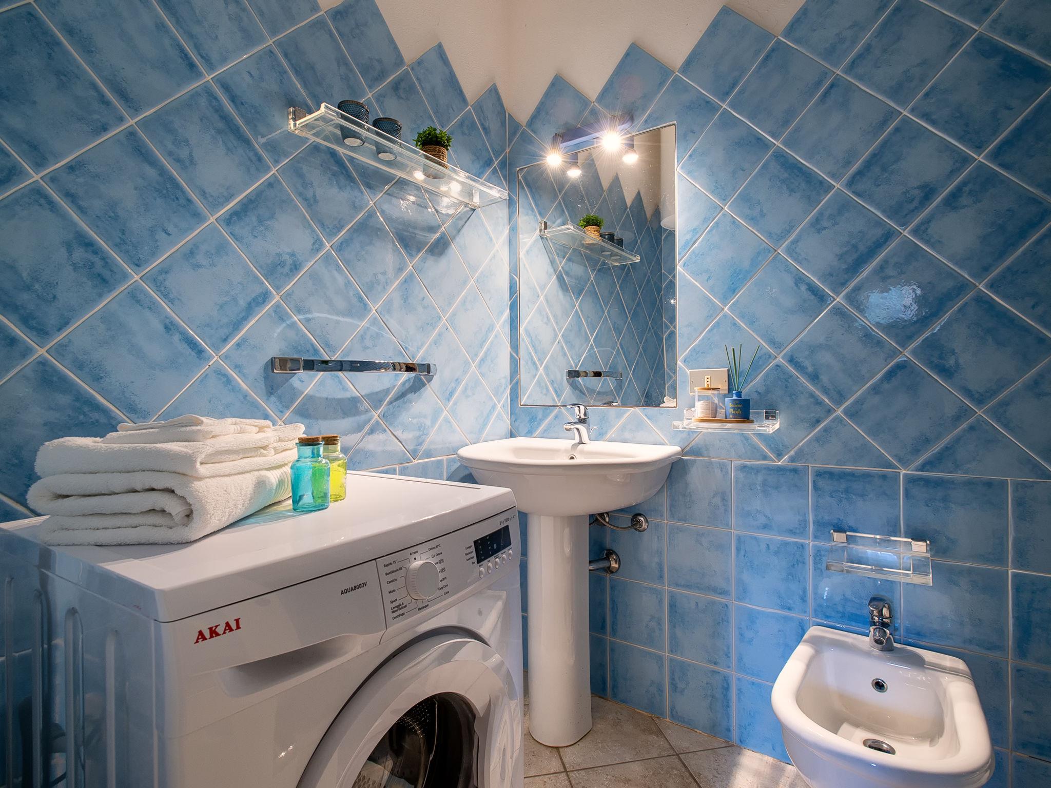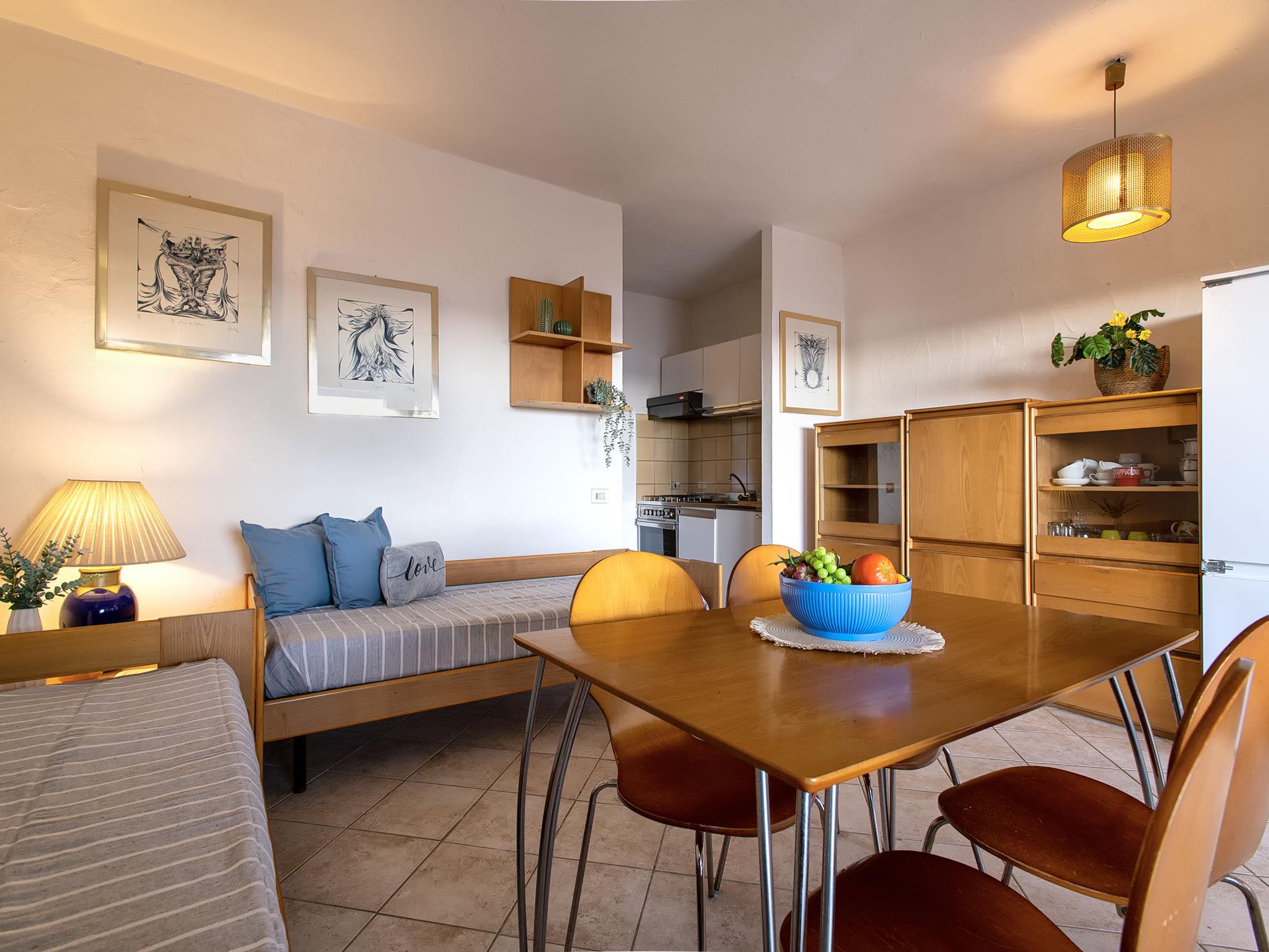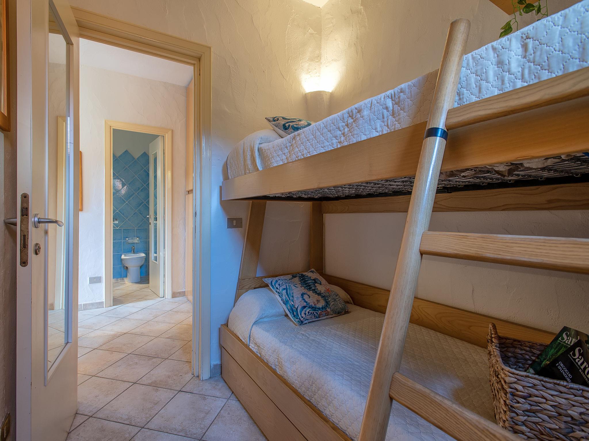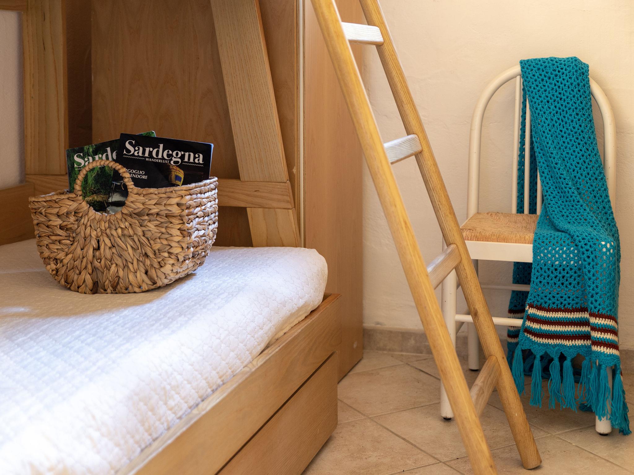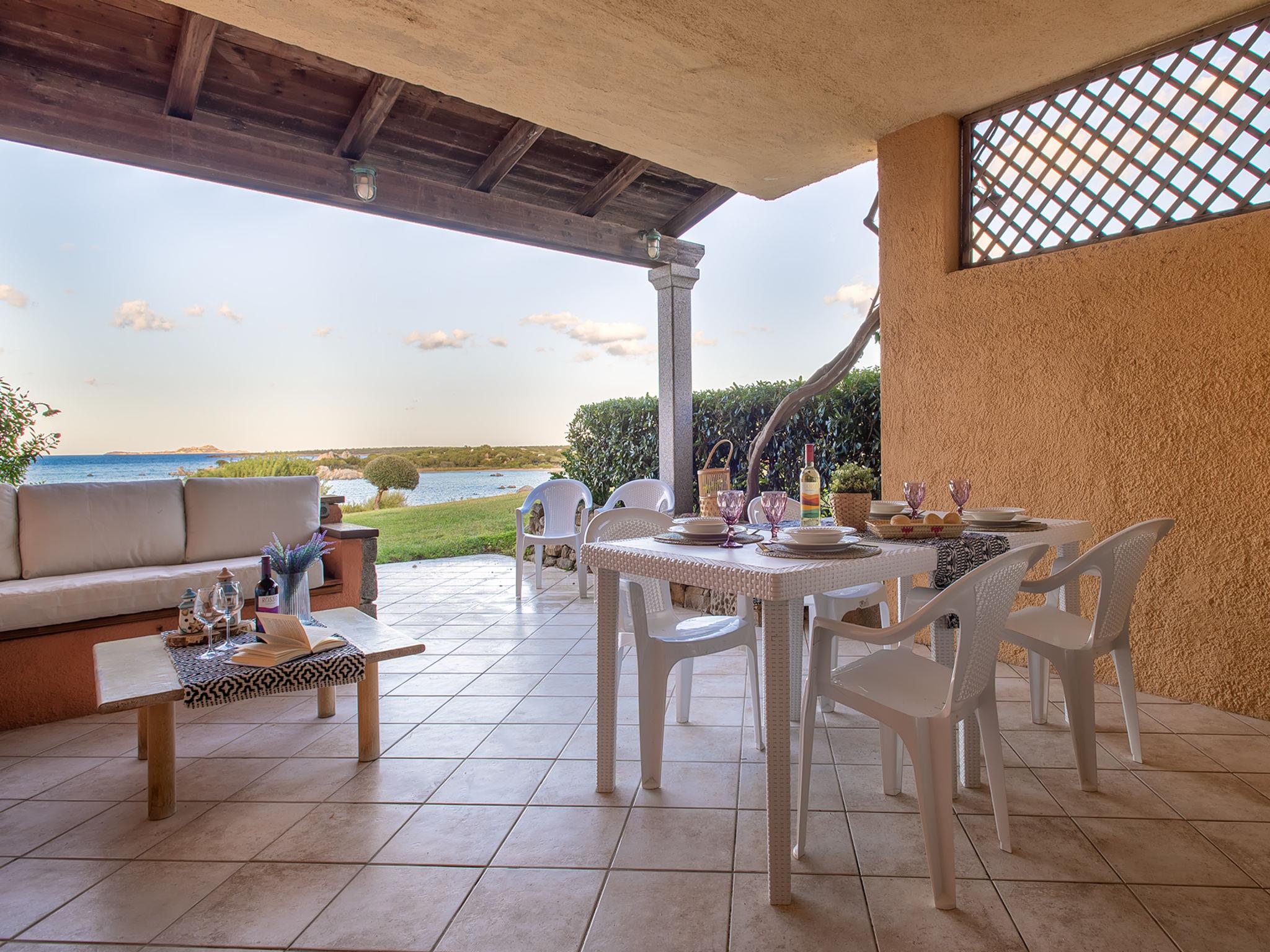 "B/0/3 - Marineledda", 3-room apartment 52 m2, on the ground floor. Simple and cosy furnishings: living/dining room with 2 beds, dining table, digital TV, air conditioning and forced-air heating. Exit to the terrace. 1 double bedroom. 1 room with 1 x 2 bunk beds. Kitchenette (oven, 3 gas rings, toaster, kettle). Shower/bidet/WC. Air-conditioning, forced-air heating. Heating not available in all rooms. Large terrace 11 m2 partly roofed, garden. Terrace furniture. Marvellous view of the sea and the garden. Facilities: washing machine, iron, hair dryer. Parking space n B/0/3. Maximum 1 pet/ dog allowed. IT090083B4000R7795