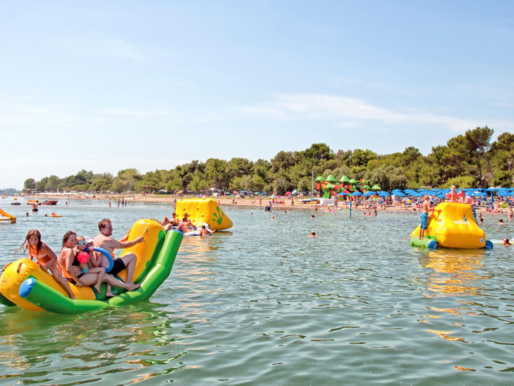 Grado: Very large, child friendly holiday village "Camping Europa". 5 km from the centre of Grado, 50 km from the centre of Trieste, 130 km from the centre of Venezia, 20 m from the sea, direct access to the beach. For shared use: property 22 ha (fenced) with plants and trees, swimming pool (1'500 m2, seasonal availability: 23.Apr. - 27.Sep.). WC in the pool area, children's pool, slide, outdoor shower, tennis (1 x hard court), floodlit (extra), table tennis, beach volleyball, children's playground. In the complex: restaurant, bar, bistro, internet access, WiFi, shopping facilities, kiosk, washing machine, tumble dryer (for shared use, extra). Bus stop 500 m, railway station "Airport Station Trieste" 20 km. Nearby attractions: Castello di Duino 25 km, Riserva Naturale della Foce dell'Isonzo 14 km, Aquileia 16 km, Castello Miramare 40 km, Redipuglia 20 km, Collio 35 km. Please note: entertainment. Suitable for families. The electronic watch (included in the rental price) is the resort's exclusive means of payment and can be loaded online or in cash/by credit card during checkout hours. Beach service included (1 umbrella + 2 sunbeds per unit, for the whole season). Animation (whole season).