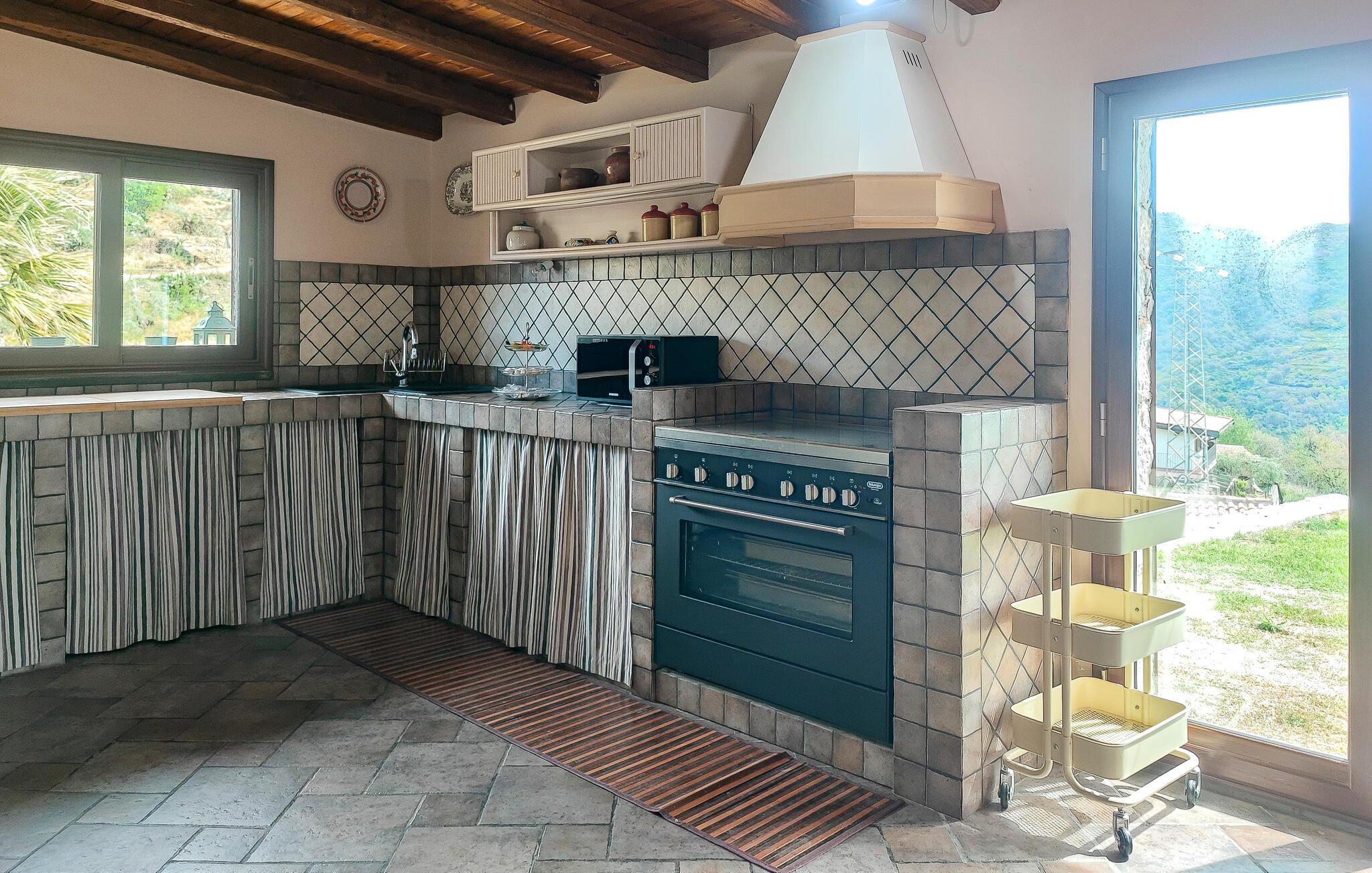 Velkommen til dette komfortable feriehuset, som har en ideell beliggenhet for et avslappende opphold på Sicilia. Denne sjarmerende ferieboligen tilbyr familien et avslappende miljø omgitt av grønt landskap. Nyt den autentiske atmosfæren og roen i det vakre steinhuset, som har alle rommene i én etasje og et åpent galleri som gir deg et ekstra soverom. Den overbygde terrassen ligger i forlengelsen av stuen, og om kvelden kan du gå inn igjen for å se en film eller tenne bål. Men du kan også nyte de lune kveldstimene ute, nyte den fantastiske utsikten og prate til langt på kveld.