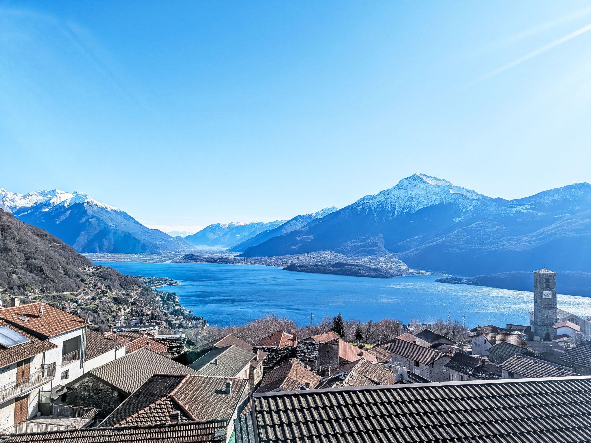 Beautiful, cosy "rustico" cottage "Il Nibbio", 2 storeys, detached. In the hamlet Brenzio 4.5 km from the centre of Gravedona, 51 km from the centre of Como, 55 km from the centre of Lecco, in a secluded, sunny, elevated position on a slope, 4.5 km from the lake, in the countryside. Private: natural state property, terraced garden with lawn and trees. Heating available only from 15.Oct. - 30.Apr.. 3 km long narrow motor access (mountain road). 50 m footpath to the house. Public parking 50 m on the road. Shop 2.7 km, supermarket 3.2 km, restaurant, bar 200 m, bus stop "C10 Como-Menaggio-Colico" 3 km, railway station "Colico" 21 km, sandy beach "Serenella" 4.5 km, grass beach "Lido di Gravedona" 4.5 km. Marina 4.5 km, golf course (18 hole) 26 km, surf school 4.5 km, sailing school 4.5 km. Nearby attractions: Palazzo Gallio-Gravedona, Museo della Barca Lariana-Porlezza, Lake Como Adventure Park, Villa Carlotta-Tremezzo, Menaggio, Bellagio. Well-known lakes can easily be reached: Lago di Mezzola. Hiking paths: Livo-Crotto Dangri, Parco Valle Albano. Please note: car recommended.