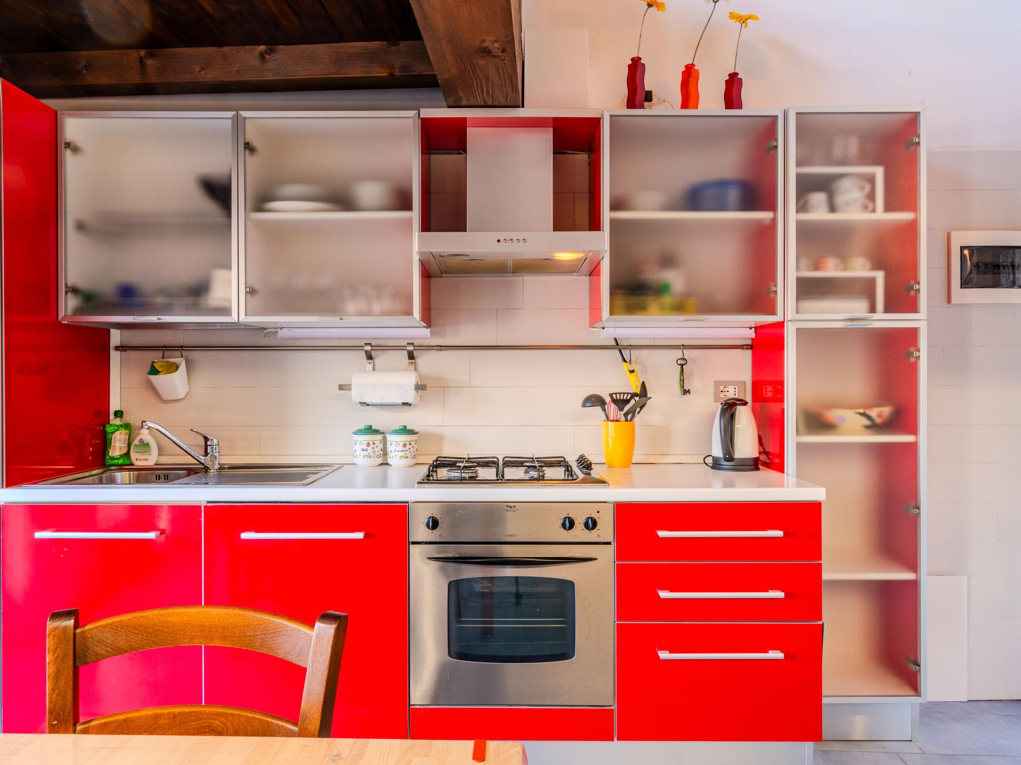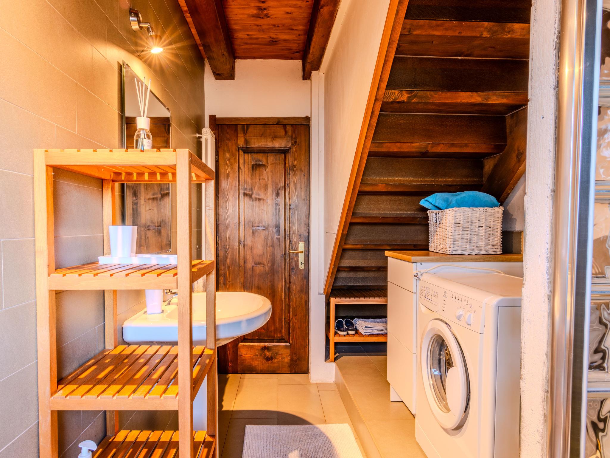 3-room house 70 m2 on 2 levels. Beautiful and tasteful furnishings: open living/dining room with Scandinavian wood stove (only for decoration), dining table and TV (flat screen). Exit to the garden, to the balcony, to the terrace. Open gallery. Open kitchen (oven, dishwasher, Gas stove, 4 gas rings, toaster, kettle, microwave, freezer). On the lower ground floor: 1 room with 1 x 2 bunk beds, 1 double bed. Exit to the garden. Shower/bidet/WC. Gas heating. Heating available only from 15.10. to 30.04. Natural stone floors. Small balcony, large terrace, garden. Terrace furniture, deck chairs (2). Marvellous panoramic view of the lake, the mountains and the resort. Facilities: washing machine, children's high chair, hair dryer. Internet (WiFi, free). Please note: non-smoking house, no parking. Maximum 1 pet/ dog allowed. Smoke alarm, fire extinguisher. IT013249C2G3DY7FHC