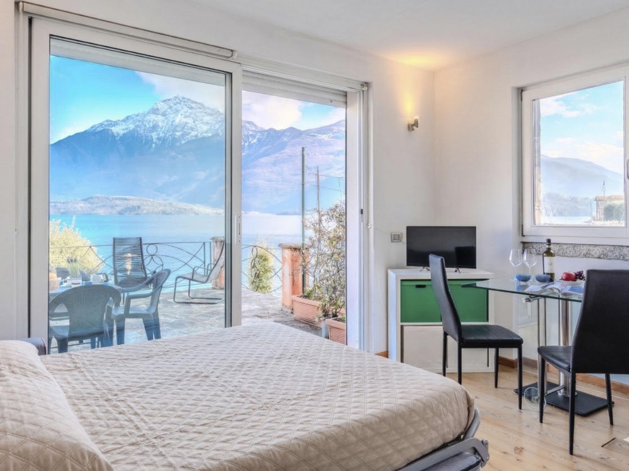 "La Terrazza sul Lago", 1-room apartment 35 m2 on 1st floor. Bright, very comfortable and cosy furnishings: living/sleeping room with 1 double sofabed (160 cm, length 190 cm), TV. Exit to the terrace. Kitchenette (2 induction hot plates, kettle, microwave, freezer). Shower/WC. Gas heating, air-conditioning. Heating available only from 15.10. to 15.04. Wooden floors. Large terrace. Terrace furniture, sitting area. Very beautiful panoramic view of the lake and the mountains. Facilities: hair dryer. Internet (WiFi, free). Please note: non-smokers only. Smoke alarm, fire extinguisher. IT013249C2Z3KW8ZCX