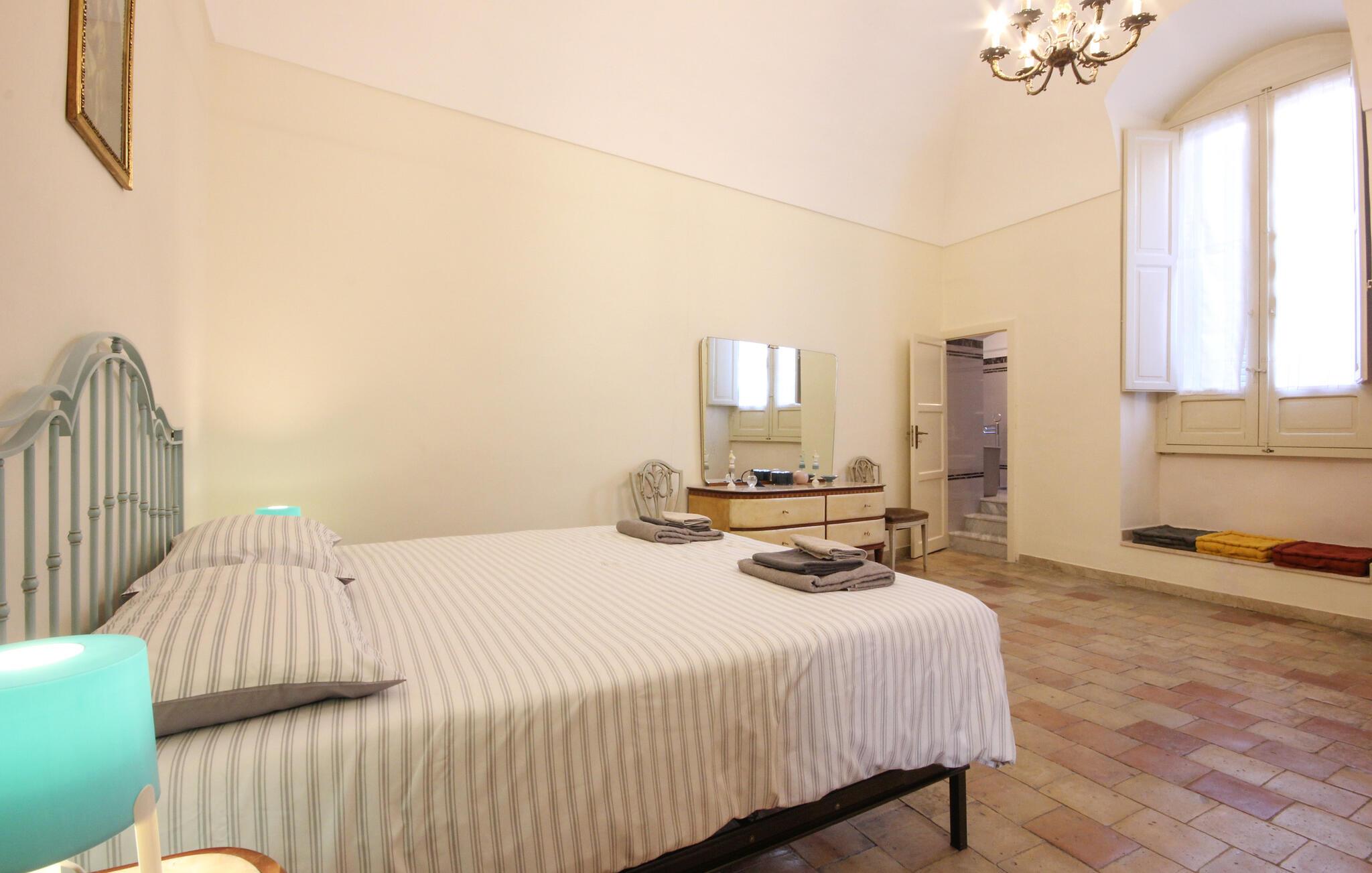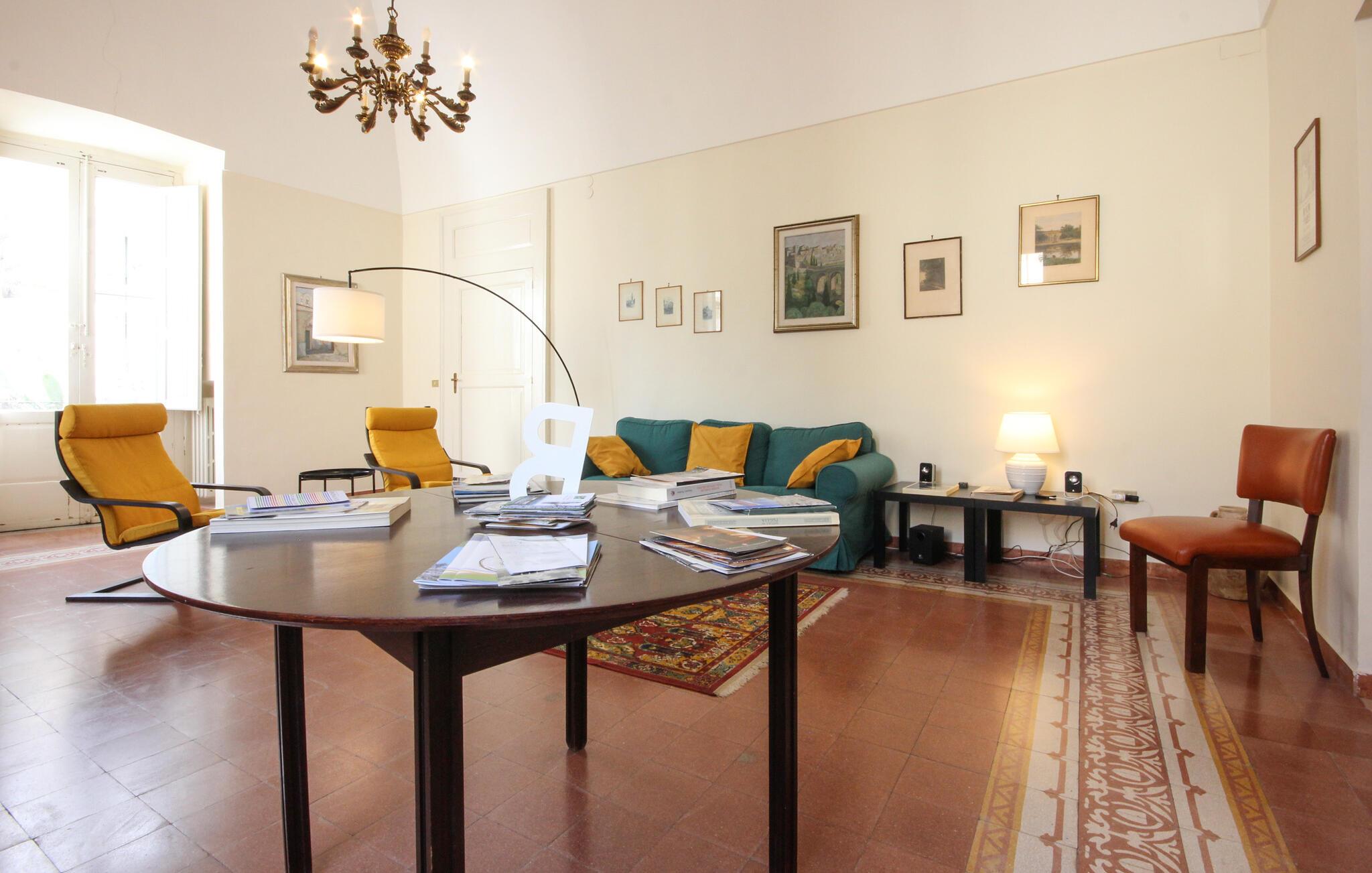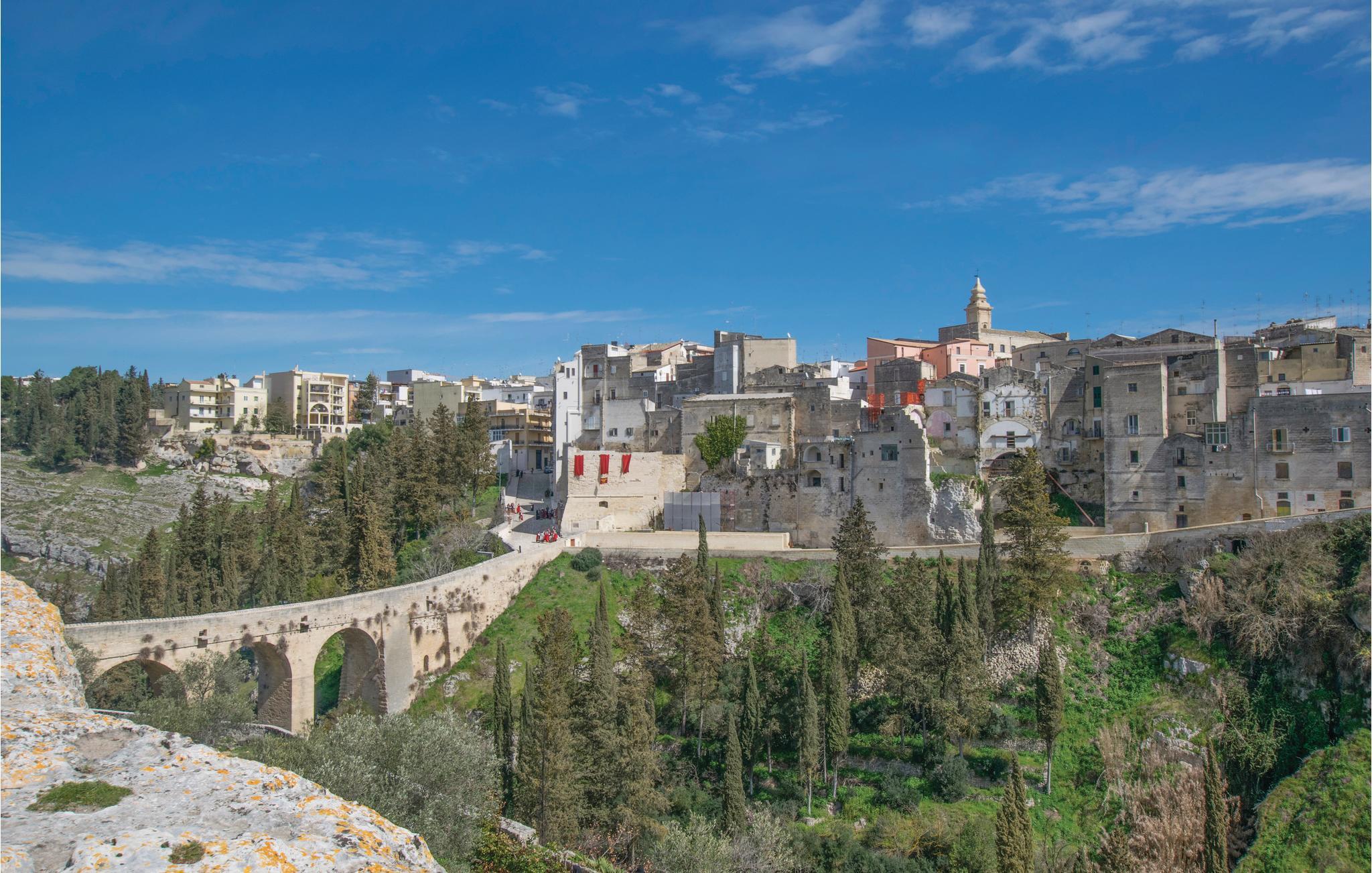 Romslig leilighet i det historiske sentrum av Gravina in Puglia, i provinsen Bari, en gammel by rik på monumenter som Castello Svevo, palazzoer og sjarmerende kirker og med flere arkeologiske utgravninger. Ikke gå glipp av et besøk til den gamle akveduktbroen som forbinder de to breddene av elven Gravina, rik på huler som har fungert som boliger. Fascinerende er den underjordiske Gravina, et spektakulært nettverk av tunneler, kjellere og akvedukter i fjellet. I den mest moderne delen av byen finnes alle tjenester, alle slags butikker, mange restauranter hvor du kan nyte områdets kulinariske spesialiteter og gode viner. Gravina in Puglia ligger i Alta Murgia nasjonalpark, et naturreservat rikt på flora og fauna, spesielt interessant for fuglekikkere. For sykkelelskere er det forskjellige ruter. Leiligheten er også et godt utgangspunkt for å besøke forskjellige nabobyer som Altamura (15 km) og Matera (30 km) med sine berømte Sassi, grotter i klippene.