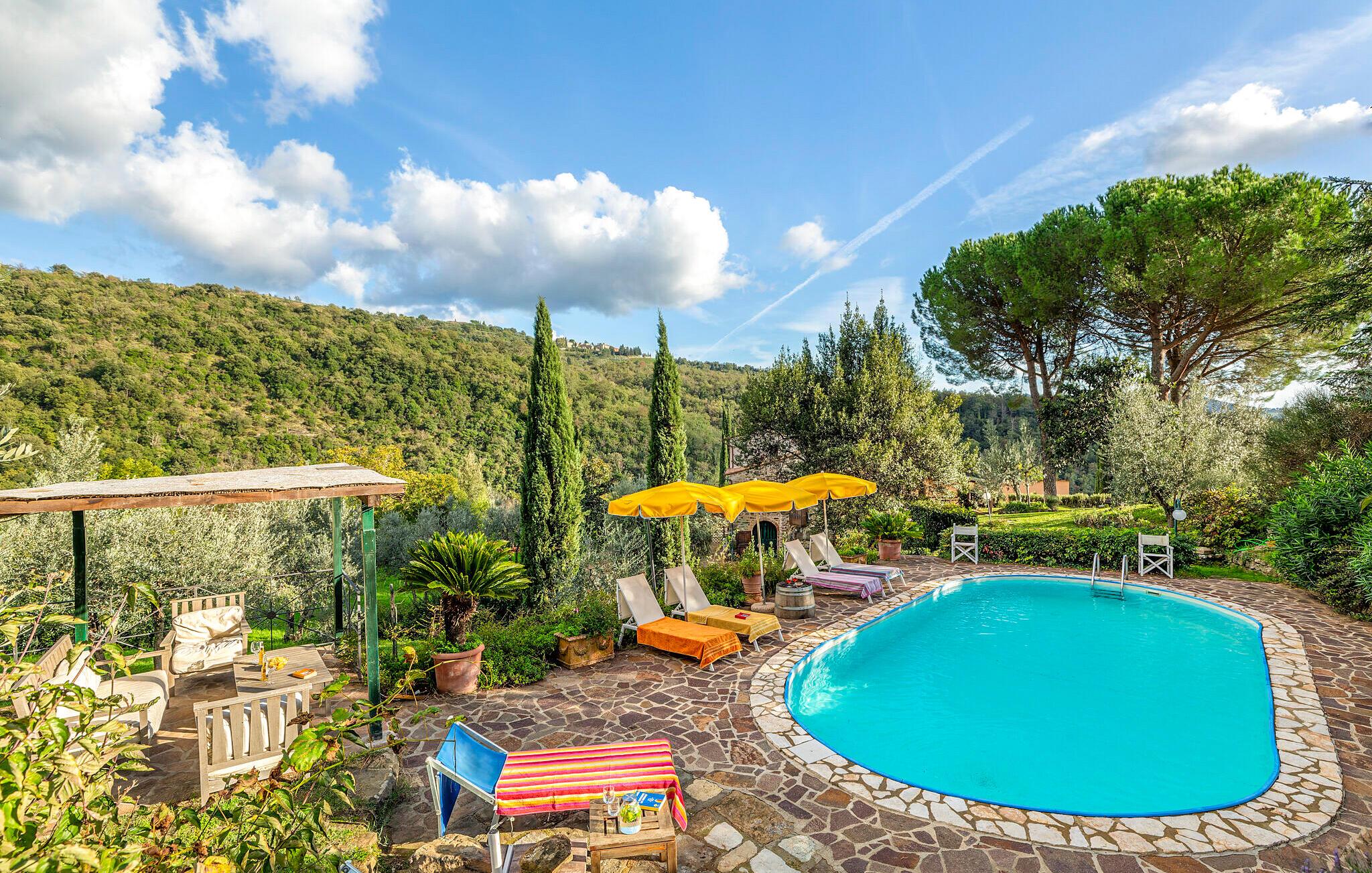 Dette store og typiske steinhuset ønsker deg velkommen med et basseng i den fantastiske Chianti-regionen.
