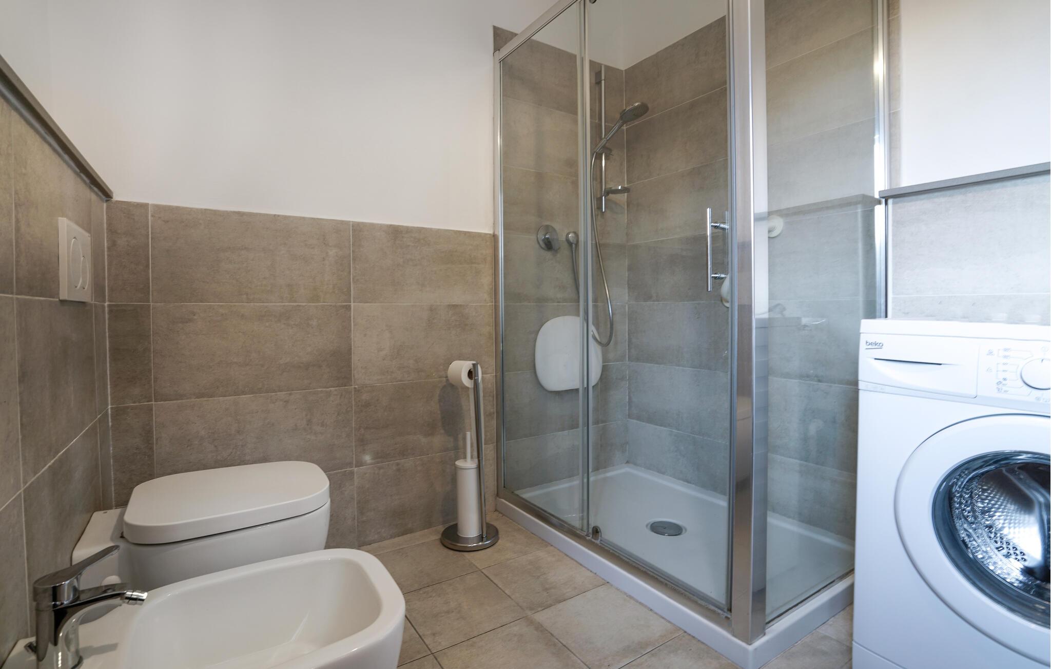 - WC med varmt og kaldt vann, Dusj