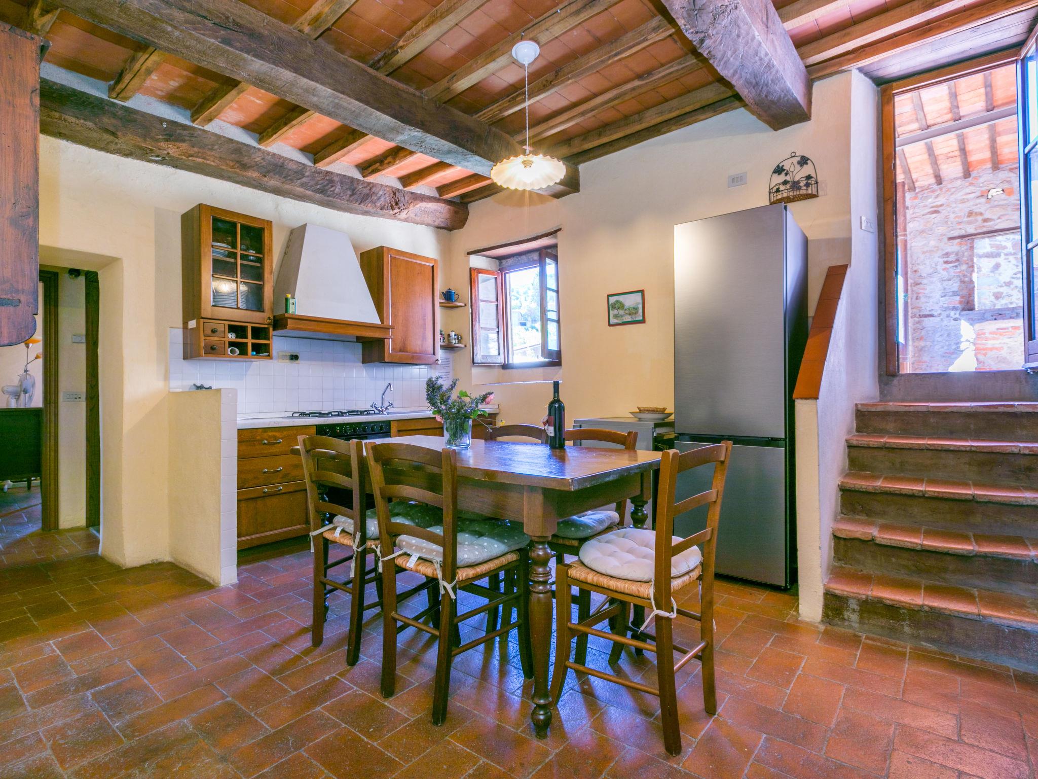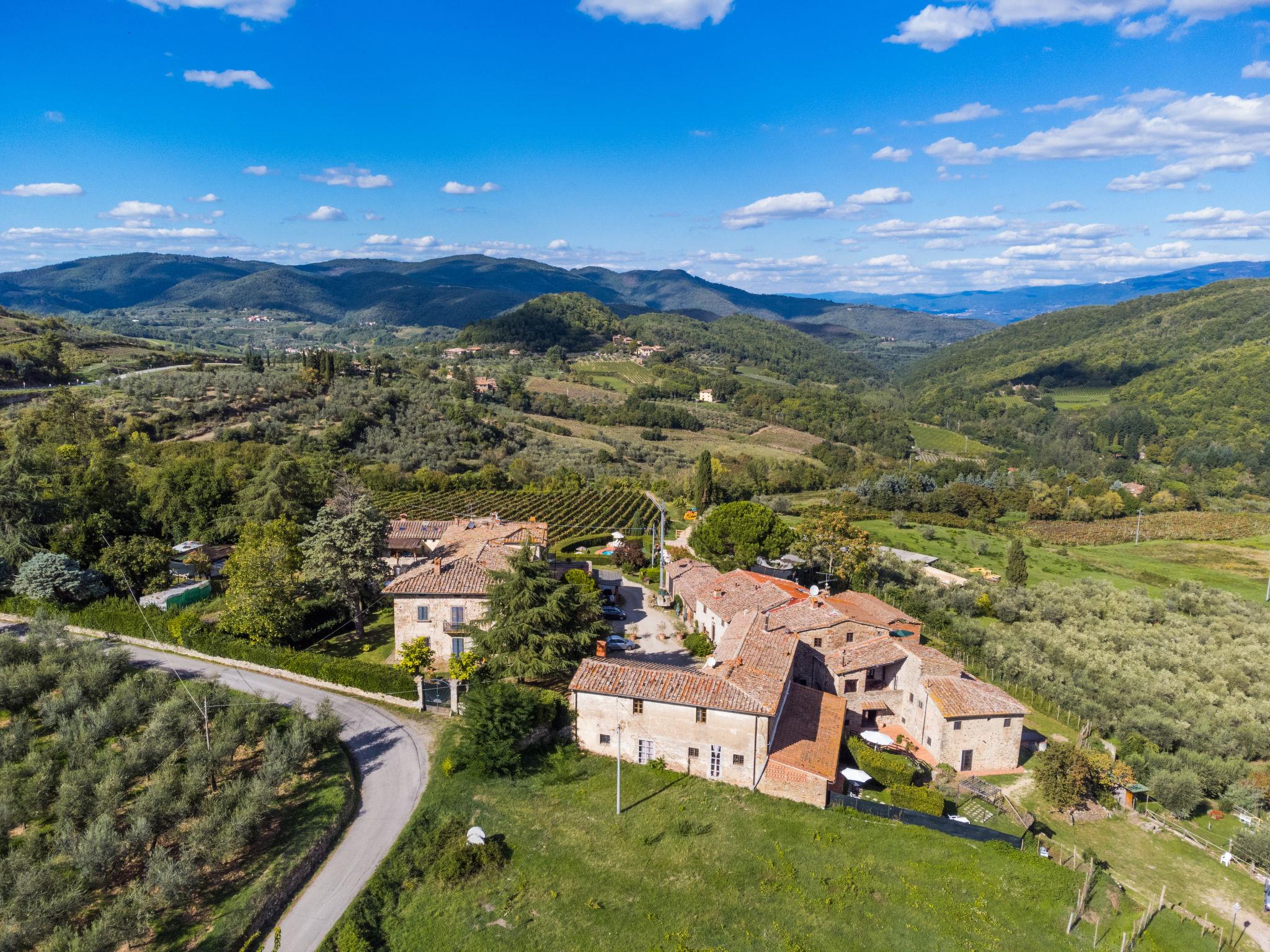 Large, rustic on a vinyard country house "Fattoria l'Ottavo", 400 m a.s.l., from the 18th century, renovated, surrounded by meadows and vineyards. 3 houses in the residence. 9 apartments in the residence. In the district of Lucolena in Chianti 12 km from the centre of Greve in Chianti, 13 m from the centre of Figline Valdarno, in a secluded, sunny, elevated position, in the countryside. For shared use: property 40 ha, natural garden, meadow, swimming pool fenced (8 x 4 m, seasonal availability: 01.May. - 15.Oct. pool opening hours: 08:00-20:00). Outdoor shower, terrace, garden furniture, barbecue, pool maintenance by the owner/gardener. In the house: reception, restaurant, breakfast room, WiFi, washing machine (for shared use). Linen change weekly. Breakfast possible on request (extra). 200 m long narrow motor access to the grounds. Parking on the premises. Shop 700 m, grocery 700 m, supermarket 12 km, shopping centre 13 km, restaurant 1 km, bar 700 m, bakery 700 m, bicycle rental 12 km, bus stop "Lucolena" 700 m, railway station "Figline Valdarno" 13 km, sandy beach "Calambrone" 110 km, indoor swimming pool 13 km, lake Trasimeno 114 km. Golf course (18 hole) 20 km, tennis 12 km, riding stable 2 km, walking paths from the house 100 m. Nearby attractions: Firenze 37 km, Siena 50 km, Arezzo 54 km, San Gimignano 65 km. Please note: car recommended. Reception open 10:00-17:00 hrs. Suitable for families, baby equipment (included). Suitable for events. Local sale of farm products. Please note: the owner lives on the same property. All houses/apartments are individually designed/furnished.