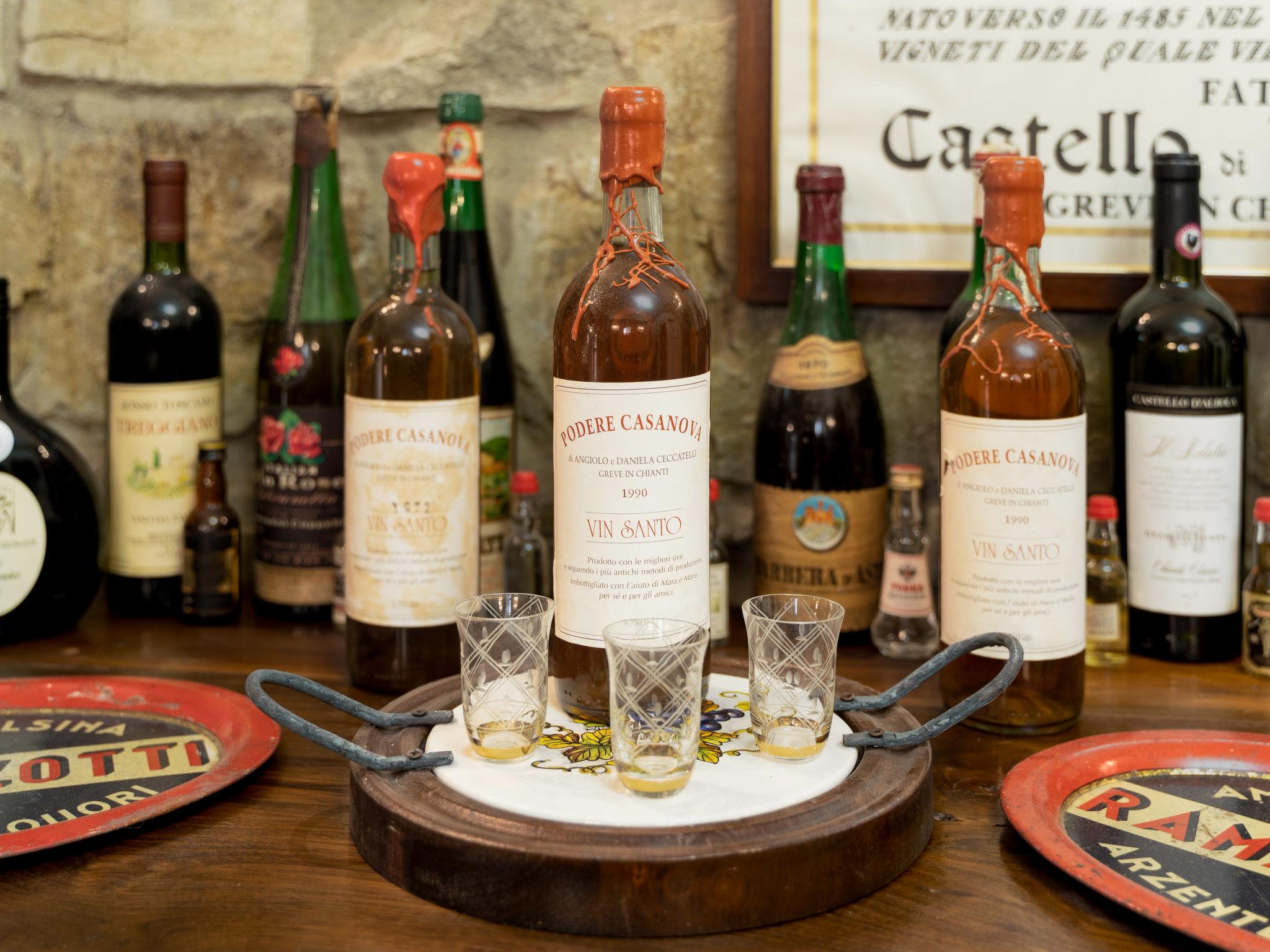 Agriturismo on a vinyard "Podere Casanova" from the 18th century, surrounded by meadows, fields and vineyards. 3 apartments in the residence. 800 m from the centre of Greve in Chianti, on the outskirts, in a sunny position. For shared use: natural state property 5'000 m2, lawn and trees, parking at the house on the premises. Shop, grocery 800 m, supermarket 1 km, restaurant, bar, bakery 800 m, café 800 m, bicycle rental, 10 minute walk to the centre, bus stop 100 m, sandy beach "Cecina Mare" 100 km, outdoor swimming pool 2 km. Golf course (18 hole) 15 km, tennis 1.5 km, walking paths from the house 100 m. Nearby attractions: Panzano in Chianti 5 km, Radda in Chianti 19 km, Firenze 35 km, San Gimignano 38 km, Siena 46 km. Please note: baby equipment (included). Local sale of farm products. Owner lives in separate semi-detached house. All houses/apartments are individually designed/furnished.