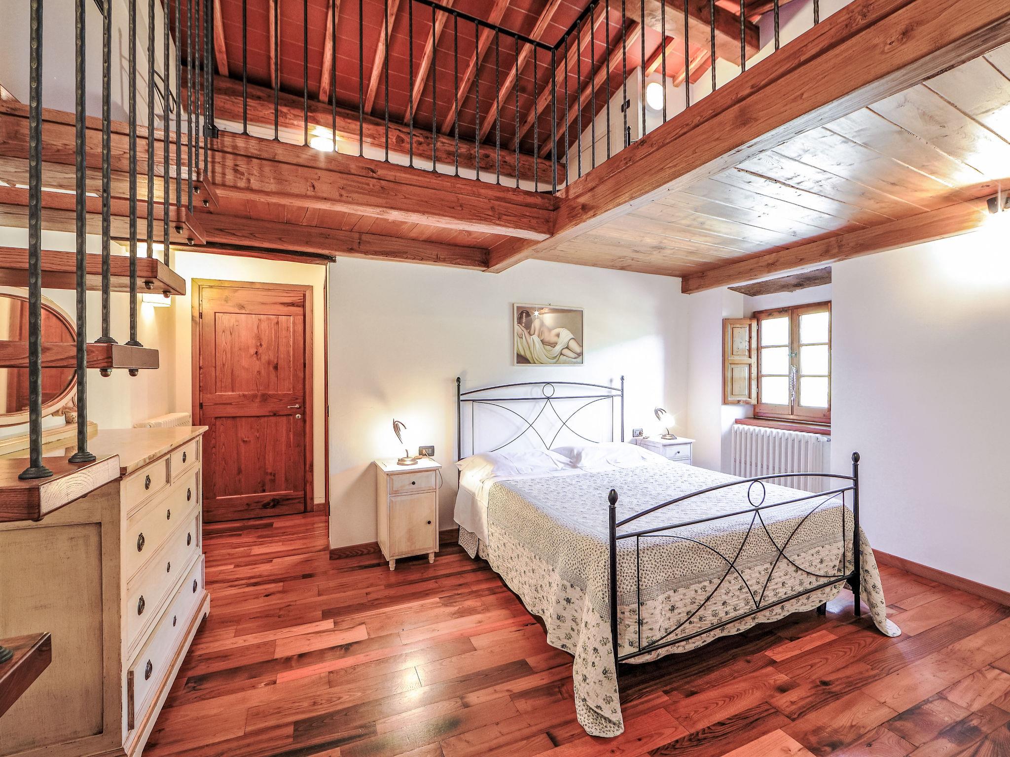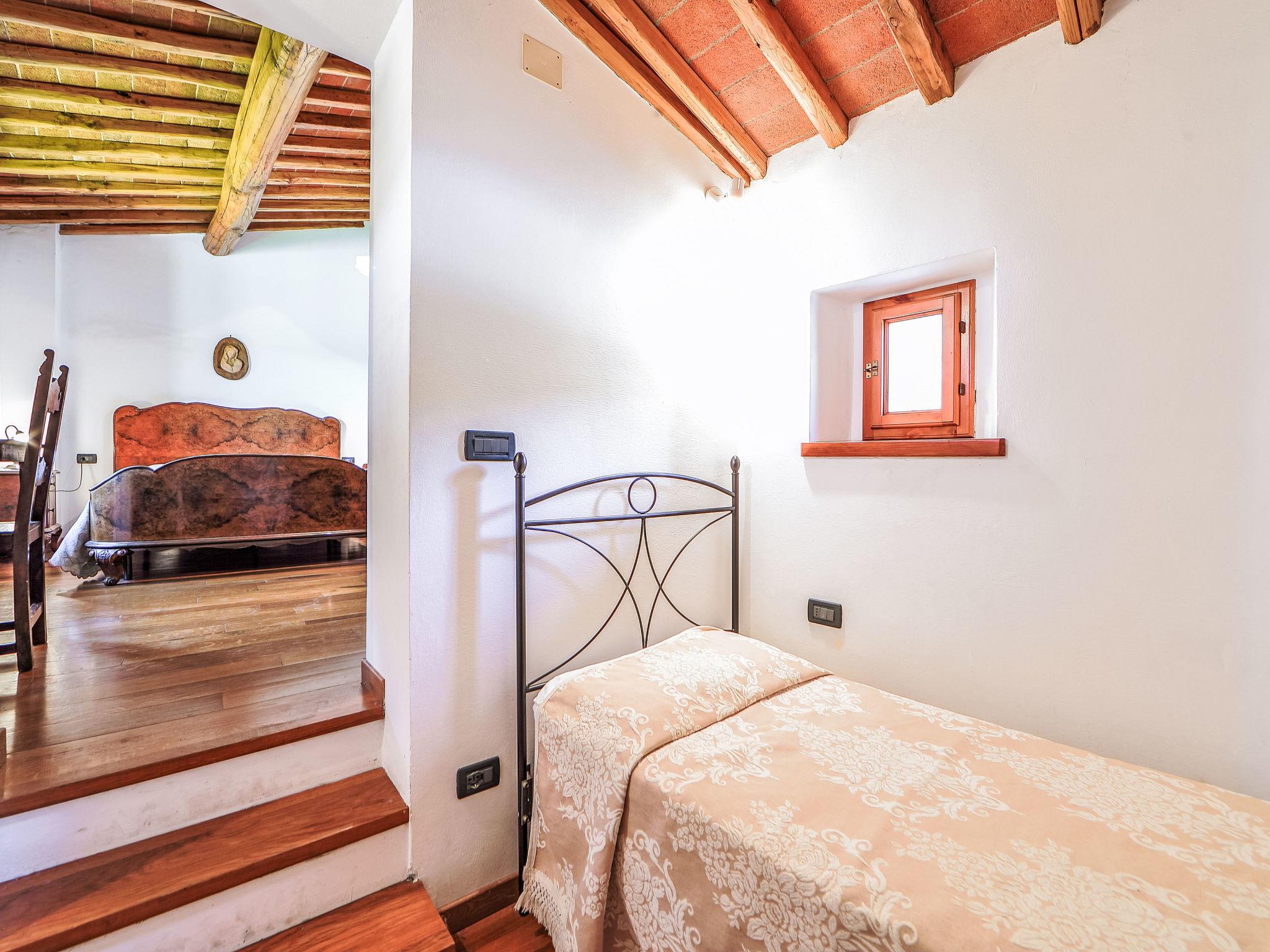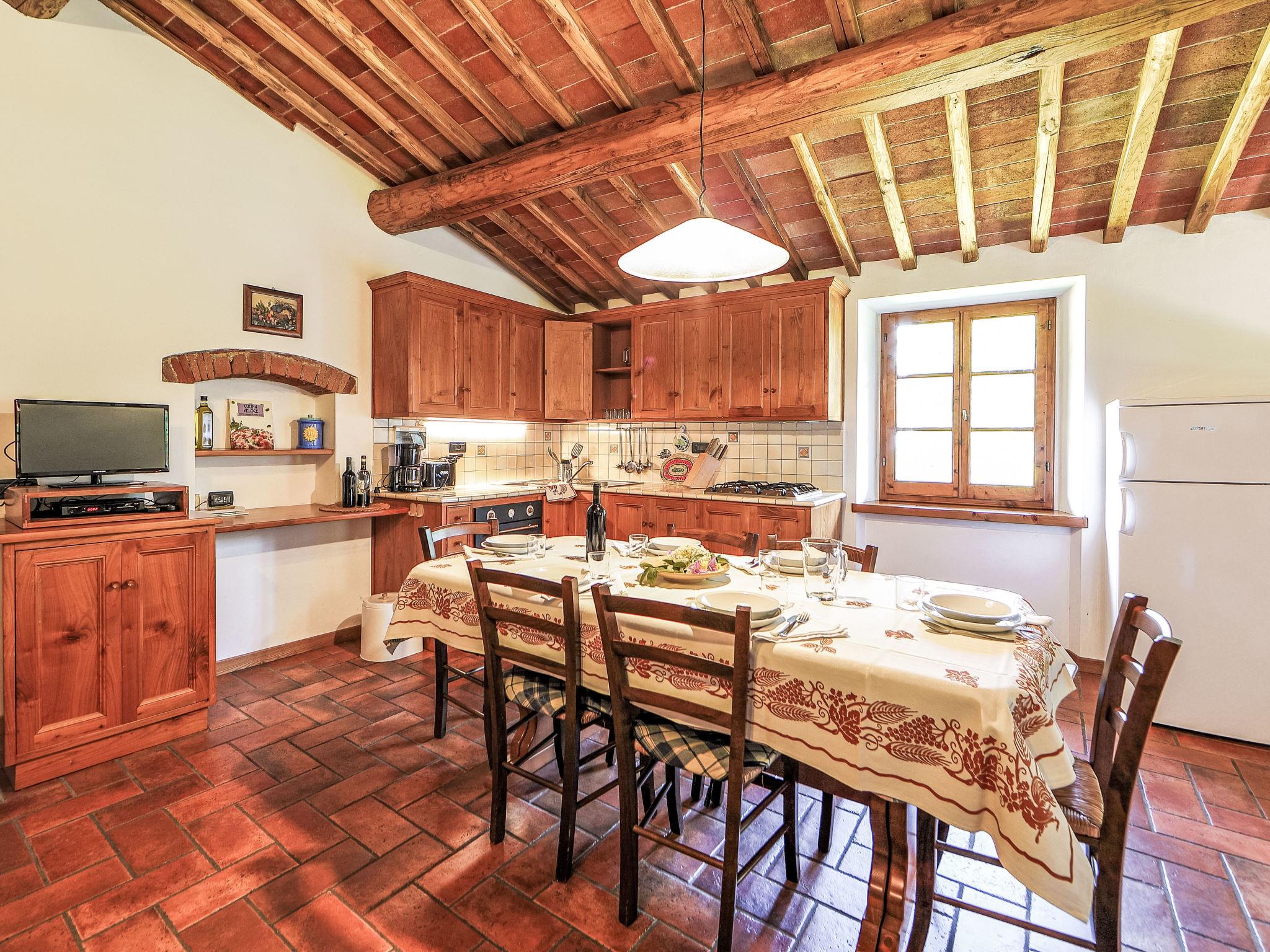 "Il Poggio", 8-room semi-detached house 160 m2 on 2 levels, on the upper ground floor. Rustic and tasteful furnishings: living/dining room with open-hearth fireplace and satellite TV. 1 room with 2 beds. 1 double bedroom. Open gallery, ceiling height 100 - 190 cm with 2 beds. Living/dining room with open-hearth fireplace and satellite TV (flat screen). Exit to the loggia. 1 large double bedroom. 1 double bedroom. Kitchenette (4 hot plates, oven, dishwasher, kettle, freezer). 4 showers/bidet/WC. Heating. Upper floor: 1 double bedroom. Shower/bidet/WC. Garden. Terrace furniture. Panoramic view of the countryside. Facilities: washing machine. Internet (WiFi). Maximum 1 pet/ dog allowed. No internal connecting door between the separated properties. IT048021C2KGT7DHNB