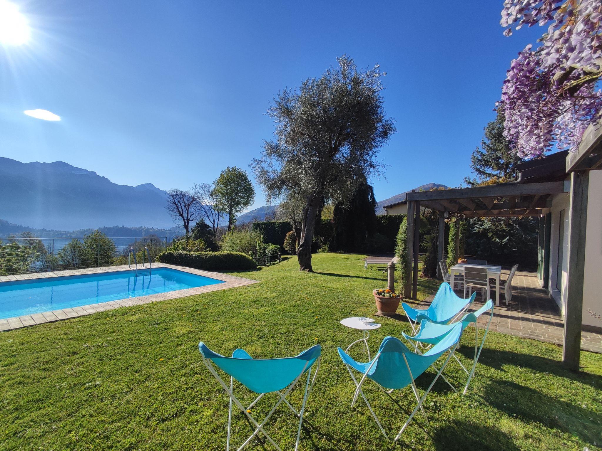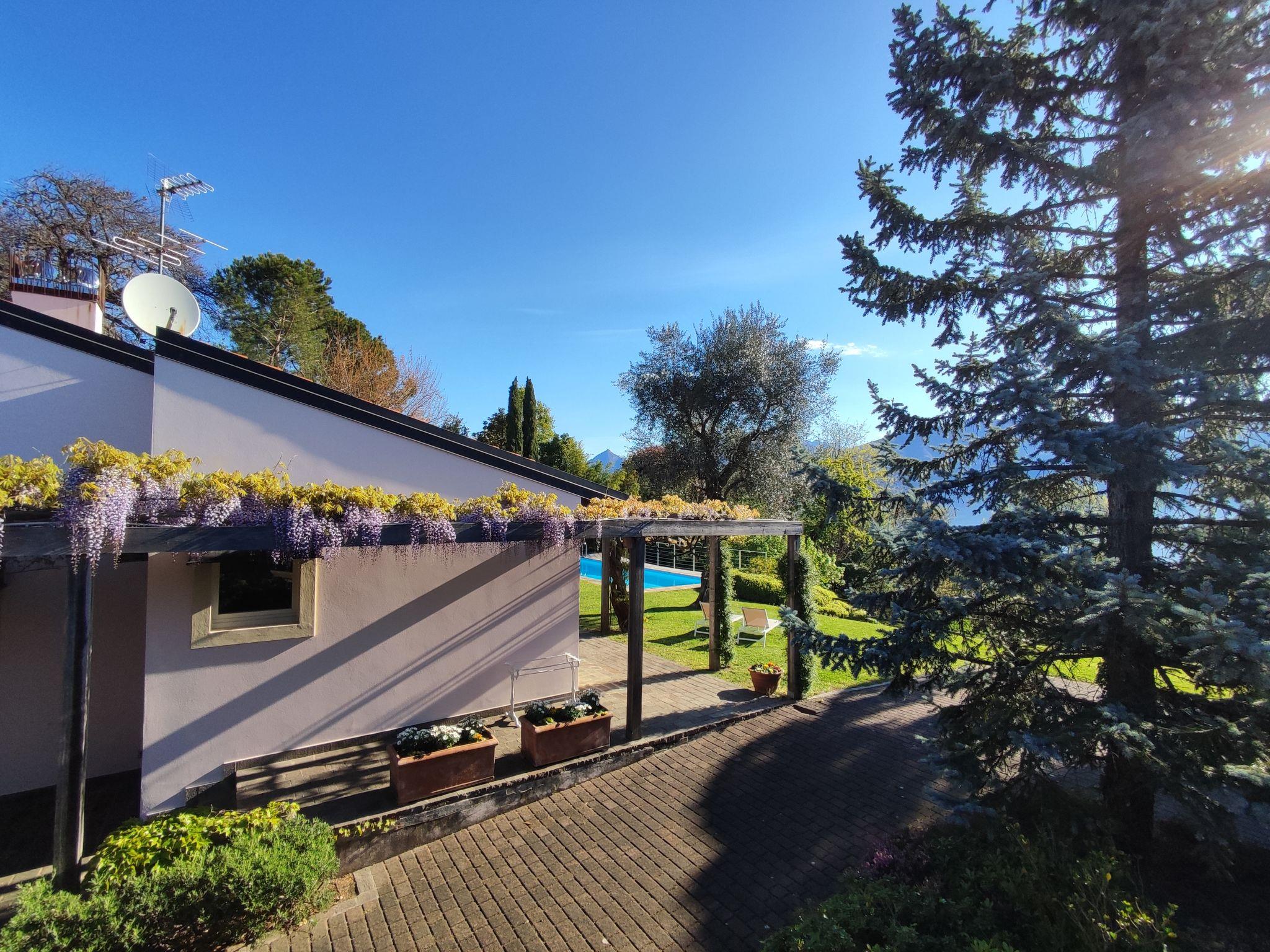 Comfortable villa "Villa Ulivo", 2 storeys, detached, surrounded by trees. Above Griante 2 km from the centre of Griante, 4 km from the centre of Menaggio, 33 km from the centre of Como, in an elevated position on a slope, residential area (villas), 1.5 km from the lake, in the countryside. Private: property (fenced) with lawn and wildlife garden, swimming pool with privacy (seasonal availability: 15.May. - 30.Sep.) with shutter cover. Pool maintenance by the owner/gardener. In the house: storage room for bicycles, heating available only from 15.Oct. - 15.Apr.. Parking (for 3 cars) on the premises, single garage. Grocery 2 km, supermarket 4 km, restaurant 1 km, bar 2 km, bus stop "C10 Como-Menaggio-Colico" 1.5 km, railway station "Como" 33 km, ferry "Cadenabbia" 2.7 km, pebble beach "Al Puunt" 1.5 km, grass beach "Parco Olivelli-Tremezzo" 2.5 km, outdoor swimming pool 4.5 km. Marina 4 km, golf course (18 hole) 7 km, minigolf 4.5 km, walking paths from the house 100 m. Nearby attractions: Villa Collina-Griante, Villa Carlotta-Tremezzo, Villa Balbianello-Lenno, Menaggio, Como, Lugano. Well-known lakes can easily be reached: Lago di Lugano. Hiking paths: Rogaro-Cappella degli Alpini, Griante-Chiesa di San Martino, Griante-Rifugio Menaggio. Please note: car recommended. The owner does not accept any youth groups.