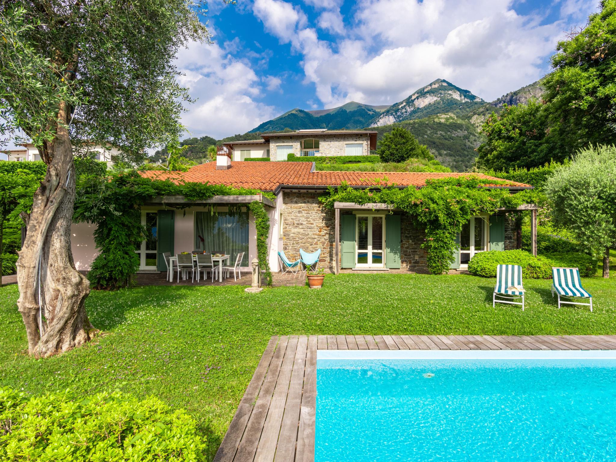 4-room villa 150 m2. Spacious, comfortable and beautiful furnishings: open large living room with open-hearth fireplace (only for decoration). Exit to the garden, to the terrace, to the swimming pool. 2 double bedrooms. Exit to the garden, to the terrace, to the swimming pool. Large, open kitchen (oven, dishwasher, Gas stove, 4 gas rings, toaster, microwave, electric coffee machine) with dining table. Bath/bidet/WC, shower/bidet/WC. Gas heating. Heating available only from 15.10. to 15.04. Upper floor: entrance hall. Open gallery with 1 double sofabed (160 cm), open-hearth fireplace. Exit to the balcony. Parquet floors, natural stone floors. Small balcony, 2 large terraces partly covered. Terrace furniture, balcony furniture, deck chairs (2). Marvellous panoramic view of the lake, the mountains and Bellagio. Facilities: Internet (WiFi, free). Please note: non-smoking house. Maximum 1 pet/ dog allowed. Instead of an enclosed bedroom, some sleeping areas are located in an open-plan area (gallery, alcove, etc.). IT013113C25QAA7DFI