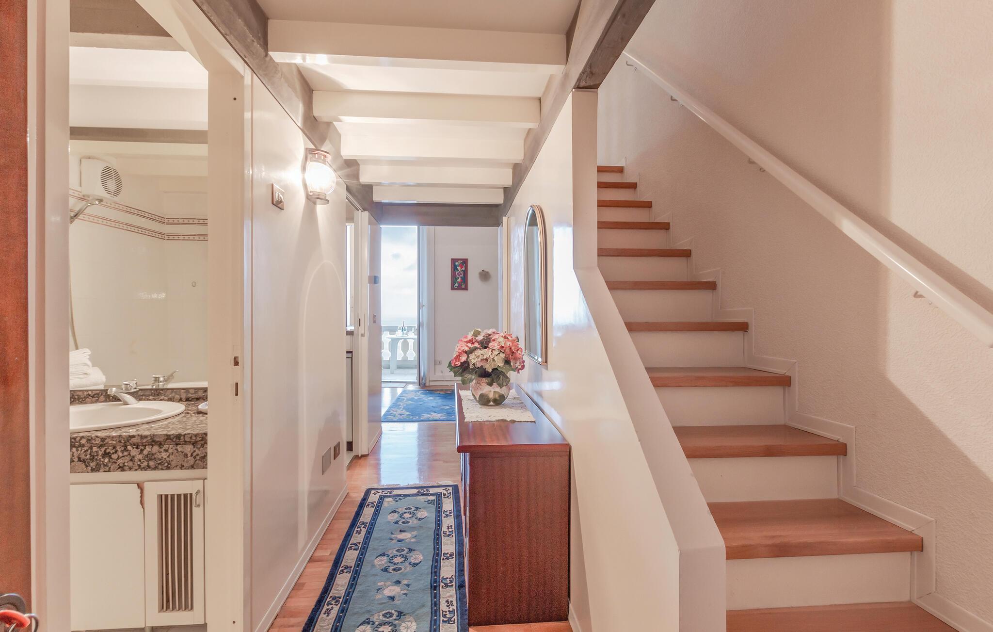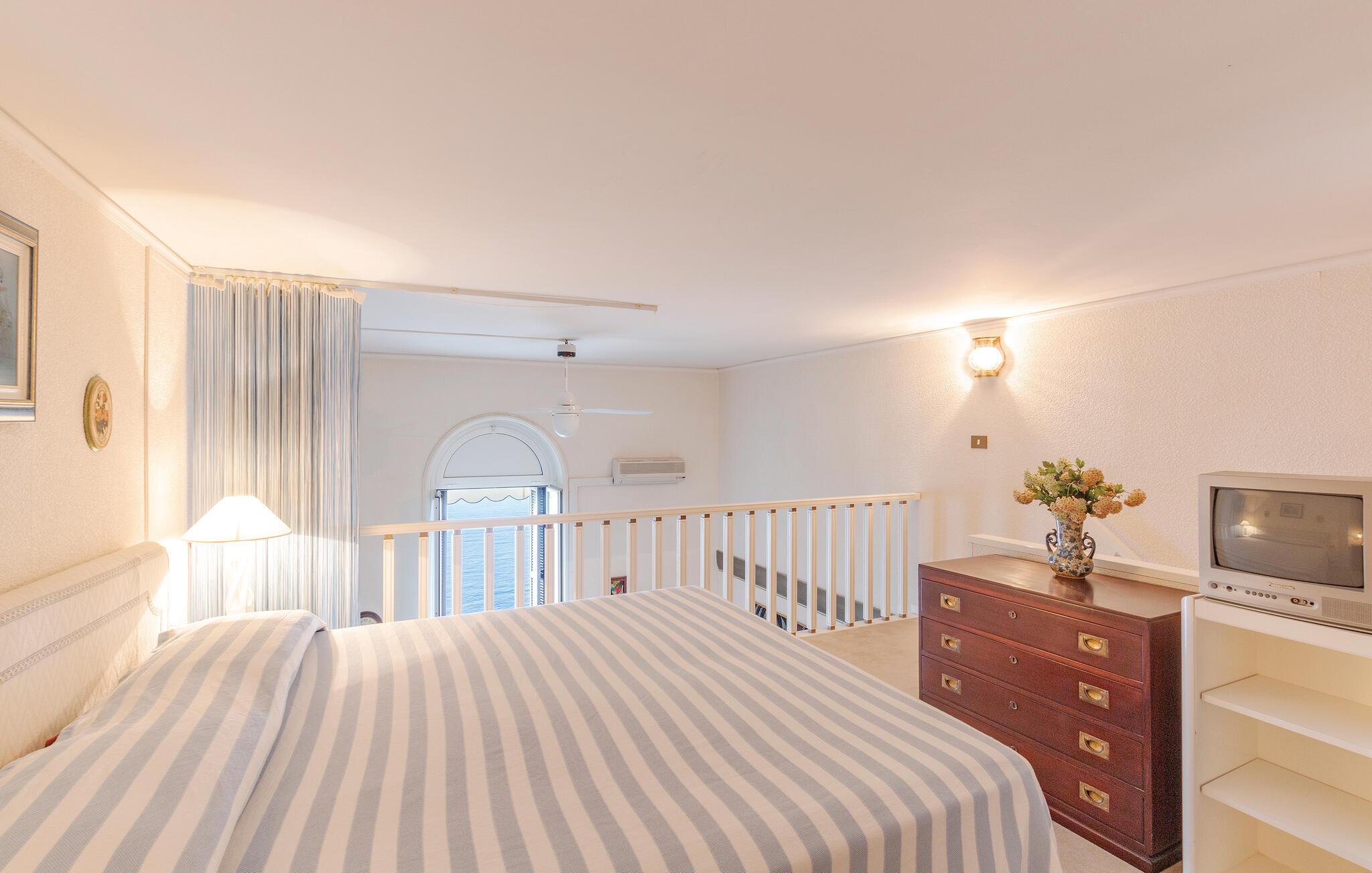 Denne sjarmerende og lyse ferieleiligheten ønsker deg velkommen med et soverom med hems og komfortable møbler. Kom inn og føl deg som hjemme sammen med familien. Nyt atmosfæren og den vakre utsikten som denne boligen tilbyr fra balkongen.