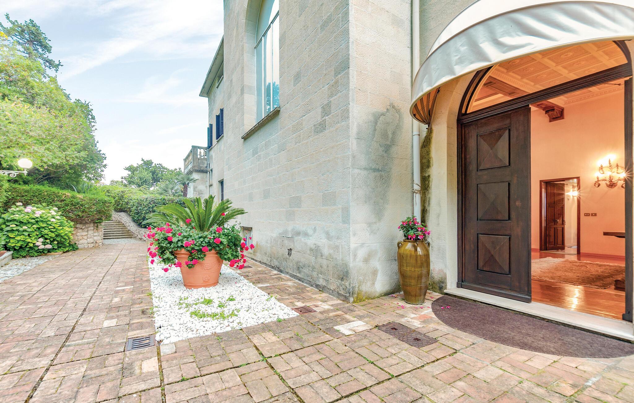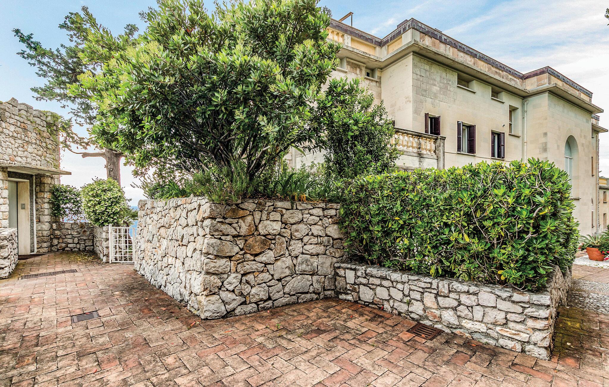 Denne ferieleiligheten i en sofistikert bolig med havutsikt og felles svømmebasseng ønsker deg velkommen med en fantastisk kulisse.