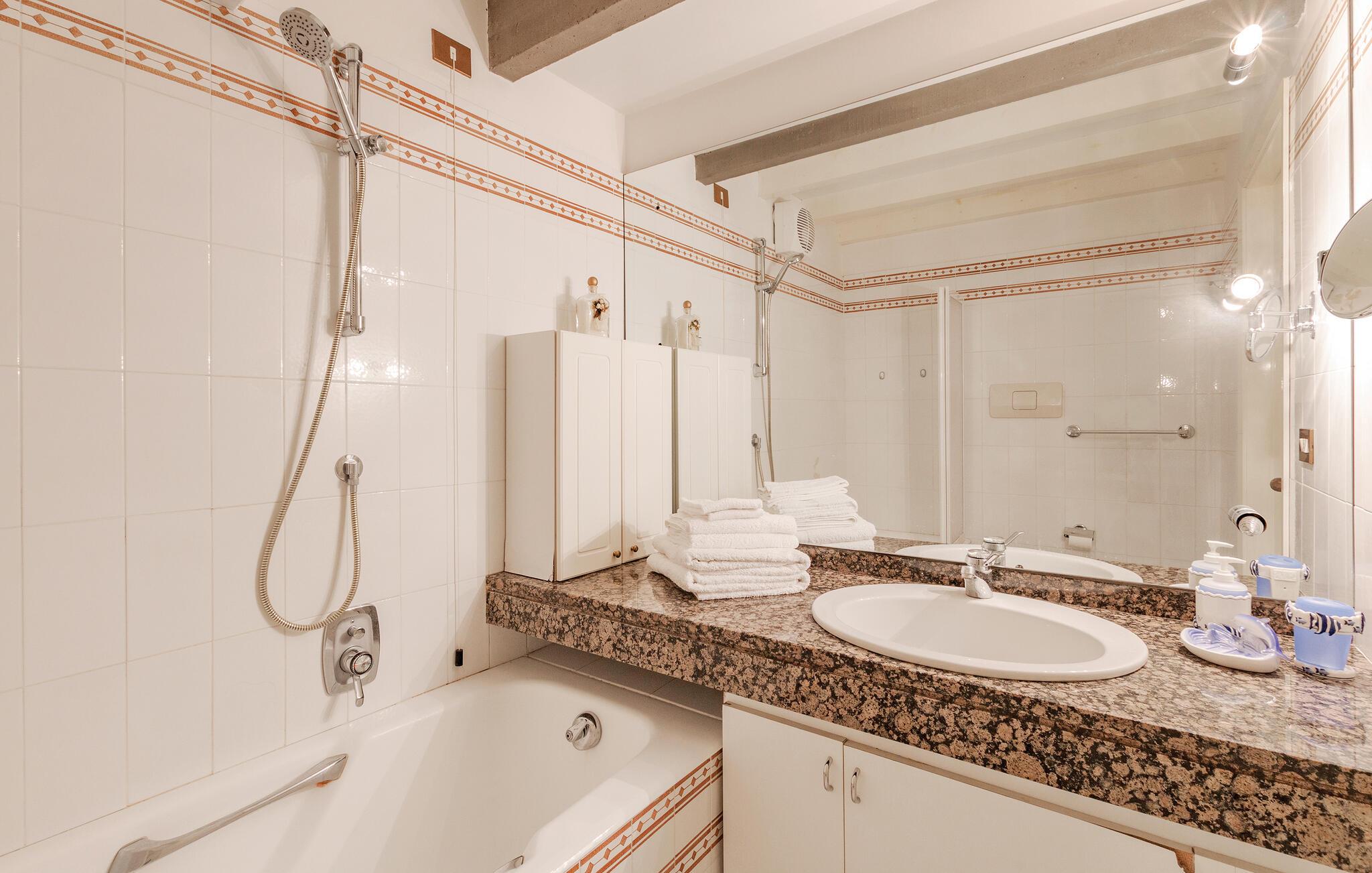 - WC med varmt og kaldt vann, Hånddusj og badekar