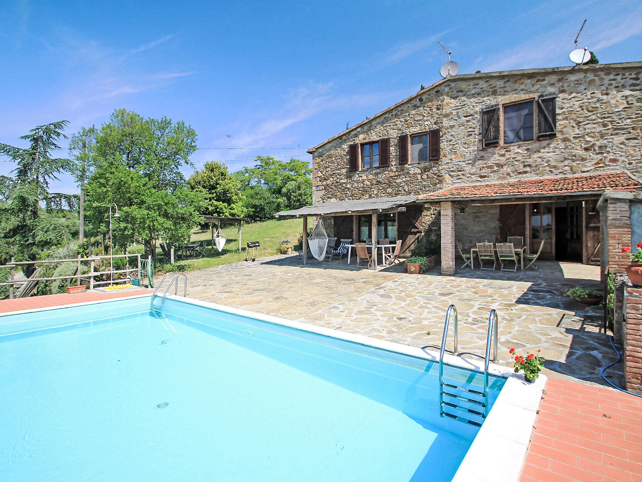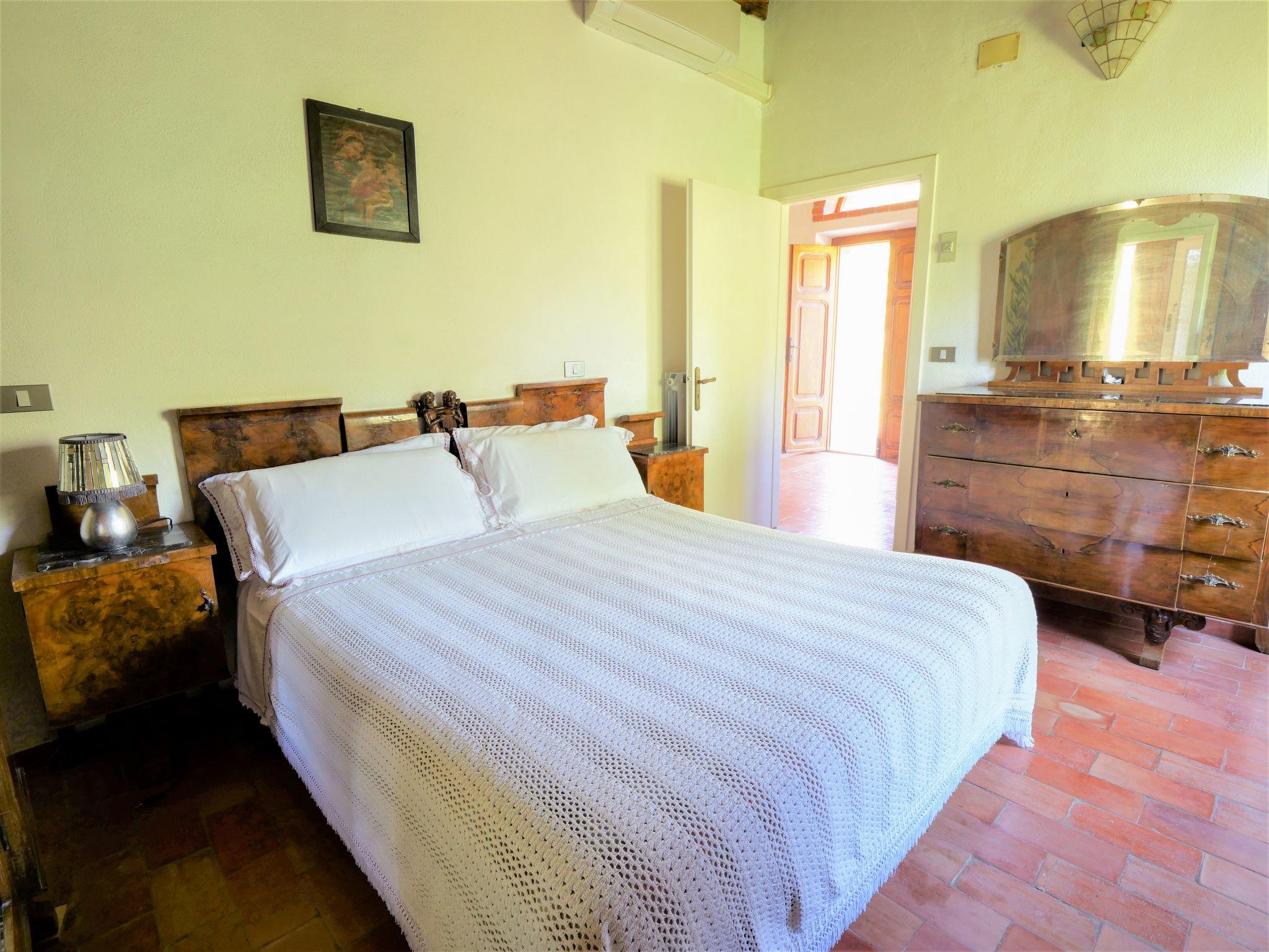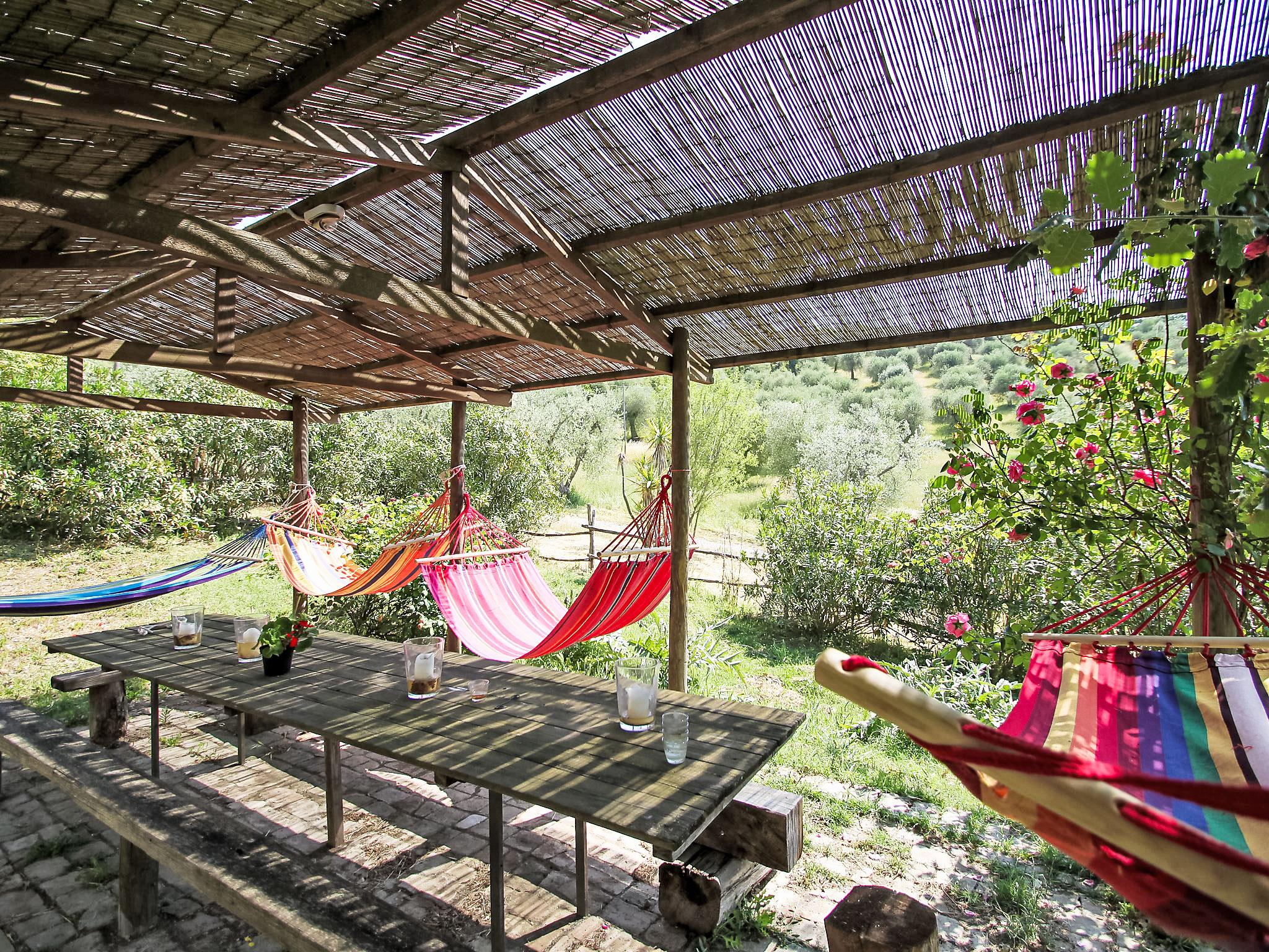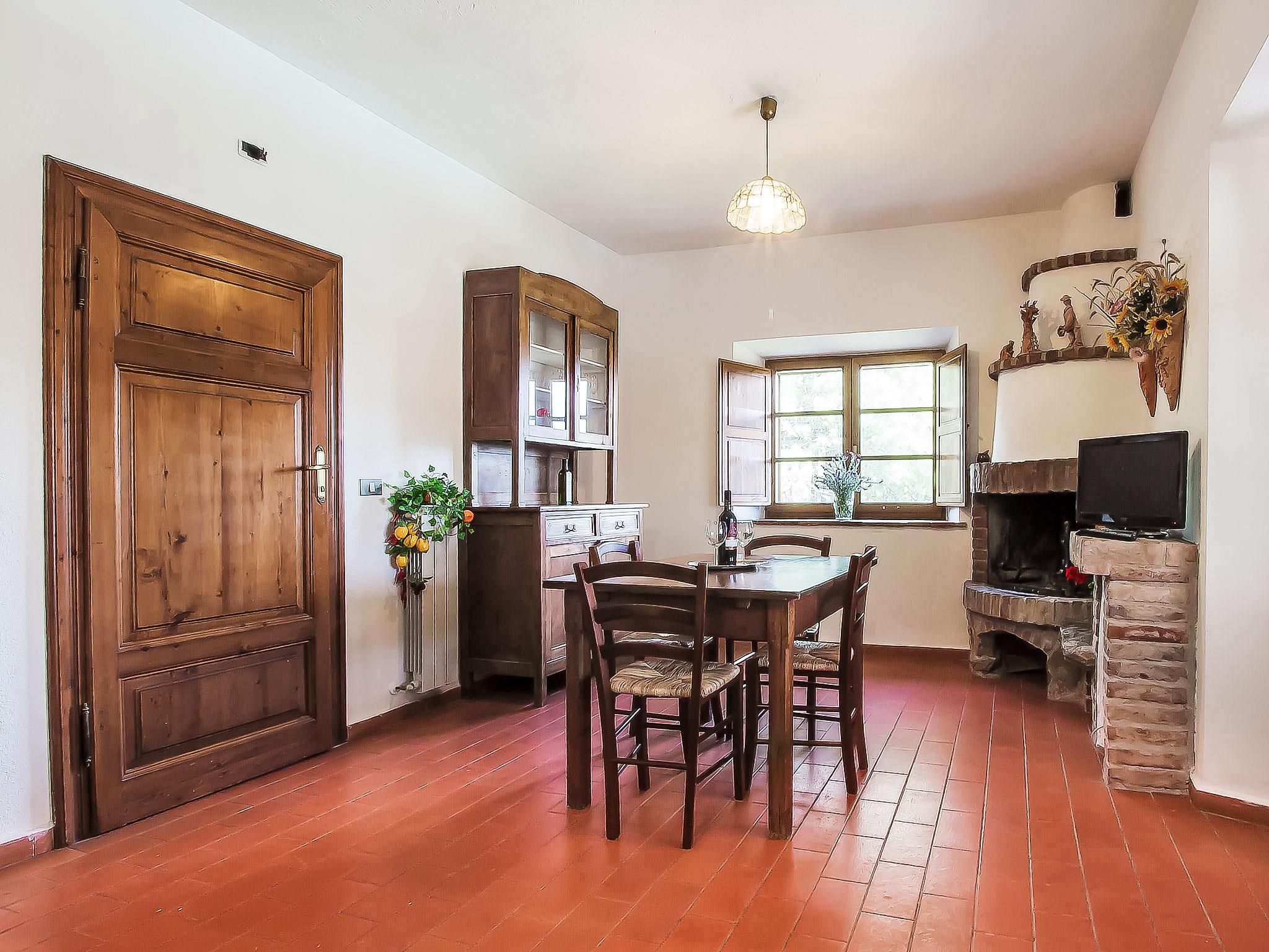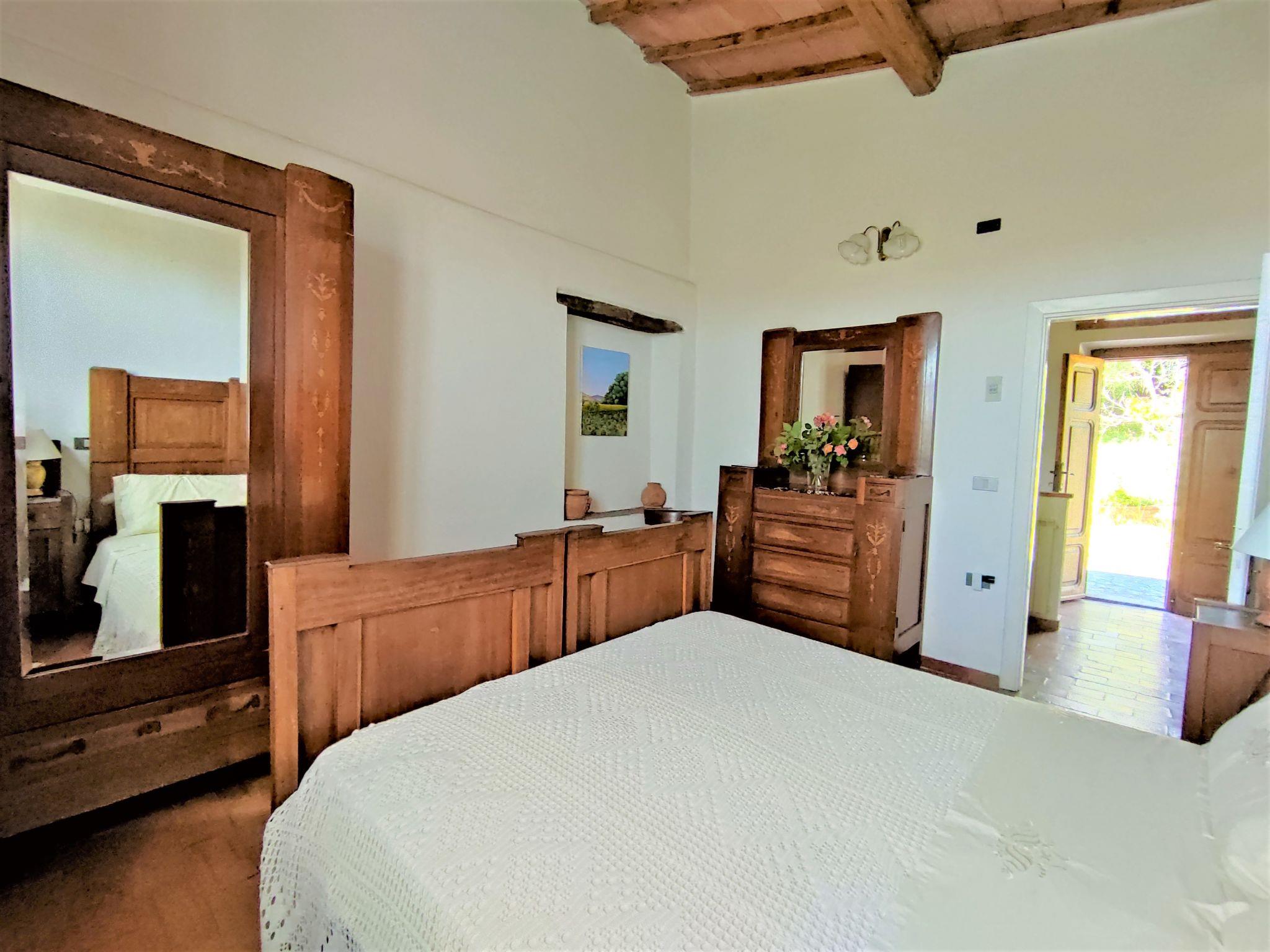 "Olivo", 5-room semi-detached house 100 m2 on 2 levels, on the ground floor. Comfortable and tasteful furnishings: dining room with open-hearth fireplace and satellite TV (flat screen), air conditioning. Exit to the loggia, to the swimming pool. 1 room with panoramic window with 2 beds and air conditioning. Small living room. Exit to the garden. Kitchenette (4 hot plates, oven, dishwasher, microwave, freezer). Shower/WC. Upper floor: 2 double bedrooms, each room with air conditioning. Shower/WC. Heating (extra). Large terrace, porch. Terrace furniture, barbecue. Panoramic view of the countryside. Facilities: washing machine. Internet (WiFi, free). Maximum 1 pet/ dog allowed. External private area with access from the ground floor and from the first floor. Please note: the 6th bed is for children only. IT053002B5I73F3W3J