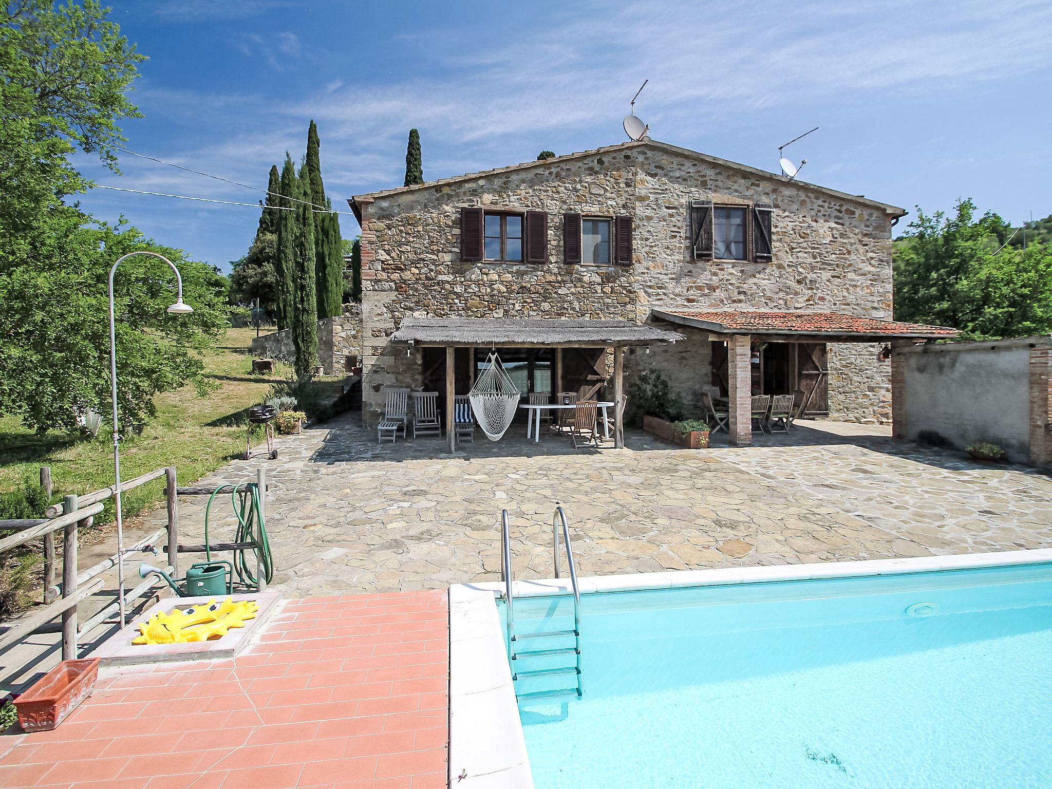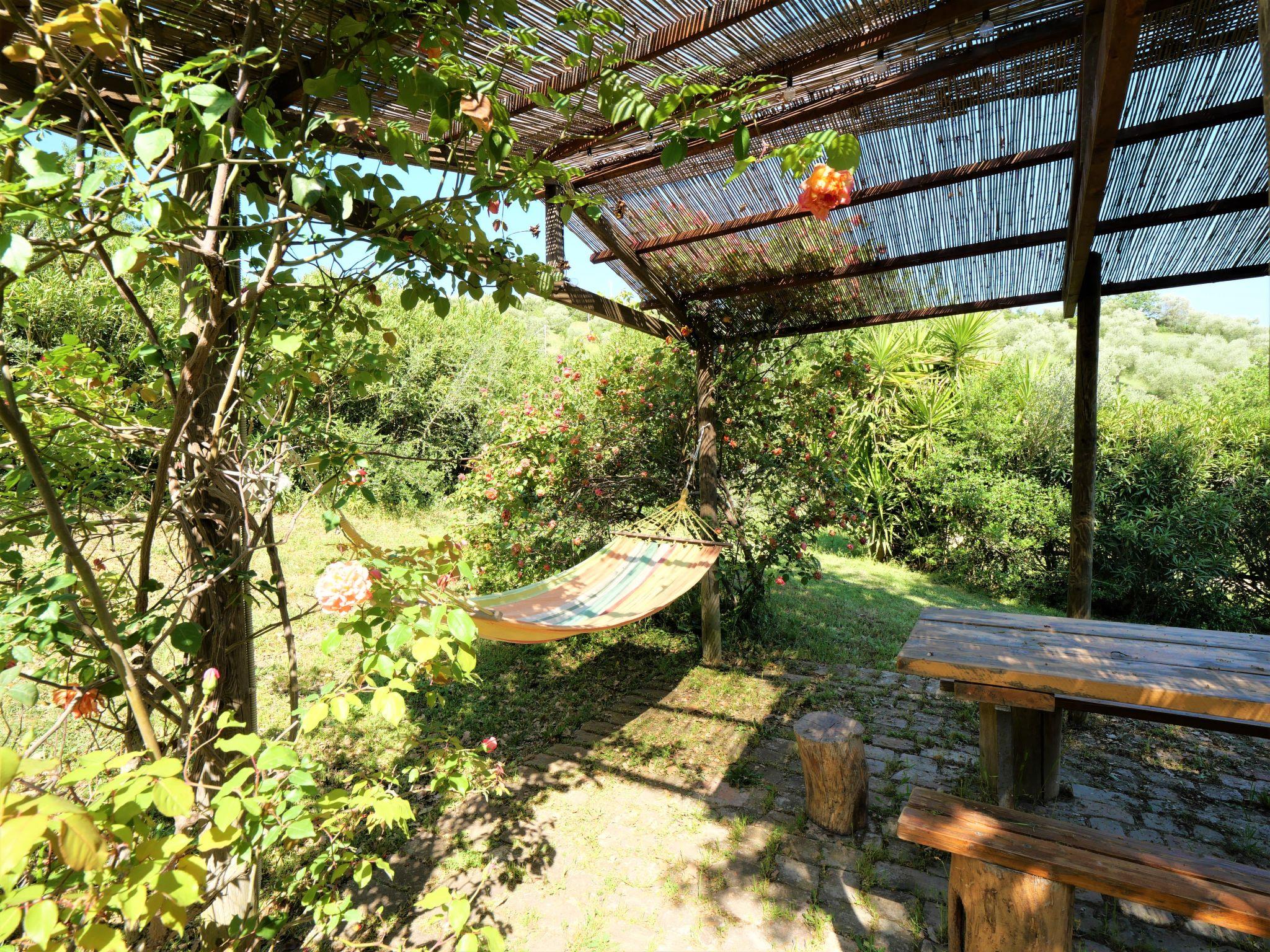 Siuated in the heart of the Tuscan maremma, surrounded by olive trees and vineyards, 35 km from Castiglion della Pescaia and 70 km from the Monte Amiata. The farm has a semidetached house which has been renovated keeping the original features and country style. 2 lovely private terraces and gazebos with hammocks are ideal for people looking for a relaxing holiday. Oven for pizza and bread. The swimming pool is few meters away, in front of the house, ideal for checking on the children. There is also a pretty private chapel still in use. The sorroundings are rich in archeological sites and lovely landscapes. Roselle 15 km, Saturnia Spa centre 60 km, Florence 130 km, Siena 60 km, Roma 180 km. Cosy, rustic country house, 2 storeys, renovated, surrounded by vineyards. 12 km from the centre of Grosseto, 12 km from the centre of Campagnatico, 18 km from the centre of Roccastrada, in a quiet, sunny position on top of a hill, 25 km from the sea, in the countryside. For shared use: property 5 ha, garden, orchard, swimming pool (4 x 8 m, depth 140 cm, seasonal availability: 30.Apr. - 30.Oct.). Barbecue. Private: pergola, terrace, garden furniture. In the house: internet access, sun terrace, central heating system, air conditioning, heating available only from 01.Nov. - 15.Apr.. Motor access (1 km via unmade road). Roofed, parking (for 4 cars) at the house. E-charging station. Shop 6 km, restaurant 3 km, sandy beach 25 km. Golf course (18 hole) 45 km, tennis 12 km, riding stable 6 km.