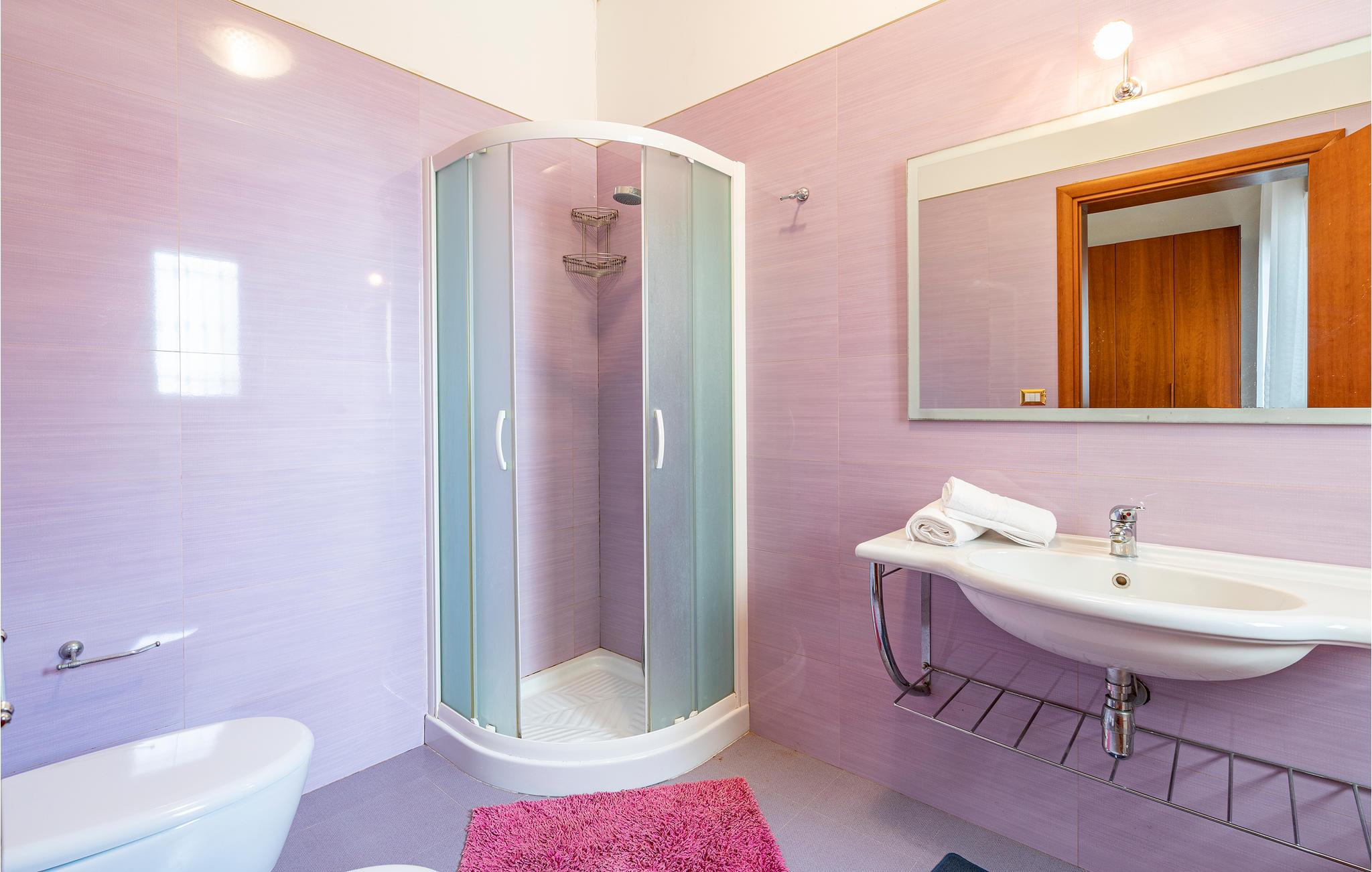 Det moderne huset har plass til opptil 6 personer. De 3 soverommene har komfortable dobbeltsenger og 3 bad, hvorav ett har tilgang fra utsiden. Feriehuset er egnet for en ferie i alle årstider, på kjølige kvelder sprer peisen koselig varme og en koselig atmosfære.