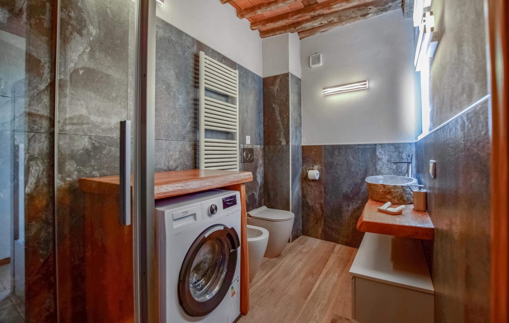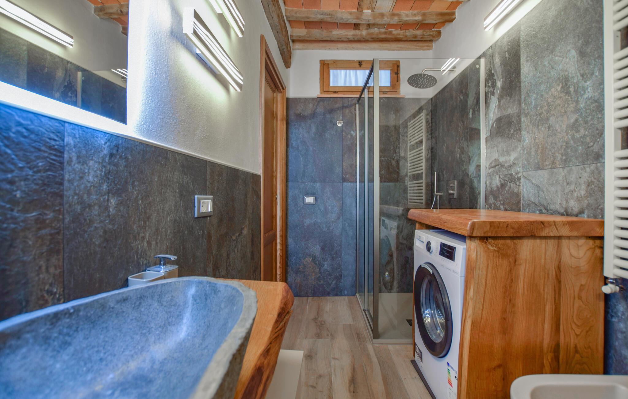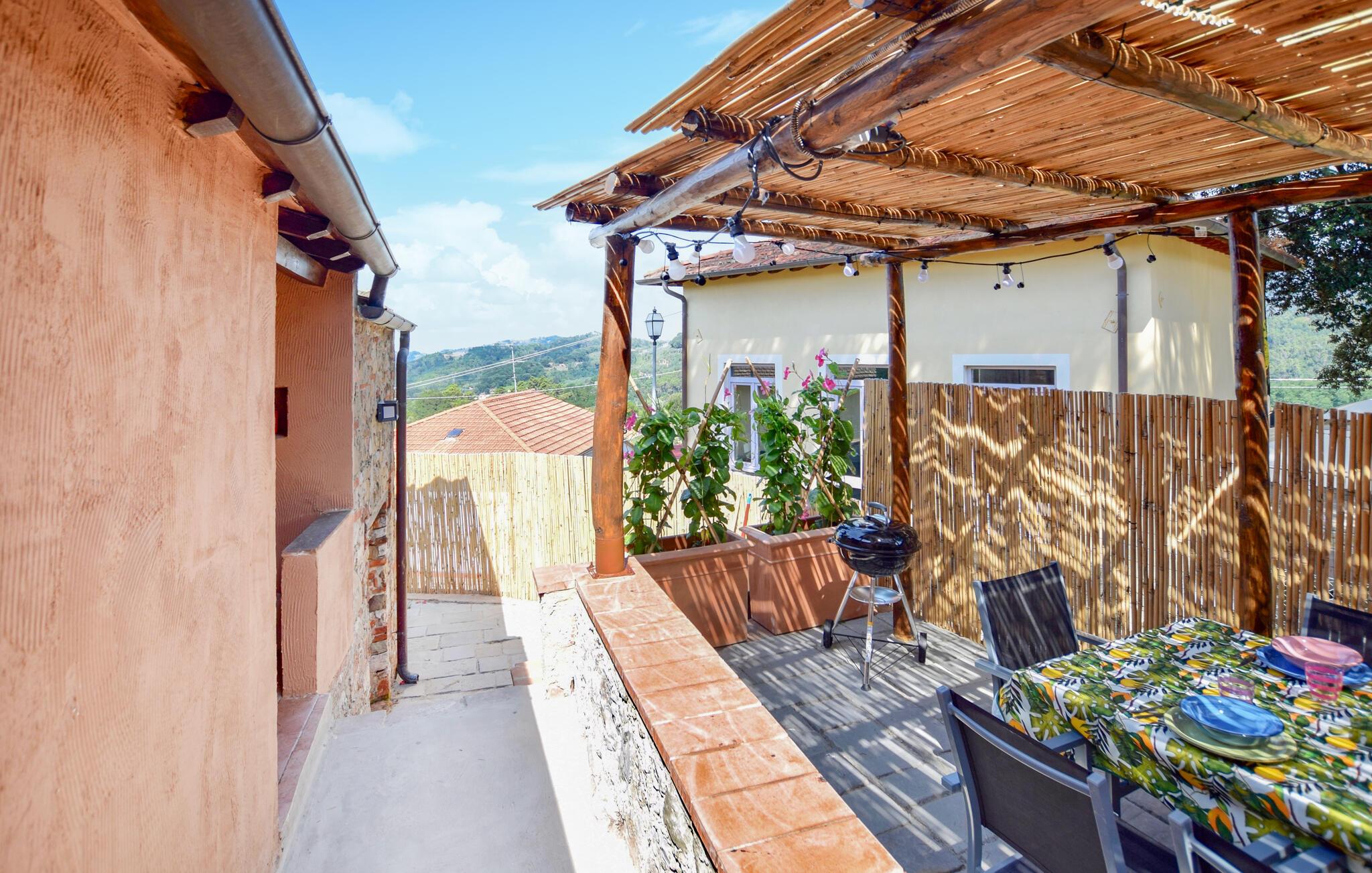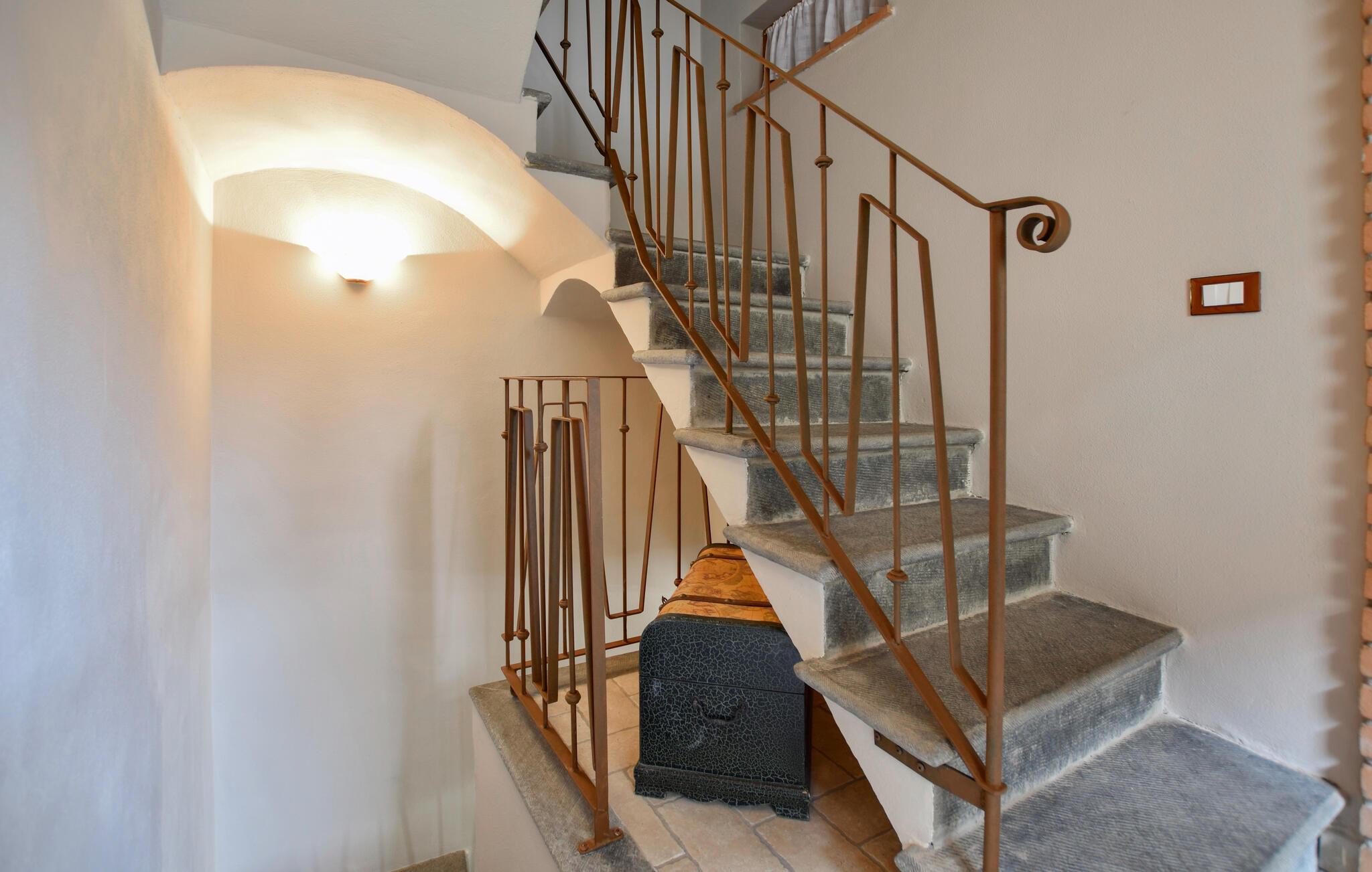 Det koselige feriehuset er den ideelle rammen for en fredelig ferie i Italia. Det kjærlig møblerte uteområdet skaper en varm og innbydende atmosfære der du umiddelbart vil føle deg hjemme. Start dagen med en solid frokost på den overbygde terrassen mens du nyter utsikten over det fjellrike landskapet. Etter frokosten kan du trekke deg tilbake til det praktisk innredede inneområdet eller lese en god bok på solsengene utenfor.